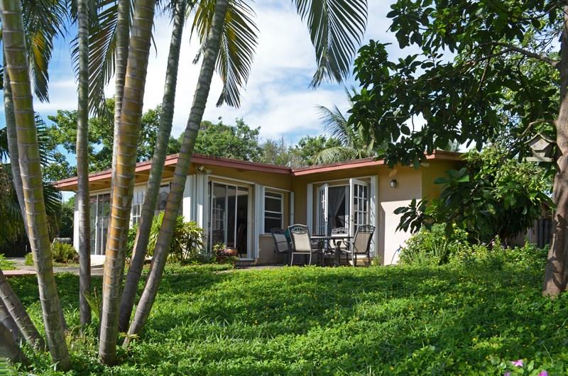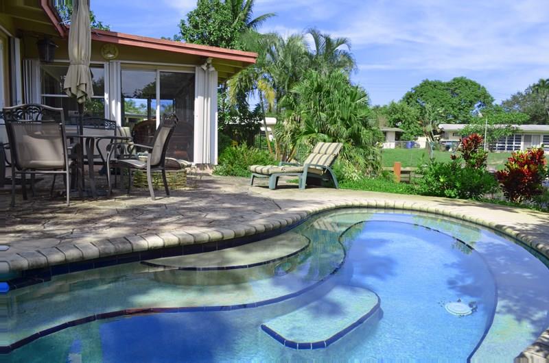 Unique waterfront home. One and a half lot with 90-foot dock, deep water, ocean access, no fixed bridges. Beautiful xeriscaped yard. Sprinkler system on well water. Room for a garage. Kitchen with granite tops. Remodeled baths. Ample storage space. Vaulted ceilings, travertine marble floors. Accordion hurricane shutters. Bedrooms have French doors with retractable screens overlooking canal. Dead end street makes for a quiet neighborhood. Centrally located near major highways, airport and downtown.
