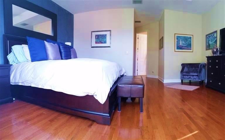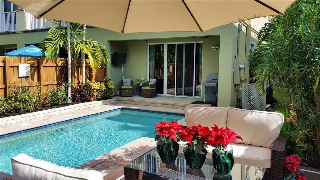 Pristine, Fee-Simple Town home w/ new kitchen equipped w/ Samsung Appliances & LED lighting. Desirable corner unit w/ illuminating southern exposure. Tile Floors downstairs & wood upstairs. Private Swimming Pool set in a beautiful backyard w/ landscape planters, Trex composite decking & covered porch with ceiling fans & a flat screen TV. Spacious master bedroom w/ balcony. Master bathroom w/ jetted soaking tub, separate shower & double sinks. Walk-In Closet plus a shoe closet all custom designed.