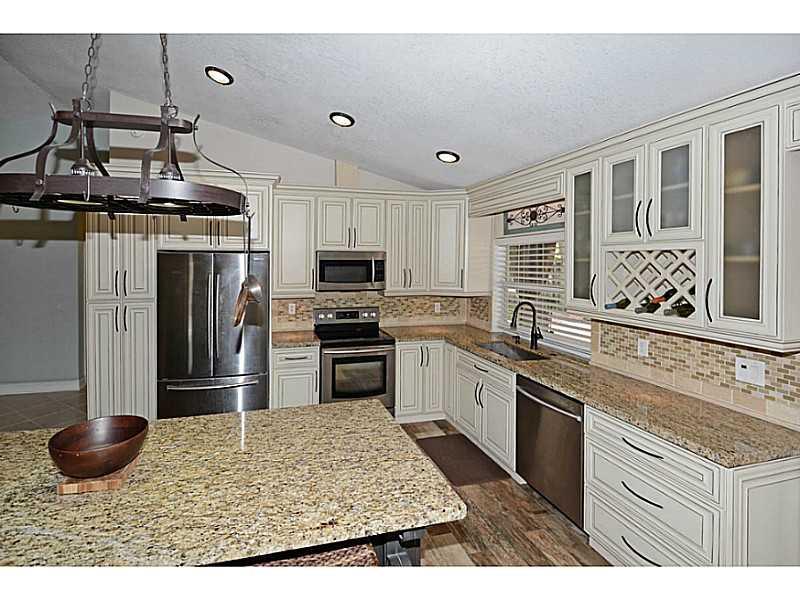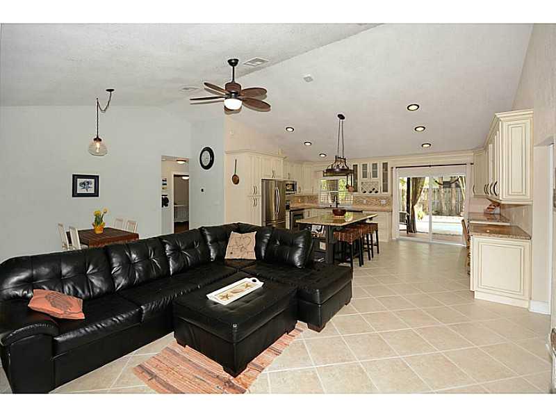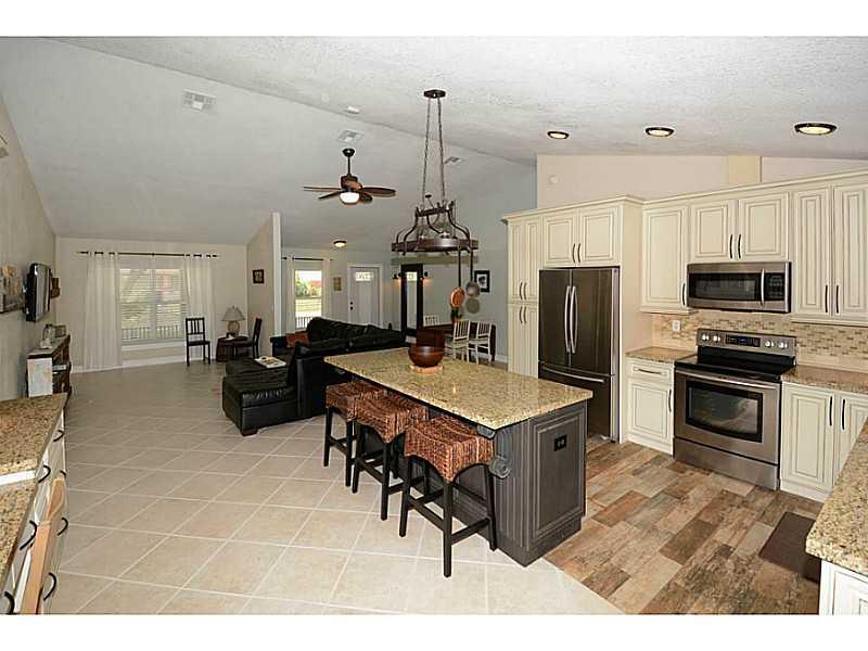 Updated to perfection! A kitchen out of this world w/beautiful, custom cabinets! The latest in interior design in a super neighborhood. Open floor plan. Granite counters. Stainless appliances. Wood-grain porcelain tile floors. Impact glass. Whole house su rge protection. Private security system. Nest thermostat & CO/smoke alarm. Cable ready. Tropical pool w/colored pool lights & outdoor speakers. Hang your hammock under the mango tree! Fenced, corner lot. No HOA. Lots of special features. A wonderful home!