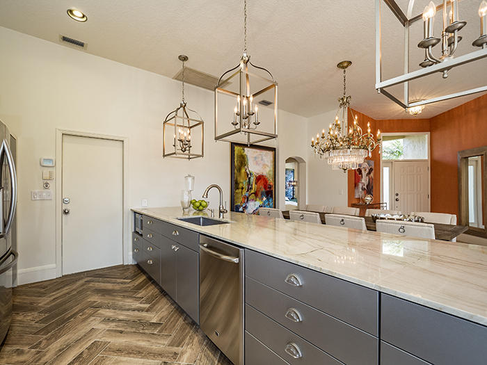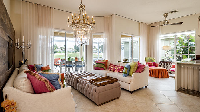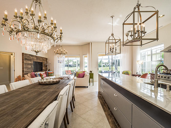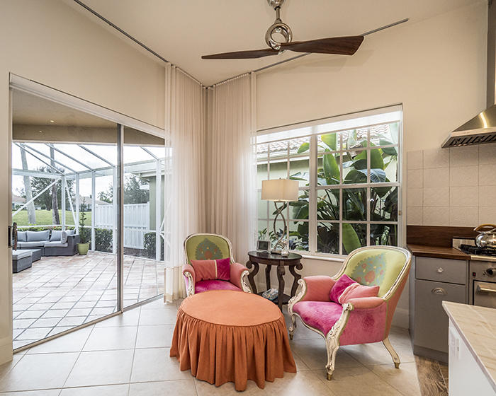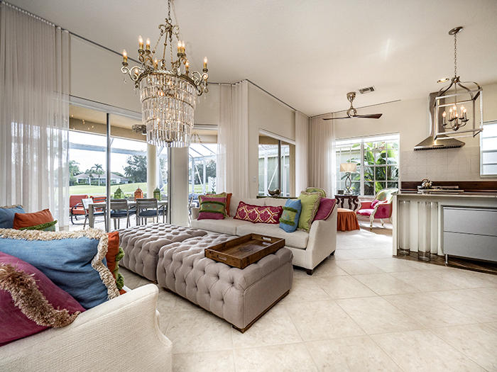 Turnkey masterpiece w/everything included: high-end artwork, linens. Imagine purchasing a home in a wonderful location in Ibis with serene golf course views with a prime South East exposure, located within steps from the fine amenities of Ibis and remodeling the entire home by a high-end designer. Walls have been removed, making this delightful and modern home open and a true great room. Incredible modern kitchen w/ porcelain wood tiled floors in Herringbone pattern, Brazilian marble tops, stainless appliances and custom cabinets w/ stunning glass knobs. Every door handle, faucet, piece of plumbing has been replaced. Master Bathroom and Guest Bath look like they're from the pages of a design magazine: Frameless showers, soaking tub, high-end finishes. Designer window treatments from France
