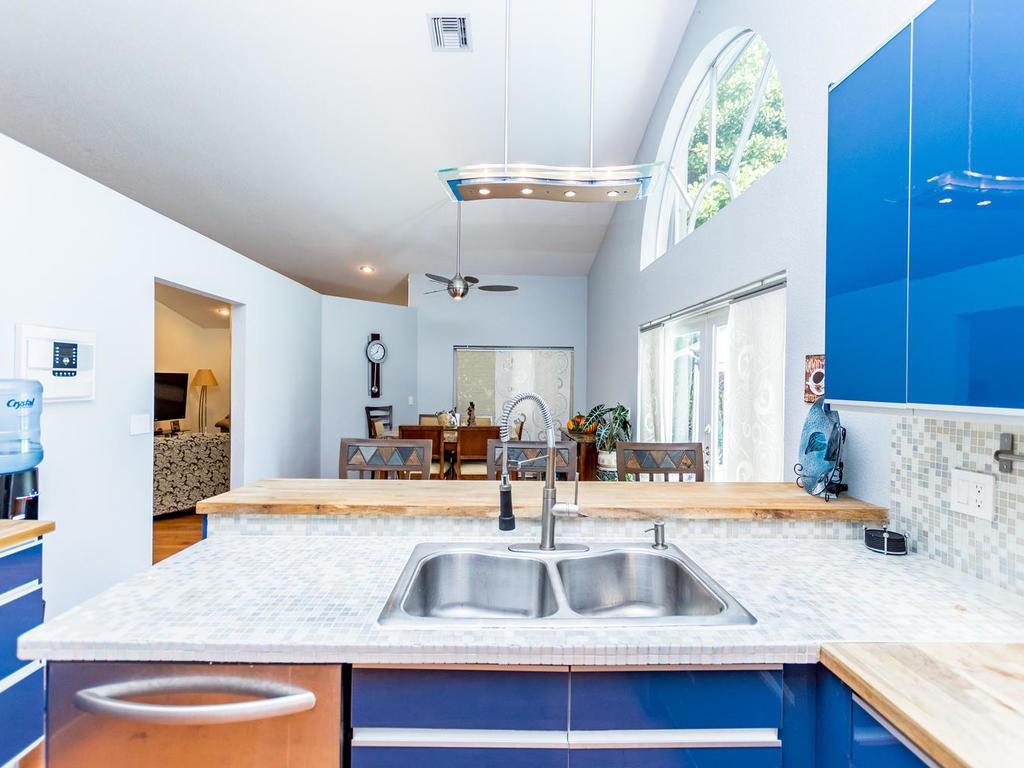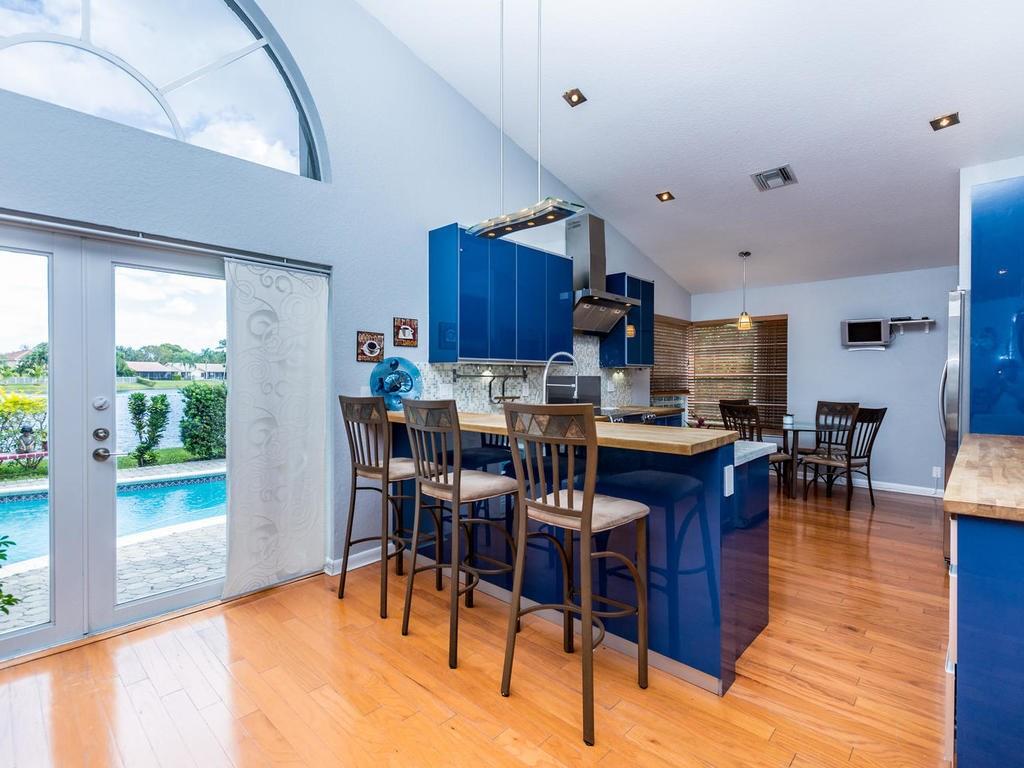 Beautiful 3/2 in Embassy Lakes Ventana ..French doors leading out to the pool and wide view of the lake! Solid oak wood floors throughout...Remodeled kitchen features European/Modern 42" laminate cabinets with pull out shelves and stainless steel appliances ..Updated 2nd bathroom. Master bath features dual sinks and a roman tub with jets.. High hats, custom lighting , Paver patio, fenced yard, accordian shutters, Cooper City "A" schools