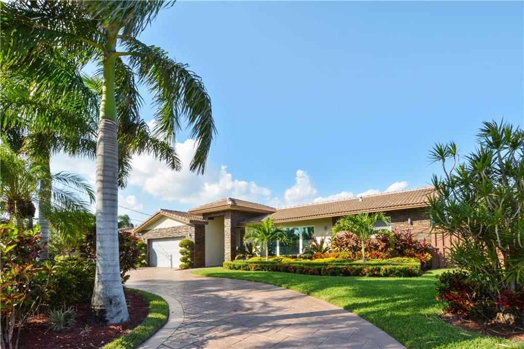 Modern Masterpiece--Beautifully renovated (New CO 2013) modern open floorplan with 80 ft on the water, featuring resort style pool with cabana in the esteemed section of Lake Estates, just adjacent to The Landings. The 4BR/3BA/2CG split floorplan home offers exquisite appointments including an open kitchen, granite, Viking appliances, modern design fireplace, impact glass, boat dock, minutes to the Intracoastal. Ready to move in quick close possible.