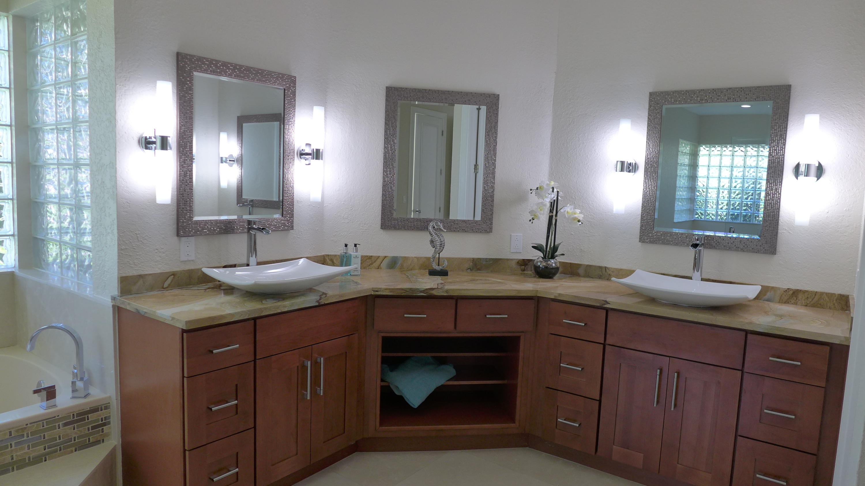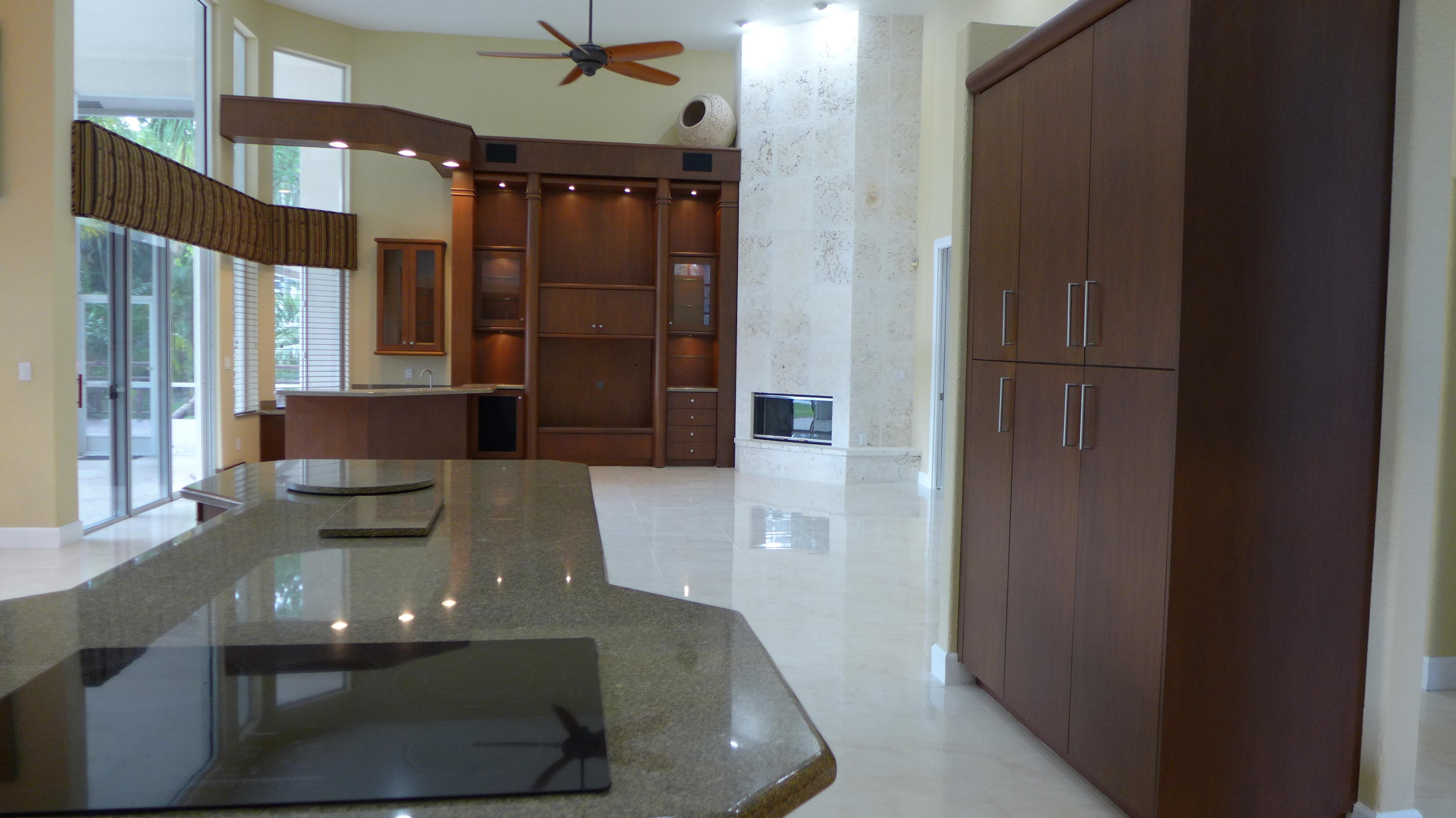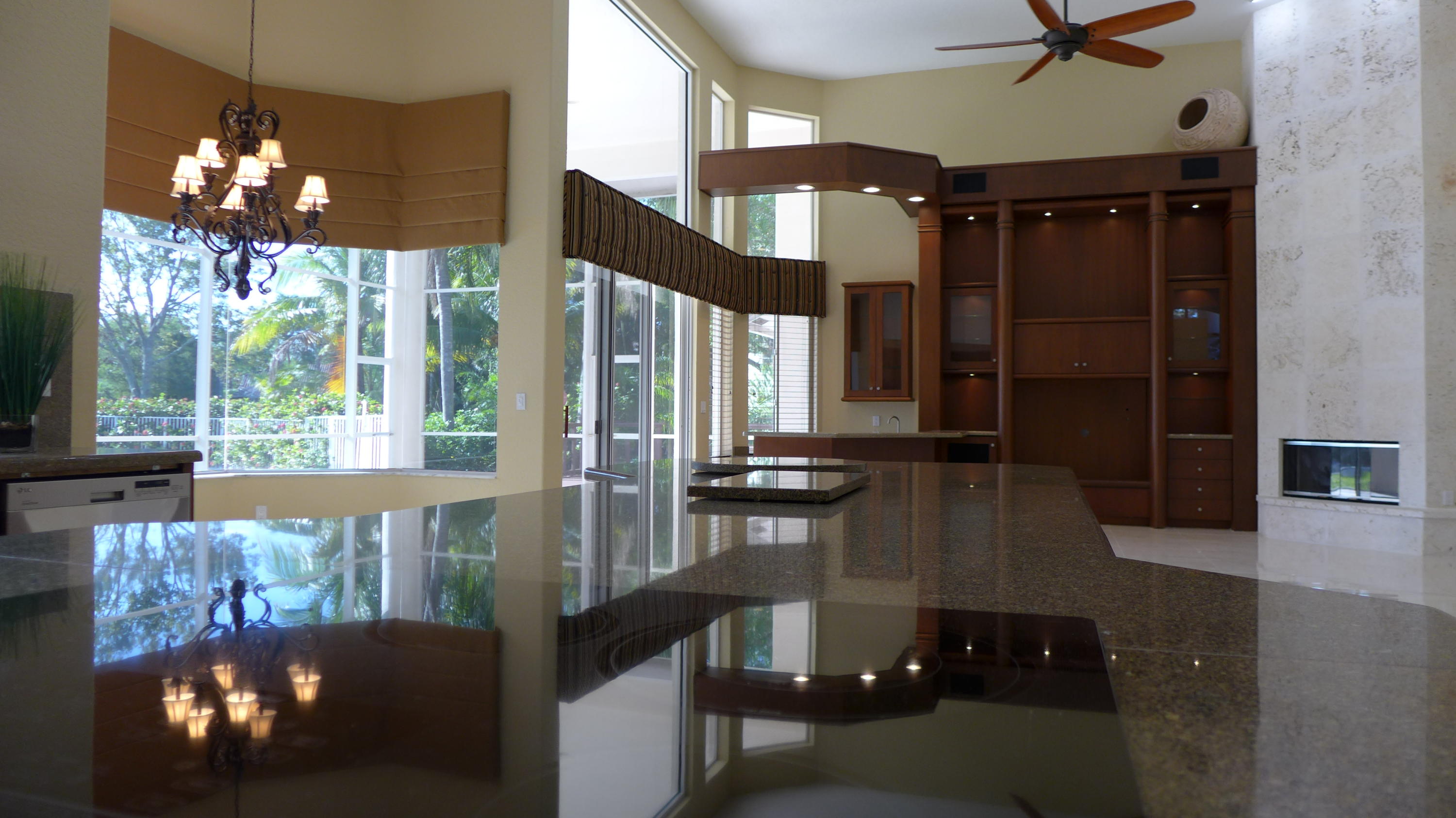 Remodeled in 2017. NEW tiled floors, NEW Bathrooms. Master Bathroom has TURKISH Marble tiles, George Kovacs Scone lighting, Gorgeous Palomino countertop granite, Custom Made vanities, shower fixture combo Made in Great Britain, quality Sir NSF Certified and Ada approved Vessel Faucets. NEW Interior Paint, NEW Baseboards, NEW Luxury Carpet in one of the bedrooms. Stunning Lakefront Family Home w/6 Bed/4.5 baths/4 car garages, library, rec room/play room, loft & hurricane room. Newer washer and dryer. Heated pool& spa with 2 years old heater. Huge screened patio with motorized remotely controlled shades. Beautiful fenced pool overlooking waterfront. Wooden deck recently painted. Very large lot with some orange trees. Emergency generator with 500 gal LPG tank. Cul-de-sac street location.