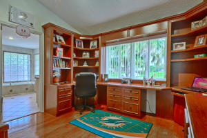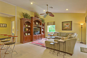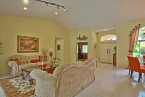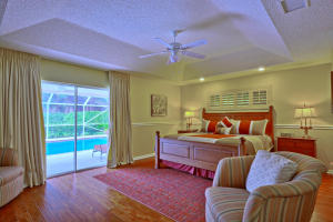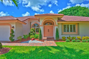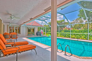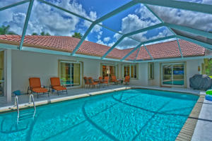 Fabulous 1 story 4 BR home in Boca Greens. This immaculate home sits on an oversized corner lot with a large screened patio and heated pool. Light and bright with vaulted ceilings, open-split bedroom floor plan and granite kitchen with 42'' wood cabinets. Tile and wood floors thruout, no carpet! Master has a huge walk-in closet (size of a small bedroom) with closet system and separate shoe closet. Newer garage door, hot water heater, pool heater, A/C and exterior paint. Owner will provide 3 year prepaid electrical, appliance, plumbing and ROOF warranty. Furniture is negotiable and owners will include generator. Boca Greens is on the grounds of a golf course with no mandatory membership. 24 hour man gated quite single family home community Very low HOA fee includes cable and internet.