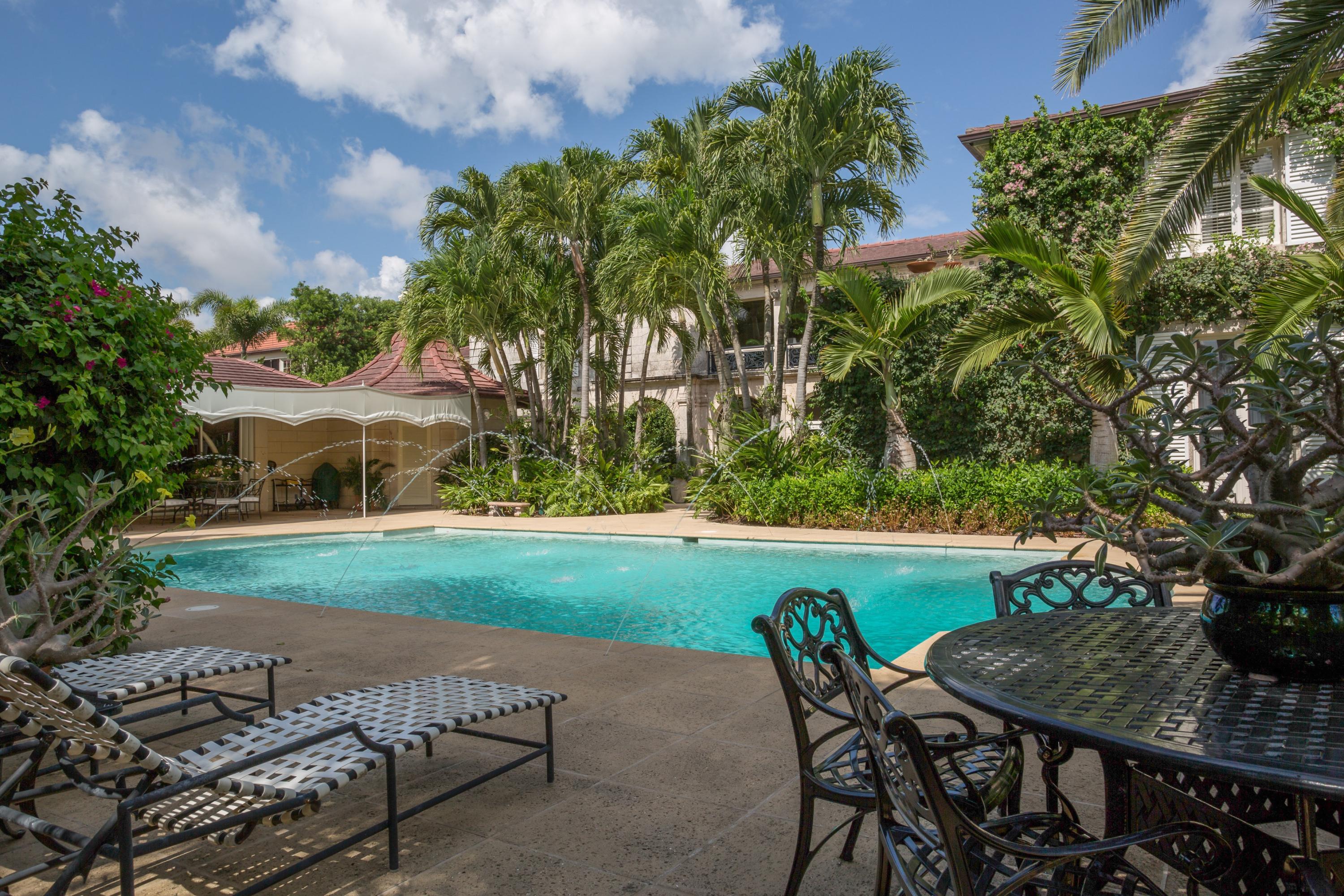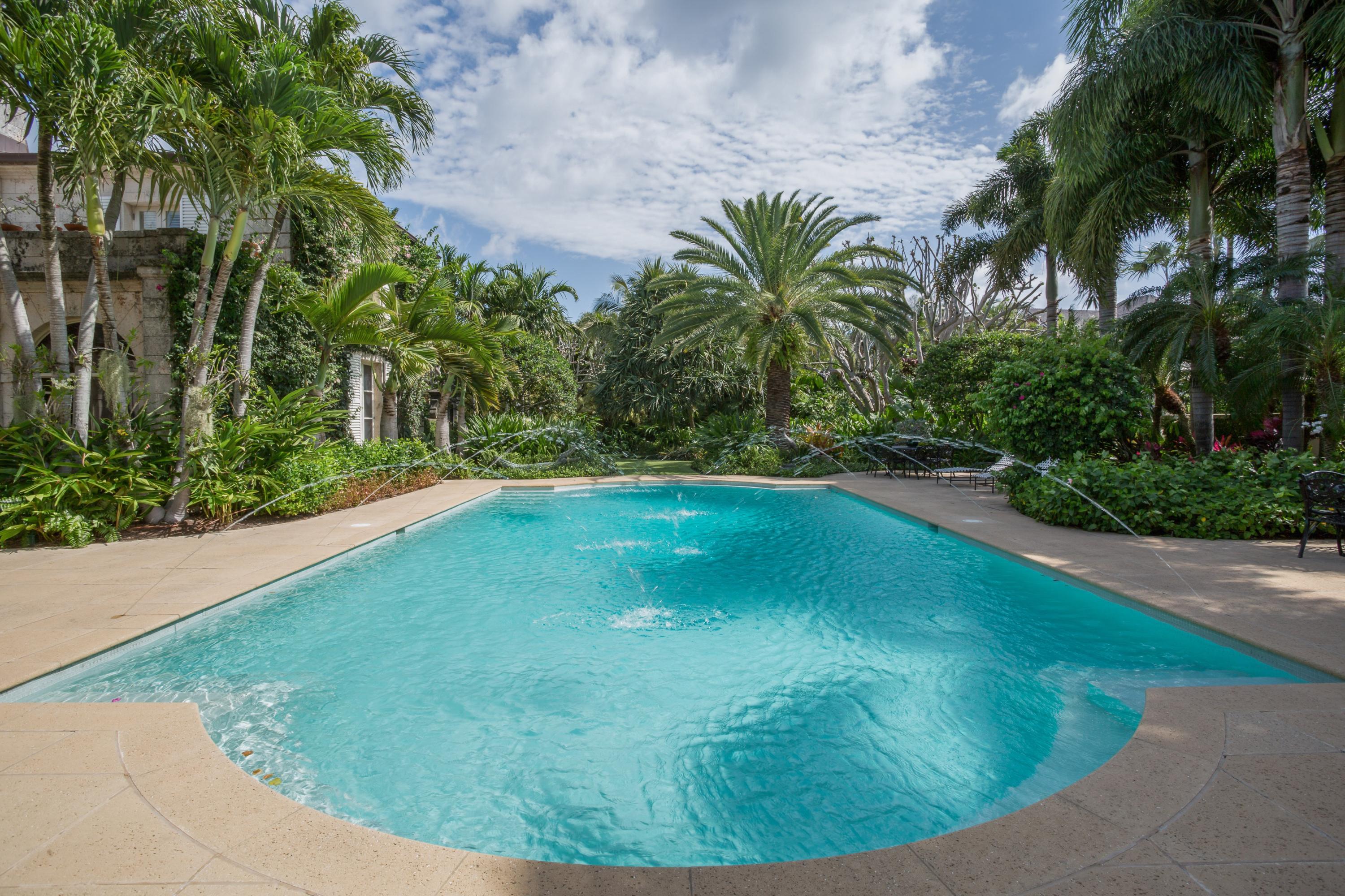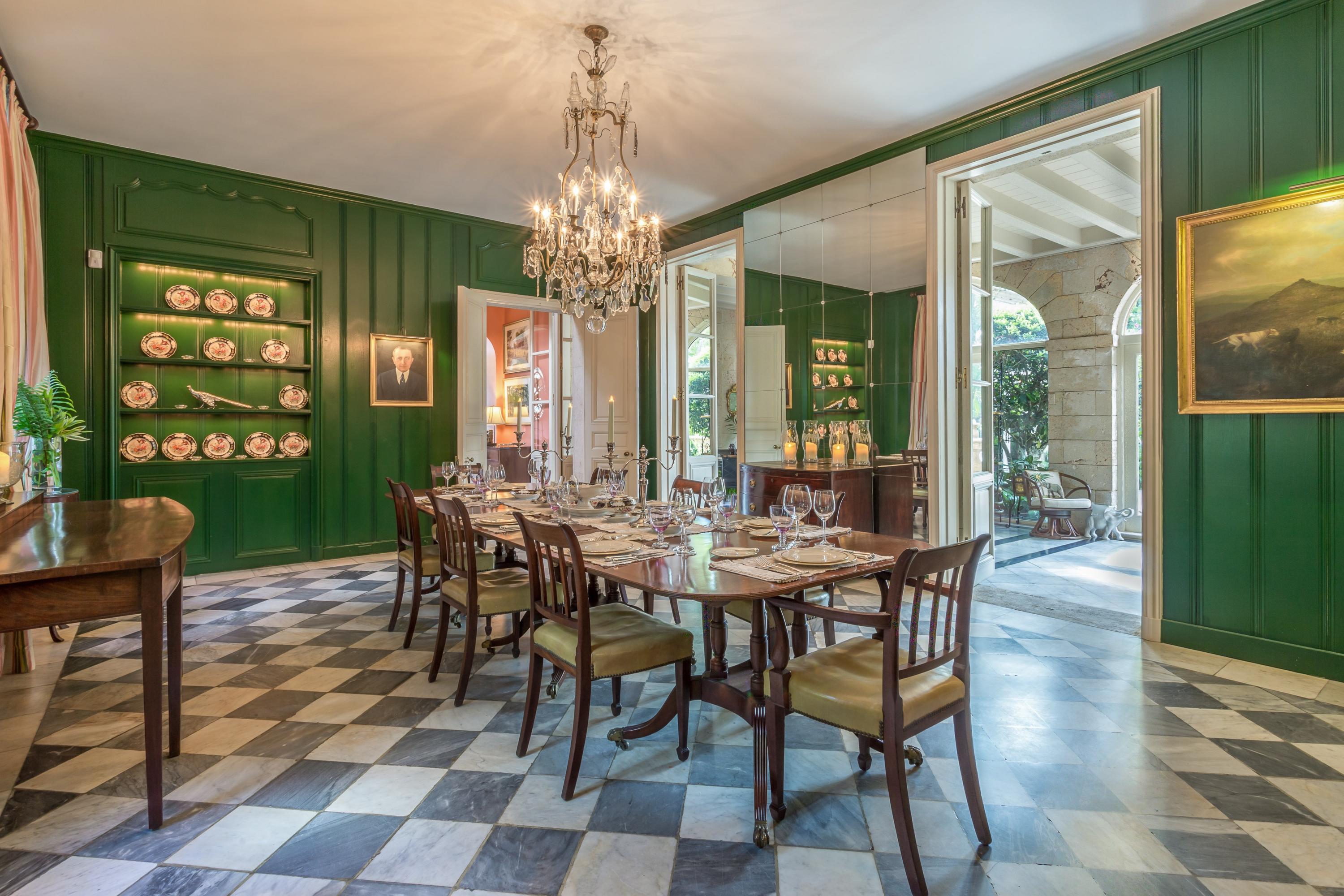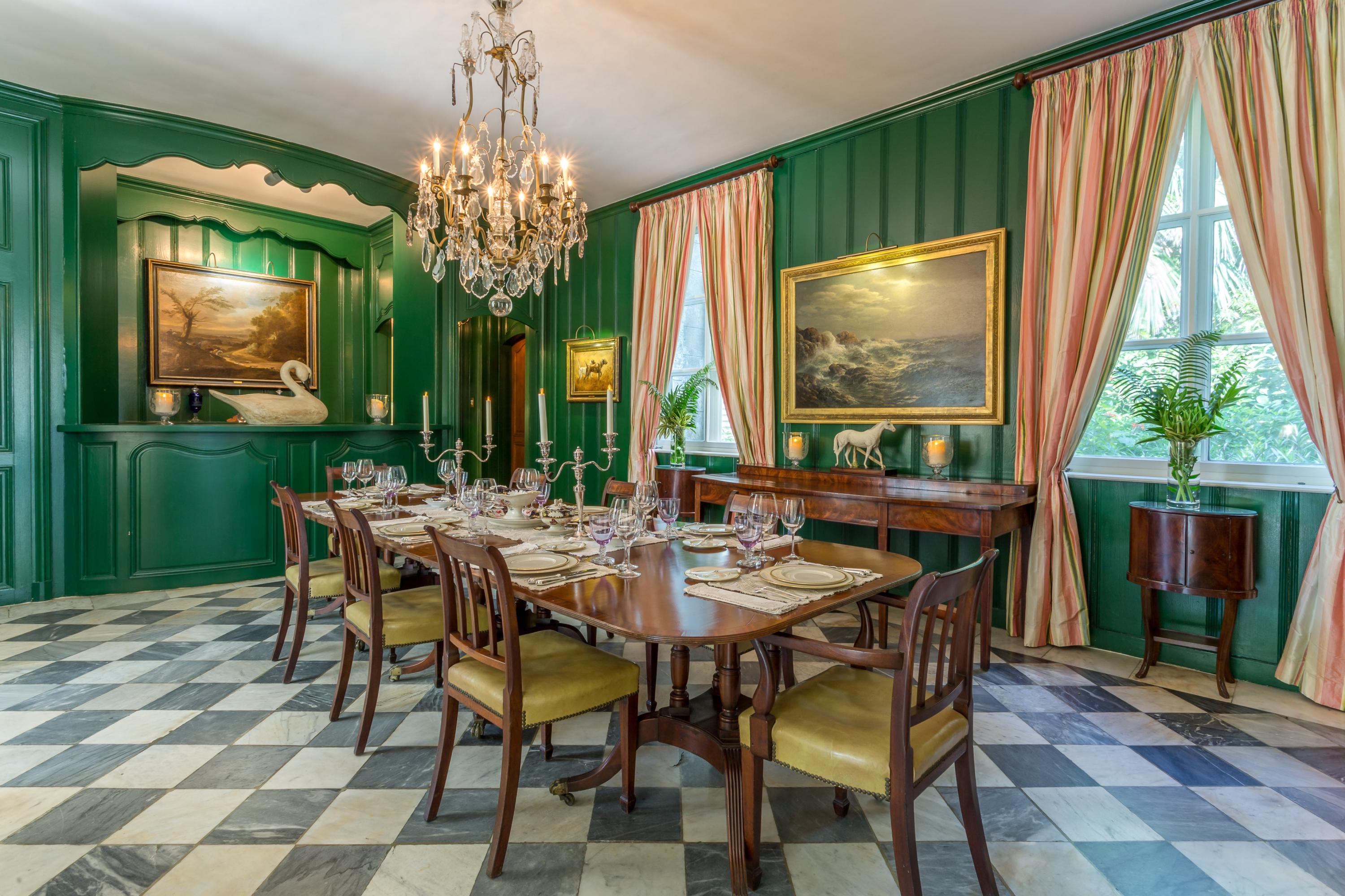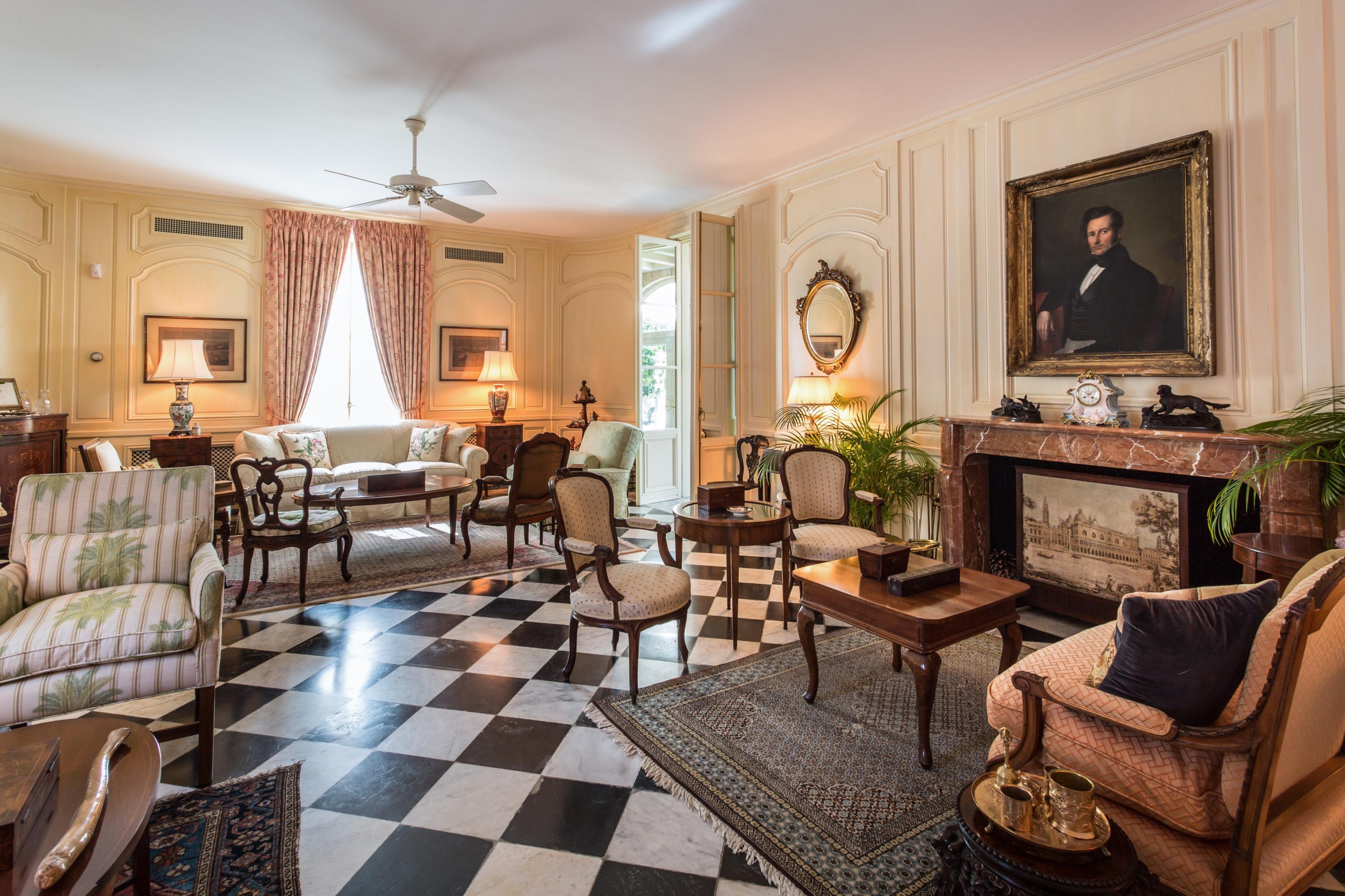 Extraordinary, Landmarked, late 1920's Palm Beach estate created by Howard Major in a "Creole" French Classical design. The stately residence, sitting on a lot of approx. 25,200 sq. ft., is finished with natural rusticated quarried coral blocks originating from Cuba both on the entire exterior as well as several important living areas and trim work on both levels inside the home. Black, white and grey Carrera Marble floors seen throughout the home are believed to have come to the New World as ballast in sailing vessels later cut into floor tiles and installed in a convent in Cuba from whence it was recovered and used in few residences in Palm Beach.The formal living room was designed especially to accommodate the beautiful walnut paneling recovered from a 17th century French Chateaux.
