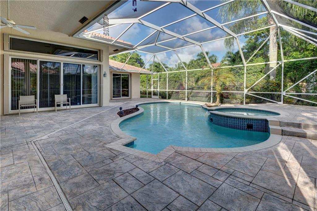 This lovely home features an open layout with tiered trey ceilings. Architectural columns give your breakfast nook a cozy feel. The kitchen features all wood cabinets with granite counters. Master suite features walk in closets and jetted tub. The sparkling screened in heated pool with Jacuzzi has a gentle salt conditioning system and outdoor shower. Awesome pool patio area, great for entertaining! Even a doggy door leading to the fenced yard for your fur babies convenience. Newer S tile roof and A/C.