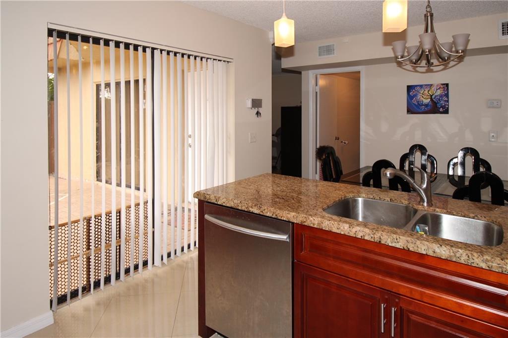 Large Townhome in Boca Rio! Two oversized bedrooms with bathrooms in each. Half bath downstairs. Lovely front patio with pavers and privacy fence. Kitchen has been updated with wood cabinets and granite countertops. Half bath downstairs has custom tile backsplash, newer washer and dryer and newer vanity. Upstairs has porcelain faux wood tile