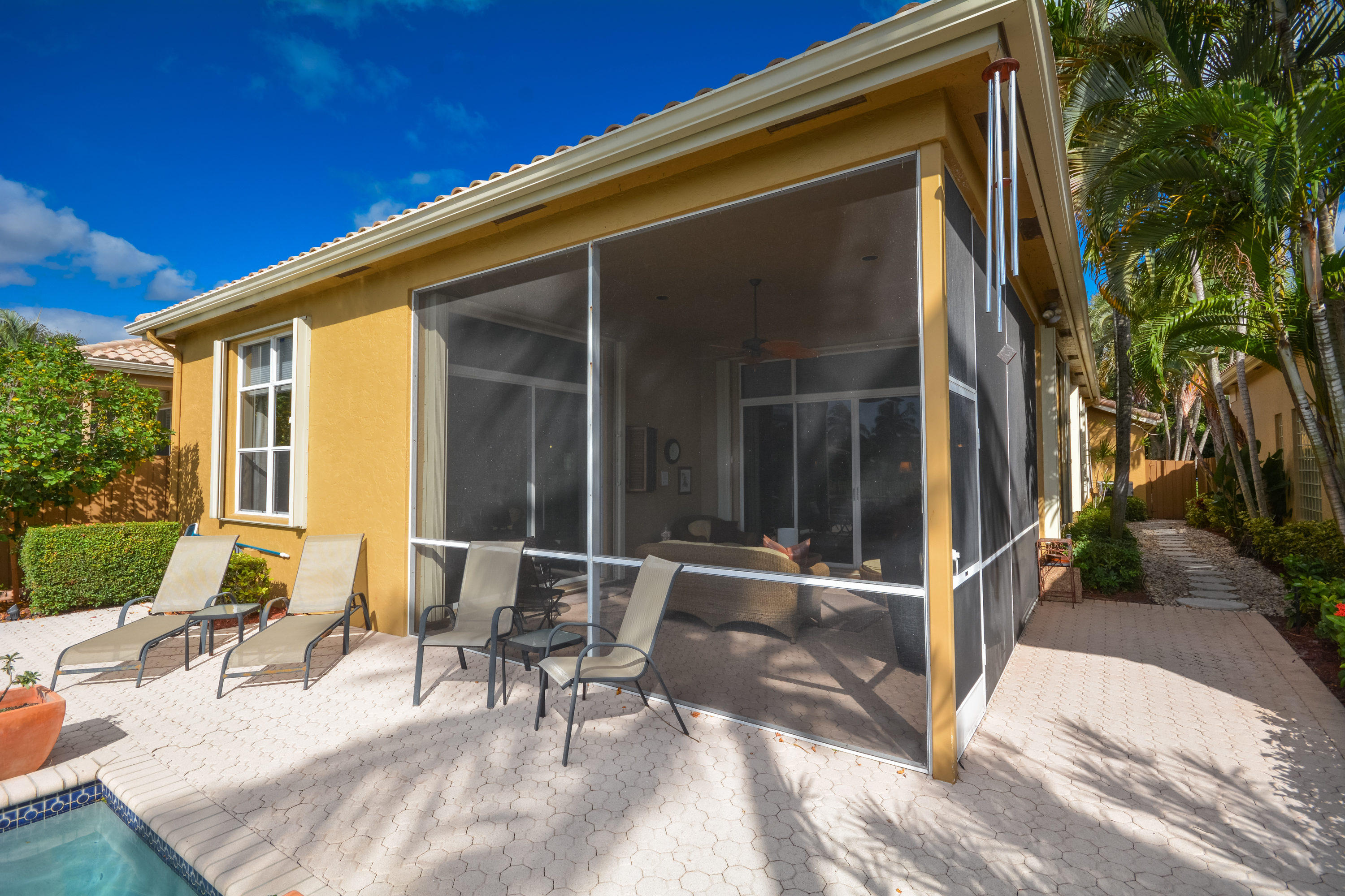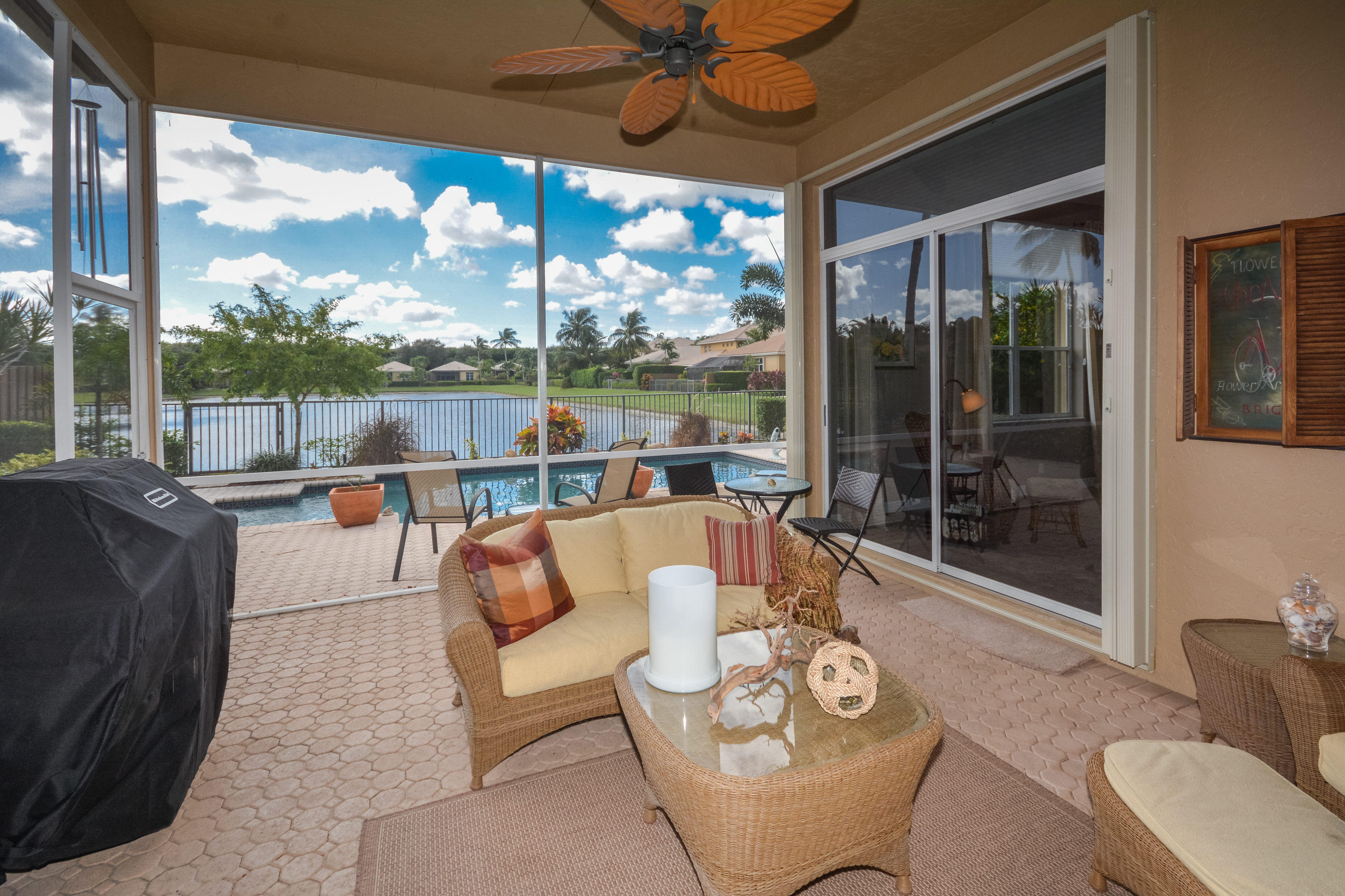 BEST VIEW! BEST LOT! BEST DEAL IN BANYANS!! ''Perfection'' in a home that you come to and move right in and hang your clothes.A location and setting that is second to none, boasting southern exposure overlooking your own pool with long lake views. It is not only in PRESTINE condition, but the 3 bedroom, 2 1/2 bath has been TOTALLY RENOVATED. The interior beginning with a new high end carrera marble kitchen, crown molding throughout, new flooring in the living areas, carpeting in the bedrooms, LED lighting inside and out, closets recently finished by closet factory and a front door installed with glass to let the outside light brighten the entrance way. The exterior has new shrubs, and very recently a new garage floor which is also appointed with built-in wall cabinets for extra storage