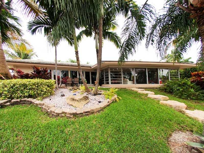 Harbor Beach waterfront corner home with 50' dock & lushly landscaped grounds. 1 fixed bridge to ocean. Main house has 3 bedrooms & 2 full baths. Open floor plan. Wide Florida room with floor to ceiling sliders for views of water & luminous light. Watc h boats cruising from your own backyard. Detached garage converted into legal guest suite. Very private property with a beautiful entry courtyard & fountain. Room for a pool. Lots of parking. Membership at Lago Mar Resort optional. Walk to the beach!