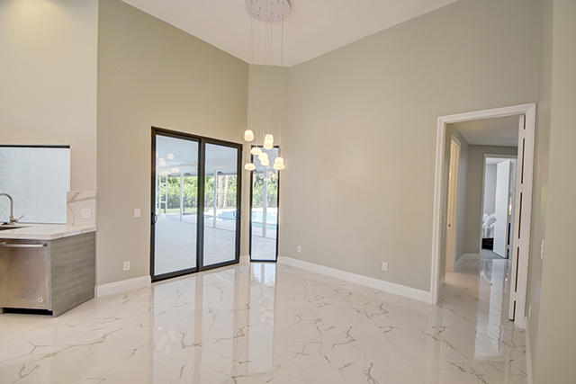 JUST COMPLETED - TOTALLY RENOVATED very contemporary bright and beautiful one-story 4-bedroom + office home (no steps!) with golf course views in St. Andrews Country Club. New hurricane IMPACT windows & doors, new floors, new kitchen, all new bathrooms, new LED lighting, new closets, new wireless security system, new modern fixtures, pool newly resurfaced, interior newly painted & much more! Open kitchen with waterfall island, quartz counters & high-end stainless steel appliances. Master suite has new walk-in closets with built-in drawers, master bath with free-standing tub and quartz counters. New irrigation system, new pool pump, new fence & more. Large pool, lushly landscaped, and expansive golf course views. MOVE-IN READY!
