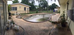 Back On Market! HUGE HUGE POTENTIAL! Perfect for Handyman or Investors! Move in & live in it while you fix it up...This is a HUGE 5/3.5 Pool home on a corner lot. East of I95 & Close to BEACHES! NO HOA! FIRST TIME ON THE MARKET! HOME NEEDS TLC. In total there are 5 Bedrooms, 3 Full Baths, 1 Half Bath & 2 car garage. There are TWO KITCHENS; One is a VERY LARGE eat-in kitchen and the other is the original kitchen that is now shared with the laundry room. Kitchens are in separate rooms. Very Large Pantry. In addition to the 5 Bedrooms there are 2 HUGE BONUS ROOMS on the west side of the home. Very Large private pool. Fully fenced yard with huge parking area. Roof was replaced in 2006. All measurements are approx. Buyer responsible for clean out of property