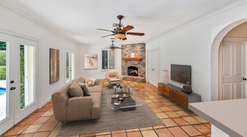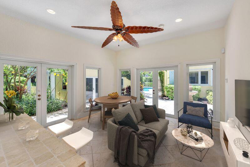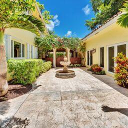 Unique old world charm abounds in this Addison Mizner designed home. Nestled in the historic and exclusive neighborhood of Old Floresta, the property maintains the alluring charm of yesteryear and pays tribute to its rich history. The main house and two guest homes open to an enchanting courtyard creating a beautiful setting for outdoor living, dining and entertaining. This property features 3 separate structures, which include the primary residence and two separate guest homes. Gracious formal living and dining areas flow into a spacious, sunlit eat in kitchen and family room which open to a beautifully landscaped pool patio. Mexican tile and hardwood flooring create warmth and charm throughout.