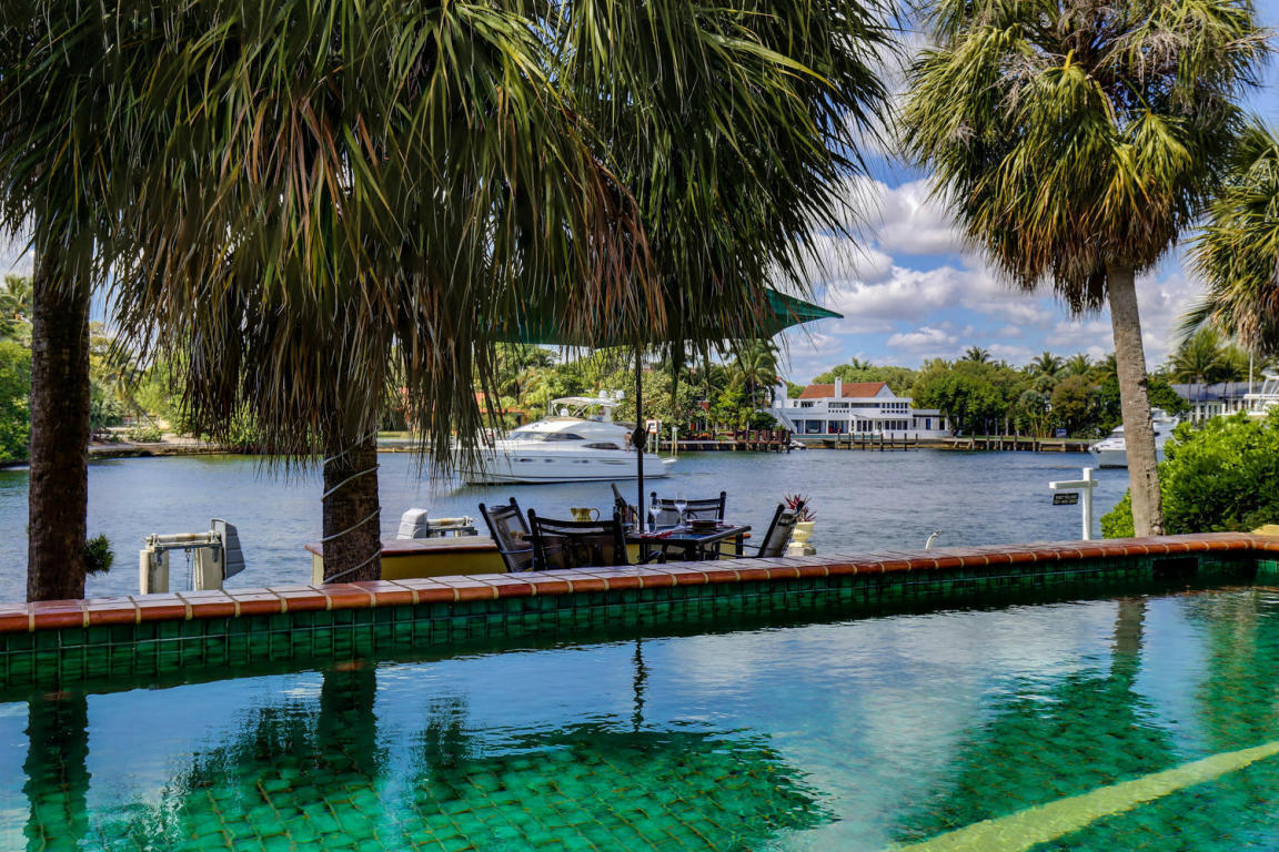 Direct Intracoastal home with 112 ft of waterfront in a No Wake Zone on the Barrier Island. Home was Rebuilt in 1999 and features high ceilings, 8 foot doors, 4 bedrooms, 3.5 baths with master downstairs and second master upstairs; both complete with Spa Tubs and Circular showers. Kitchen is a chef's dream with cherry wood cabinets, gas Thermador range and butcher block maple counters. Lush Landscaping and flower filled property all within blocks to the beach and fine shops and restaurants. For the boater..Minutes to Lake Boca and the Boca Inlet