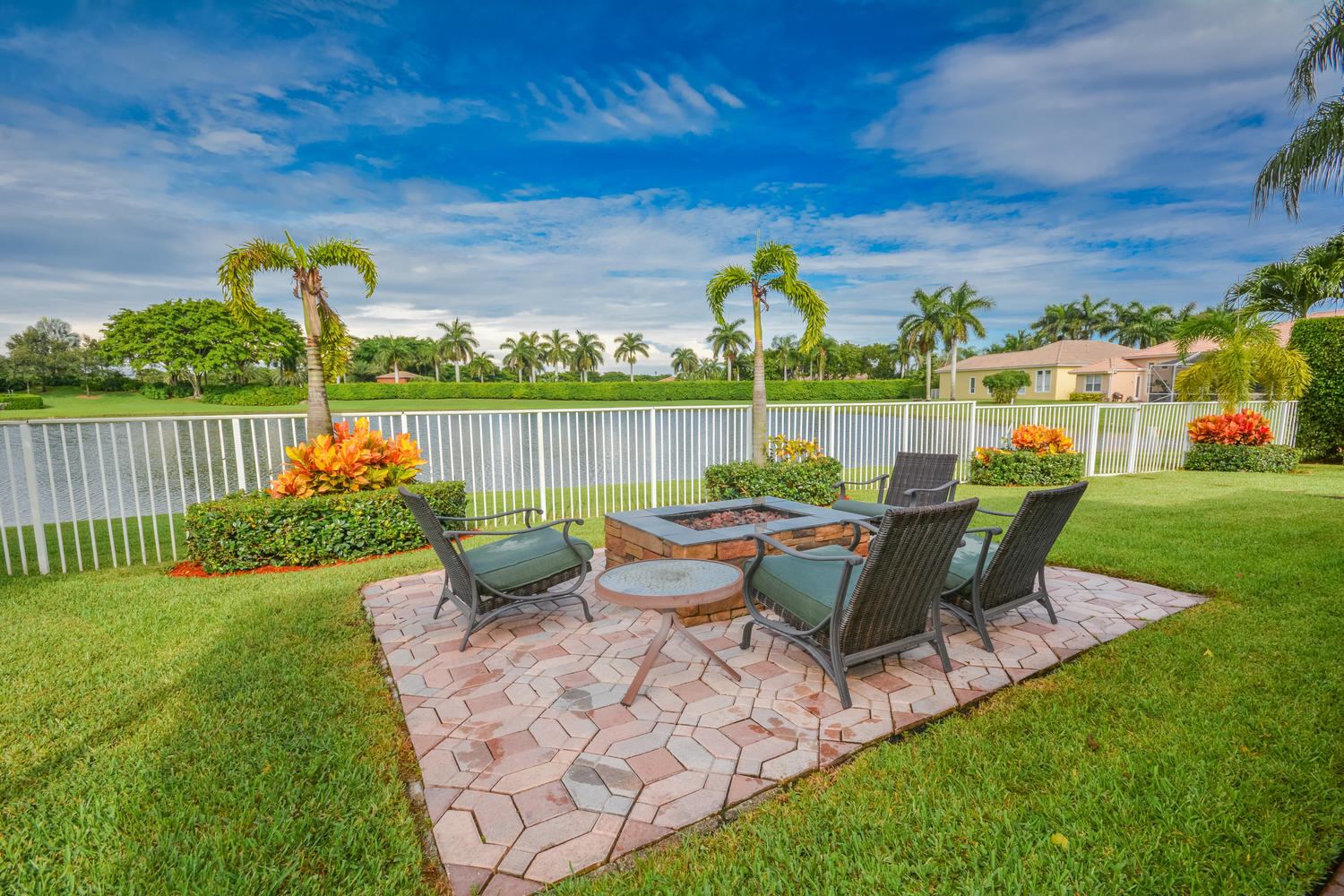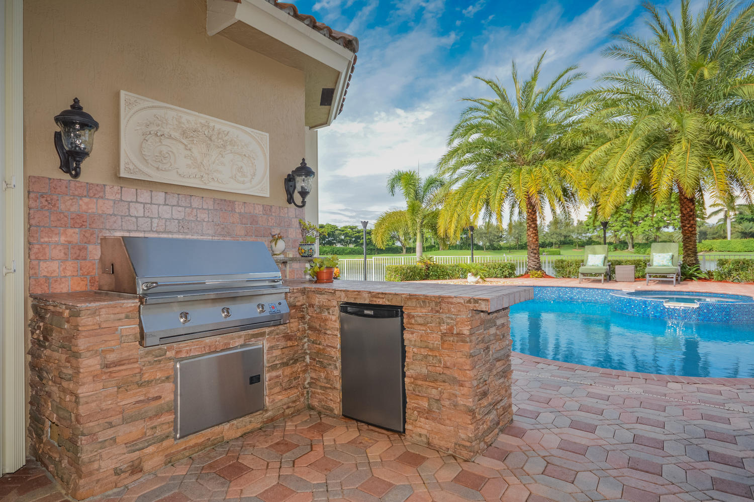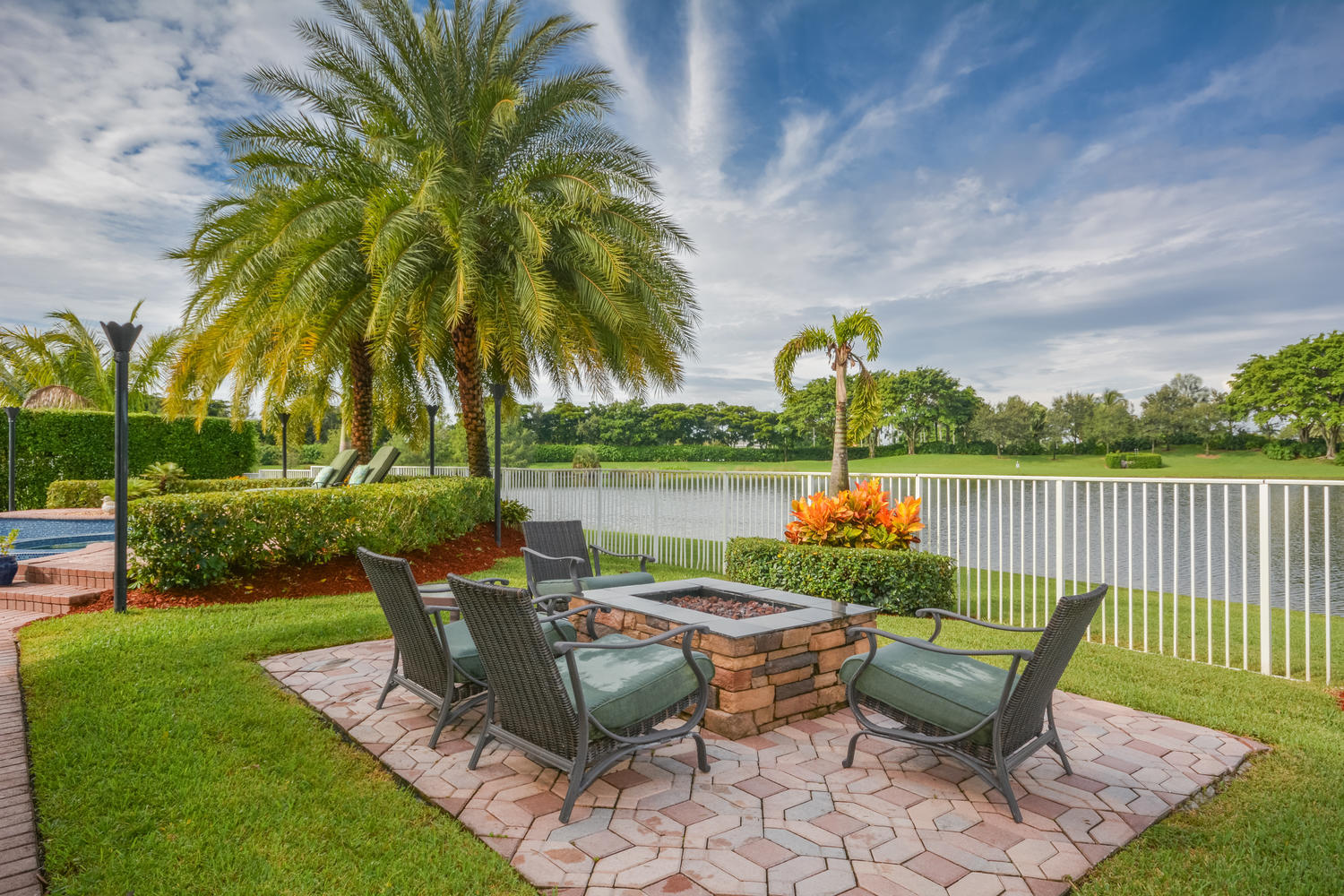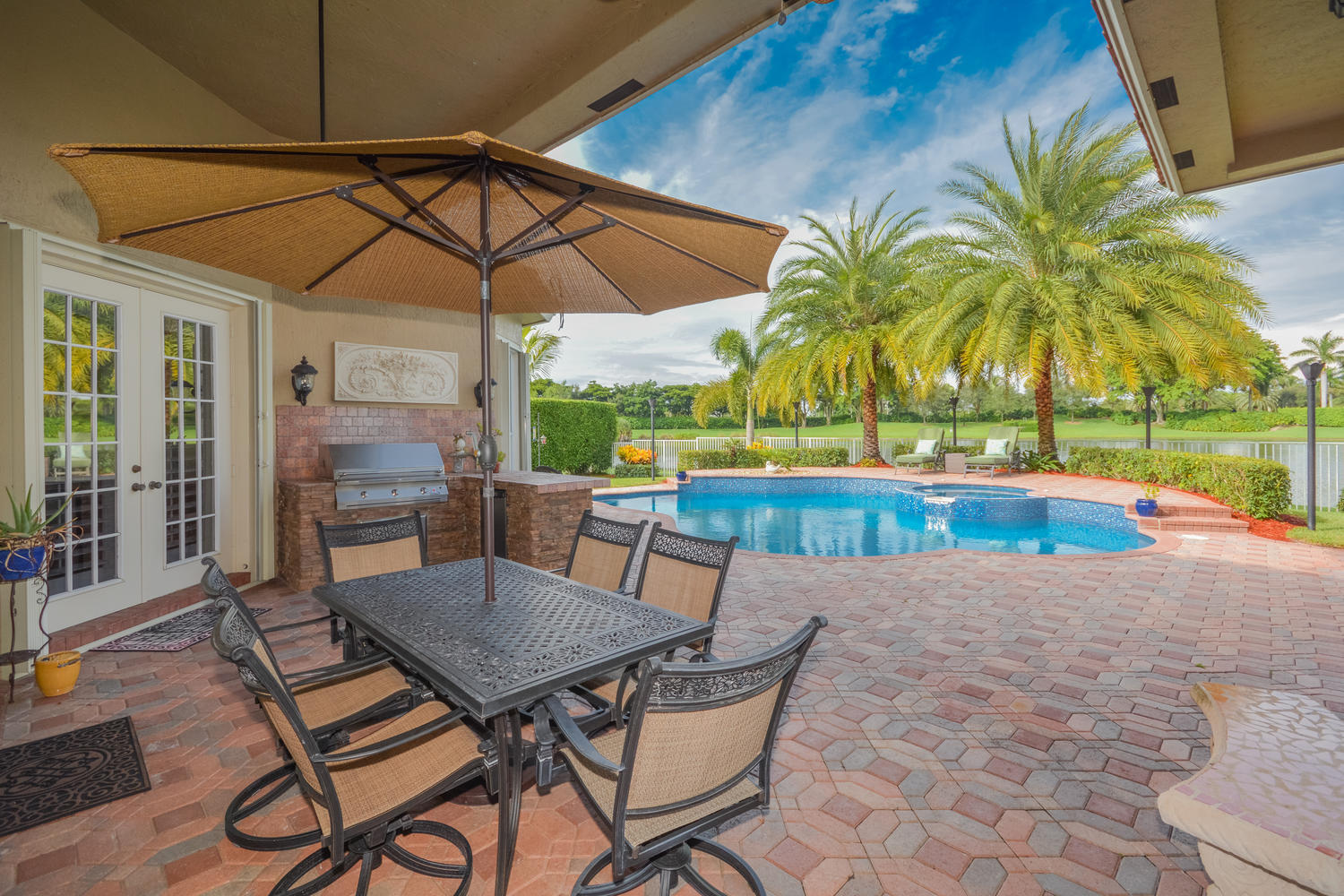 Pristine home on one of the best lake lots in Boca Falls! Desirable Mikasa one story model with triple split floor plan. This home is truly move-in ready with chef's kitchen with granite countertops, white wood cabinets & stainless appliances. Tile floors in living areas, wood floors in secondary bedrooms. Custom features including plantation shutters, crown molding & built-in closets. Extraordinary pool, patio and backyard with newly refinished heated pool, gas outdoor kitchen, gas tiki torches, firepit & panoramic water views with no rear neighbors. Accordion hurricane shutters on all windows. Boca Falls features two manned gates, clubhouse, fitness center, resort style heated pool tennis courts with league play, kids playground, & more with NO equity membership.'A' rated schools nearby