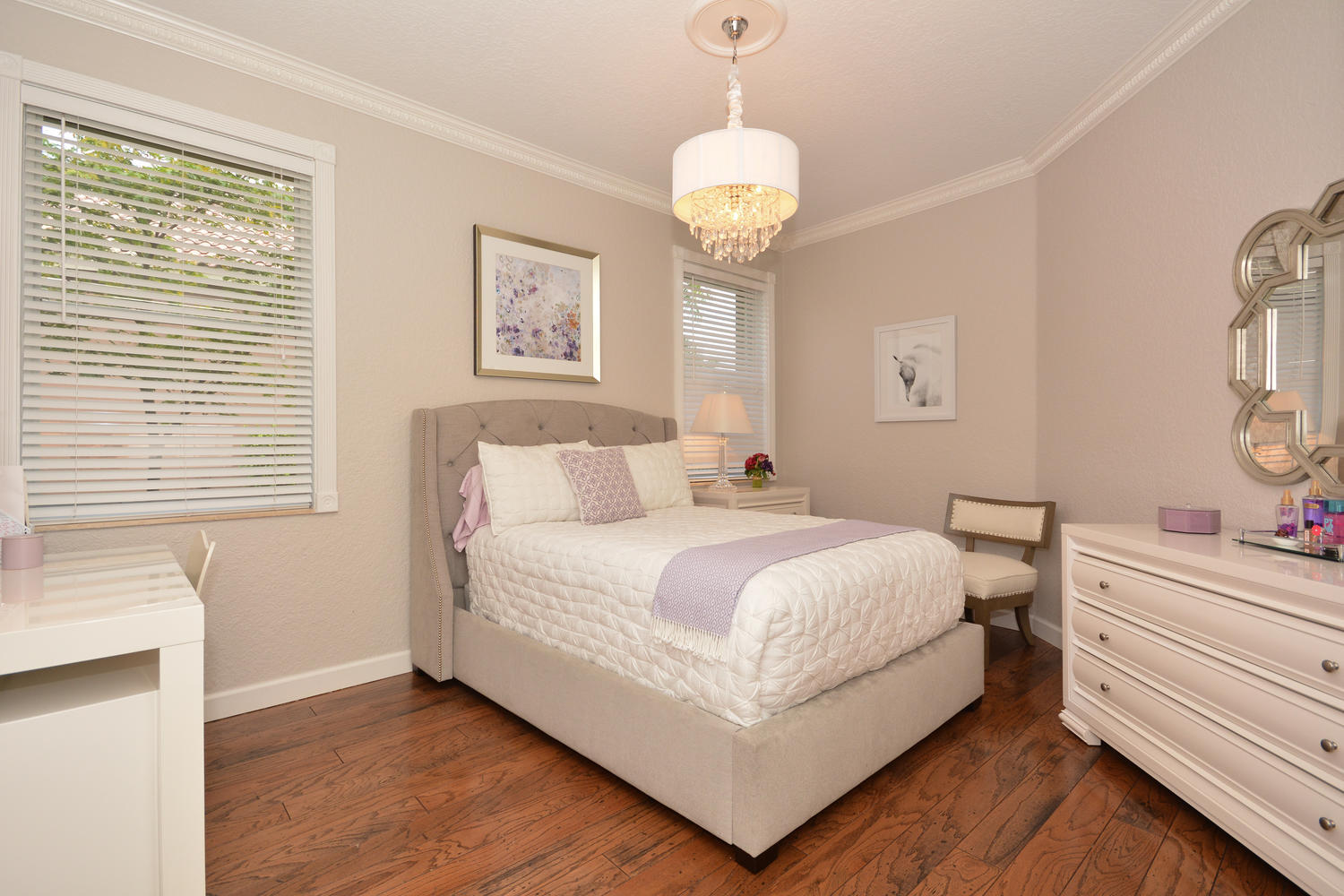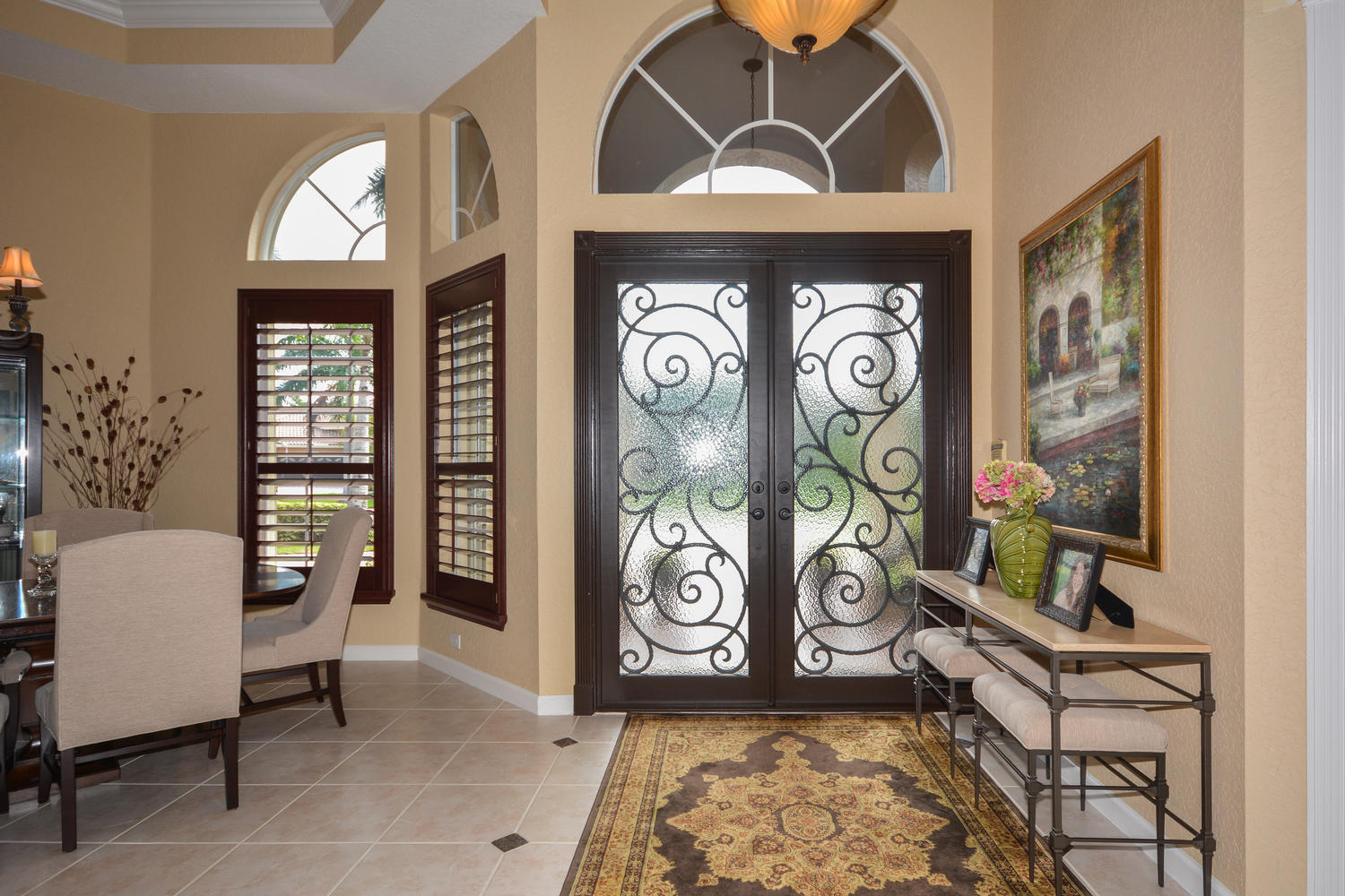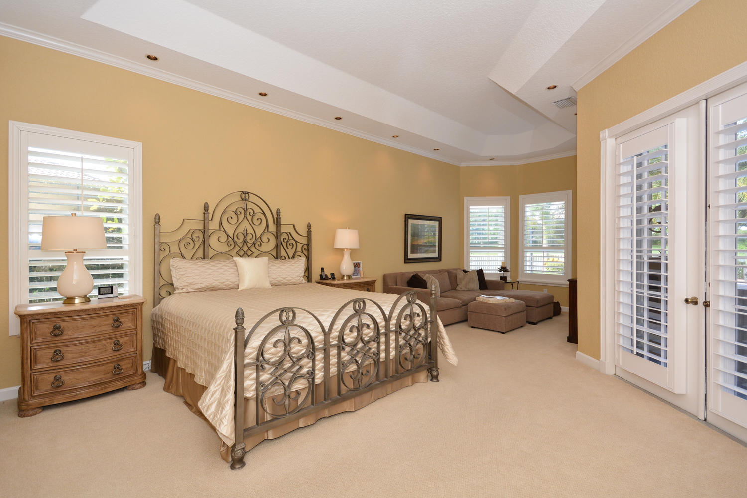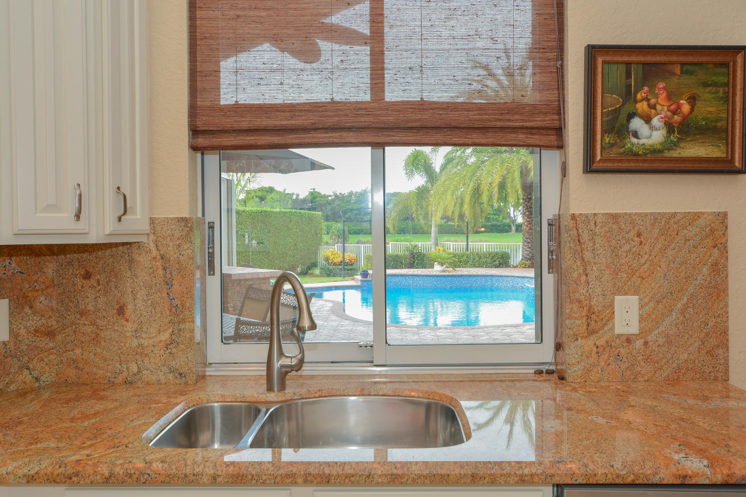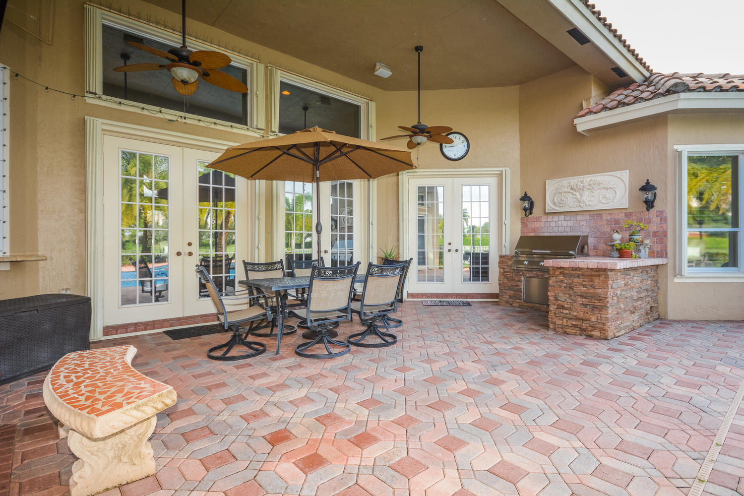 Pristine home on one of the best lake lots in Boca Falls! Desirable Mikasa one story model with triple split floor plan. This home is truly move-in ready with chef's kitchen with granite countertops, white wood cabinets & stainless appliances. Tile floors in living areas, wood floors in secondary bedrooms. Custom features including plantation shutters, crown molding & built-in closets. Extraordinary pool, patio and backyard with newly refinished heated pool, gas outdoor kitchen, gas tiki torches, firepit & panoramic water views with no rear neighbors. Accordion hurricane shutters on all windows. Boca Falls features two manned gates, clubhouse, fitness center, resort style heated pool tennis courts with league play, kids playground, & more with NO equity membership.'A' rated schools nearby