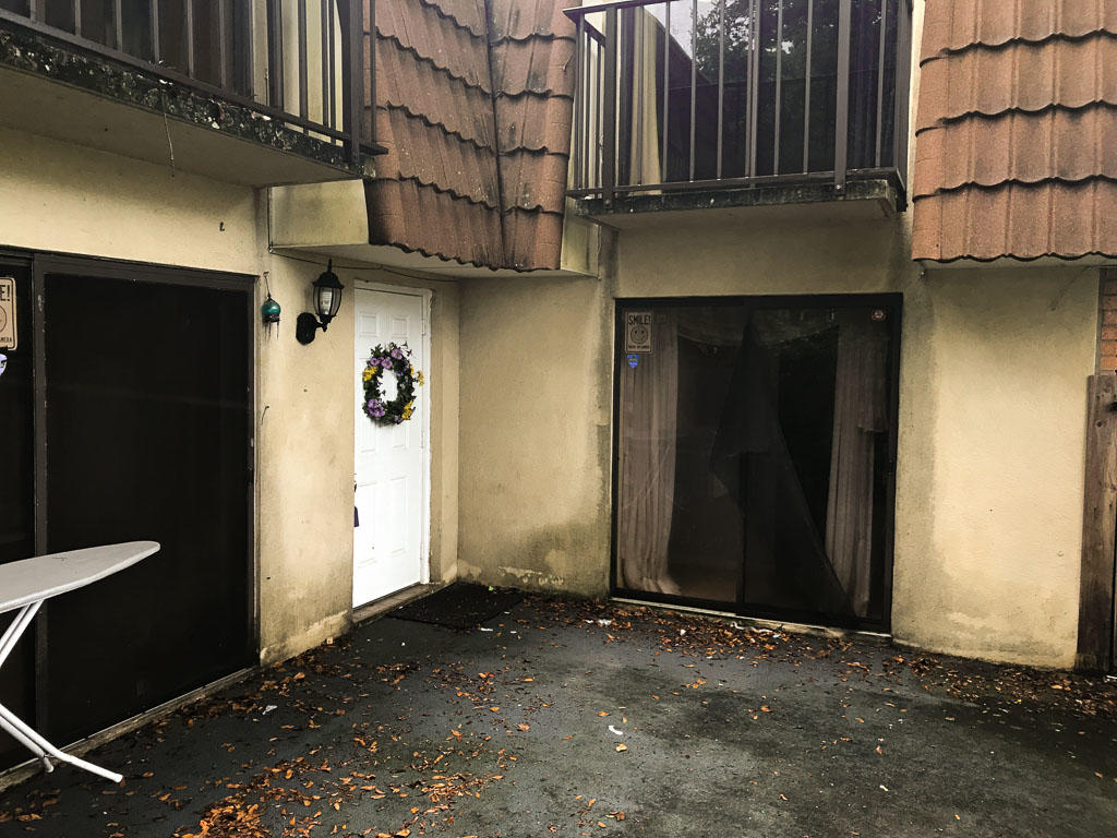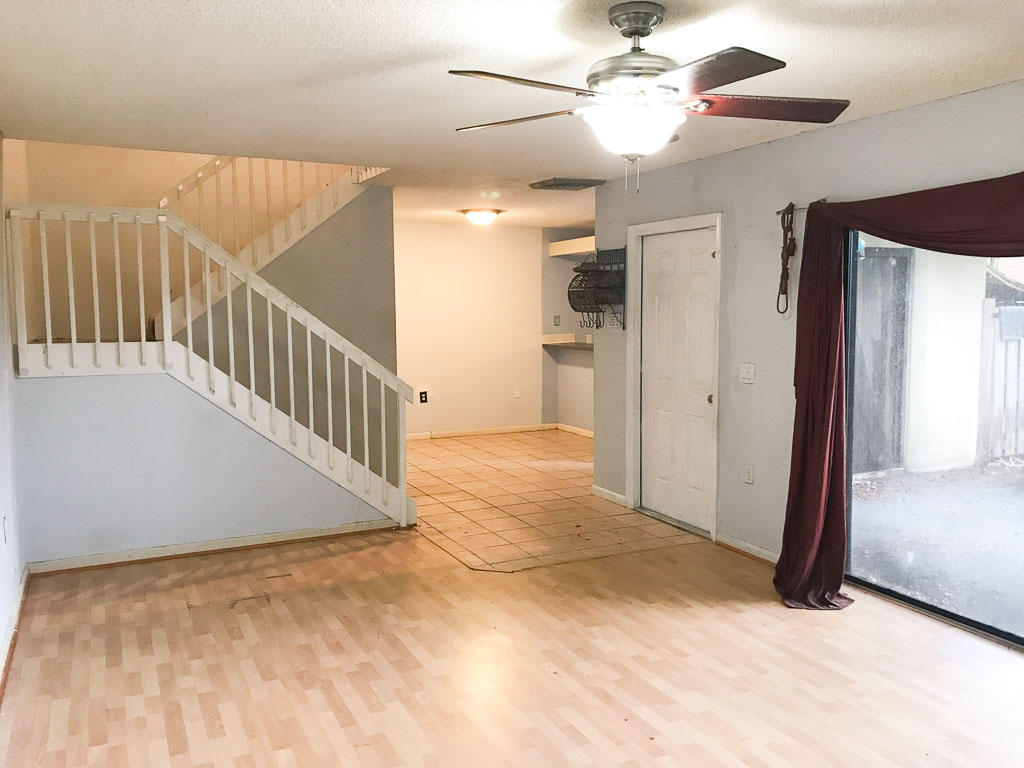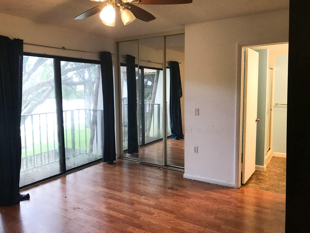 Great opportunity for a First Time Home Buyer looking to make this home their own! 2 bedrooms that have their own bathrooms and balconies overlooking the large patio. A large downstairs living space which includes the kitchen, dining area, snack bar, and a half bath which is also the inside laundry room. There is a custom entertainment center in the living space, and a privacy fence to ensure that your evening under the stars goes undisturbed.