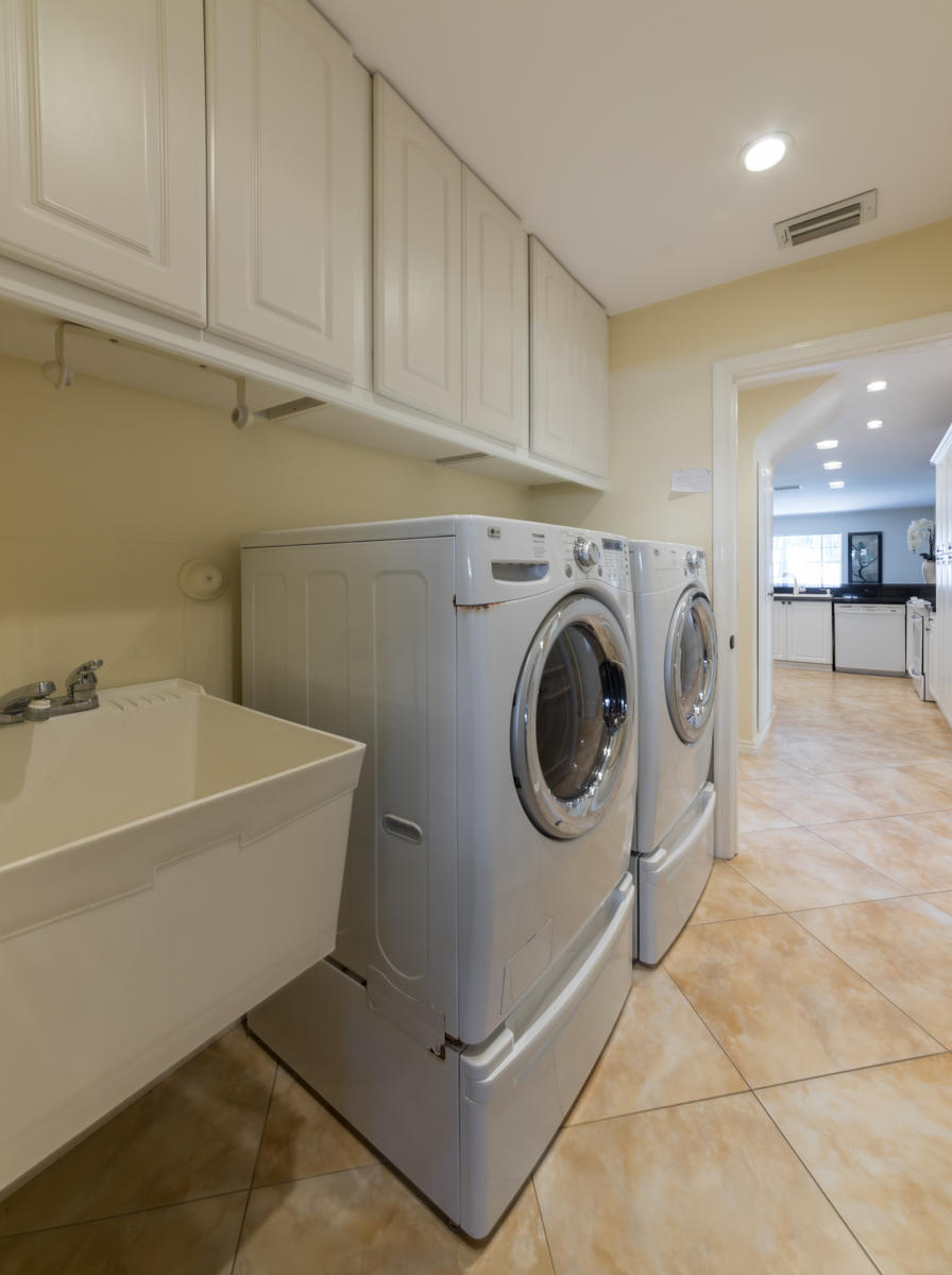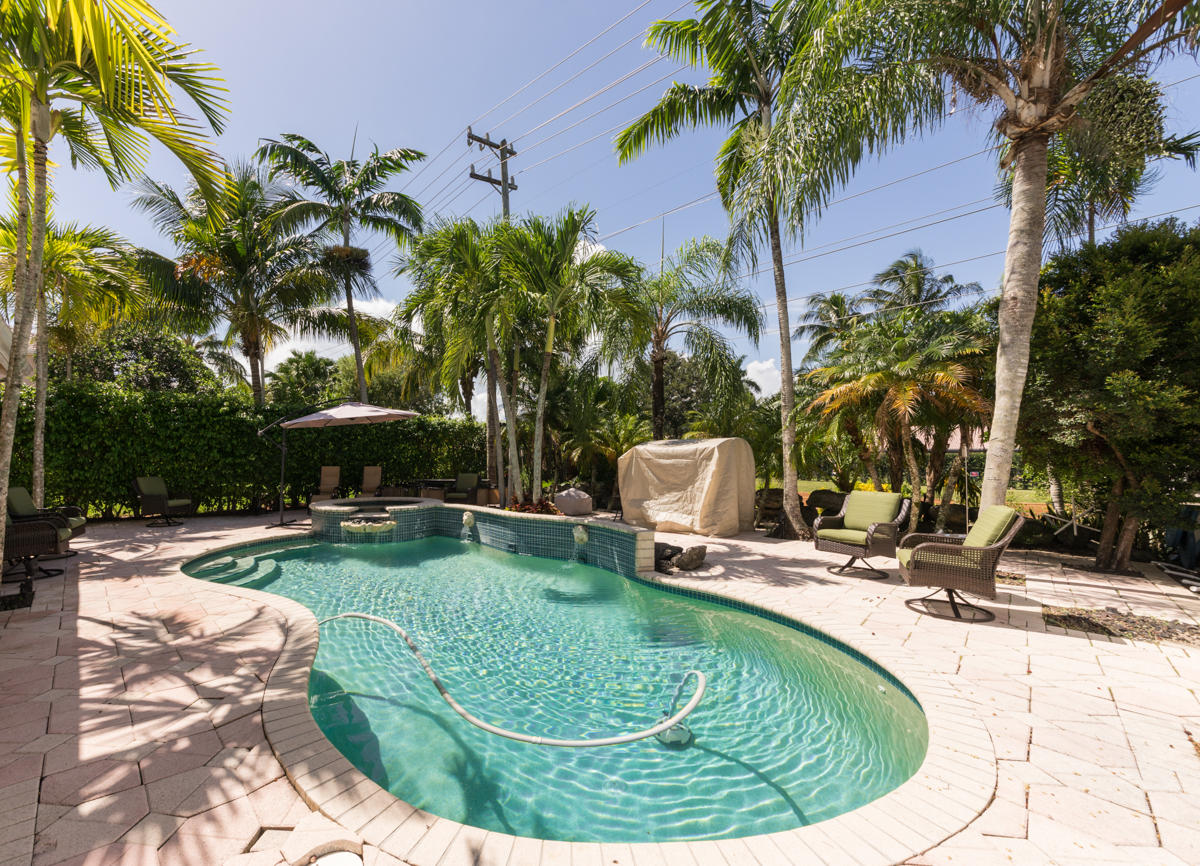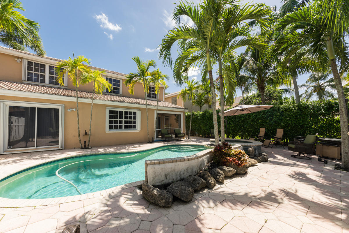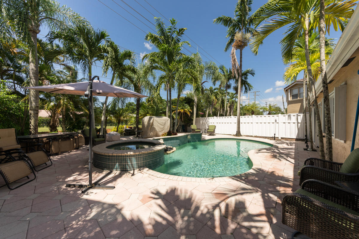 This elegant estate home has been meticulously cared for - attention to detail can be found throughout. This grand home features crown molding, recessed lighting, formal living, dining & family rooms, large neutral tile downstairs & real hardwood flooring upstairs. Updated kitchen with granite counter tops. Large Master bedroom located on the 1st floor with tray ceilings, master bath w/double sinks, roman tub & separate shower. Enjoy your spacious and private backyard; this tropical oasis is complete with open patio area, free-form pool and elevated spa. Accordion shutters, newer a/c oversized garage & driveway.
