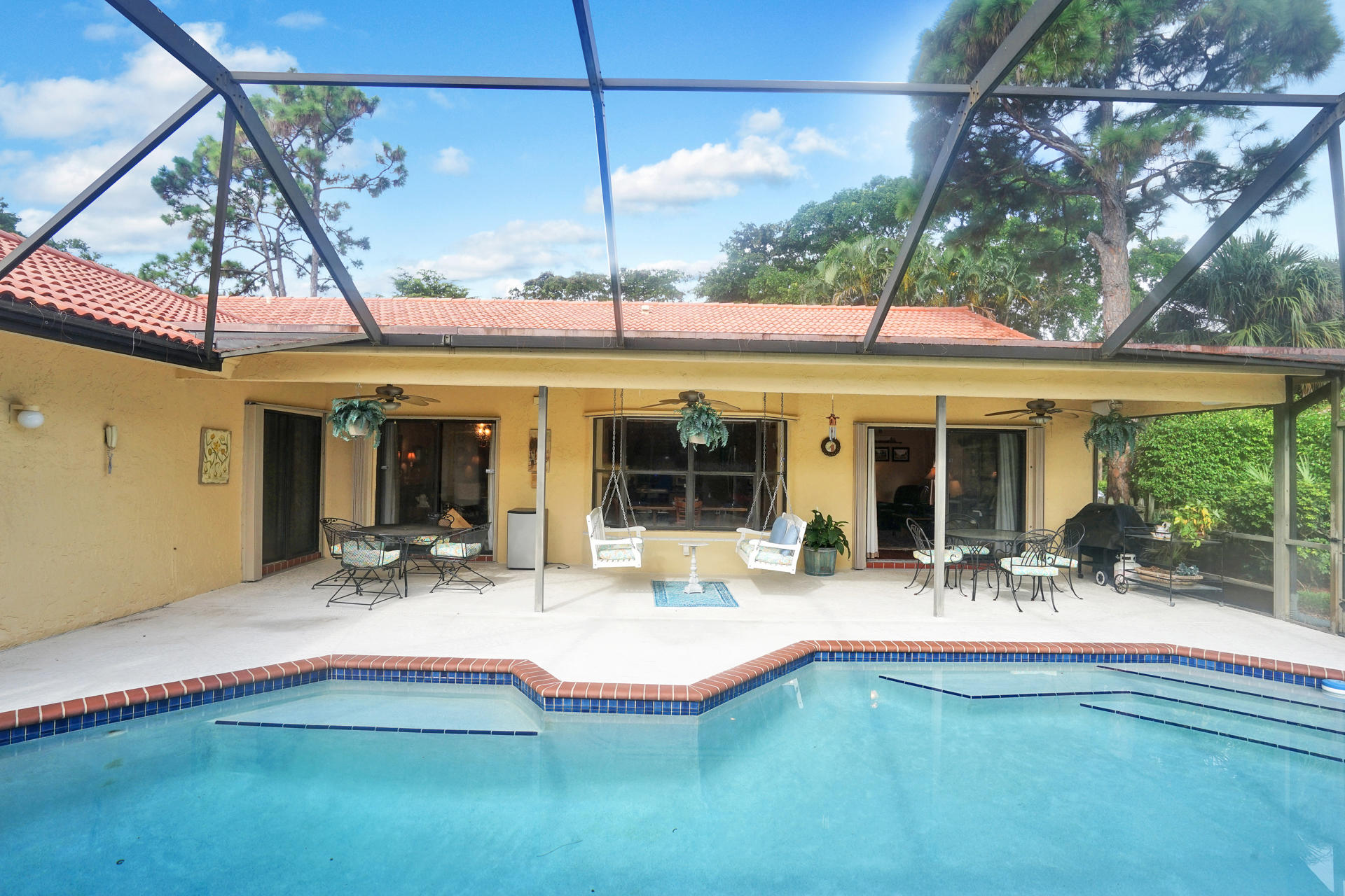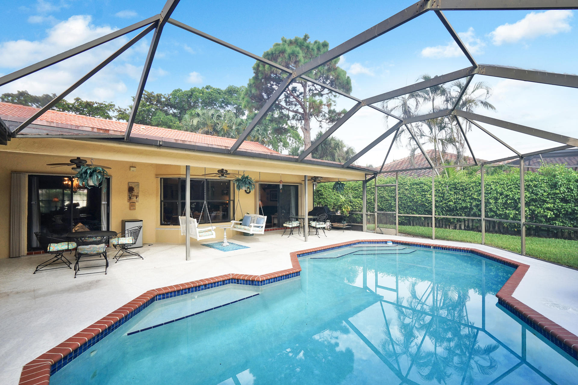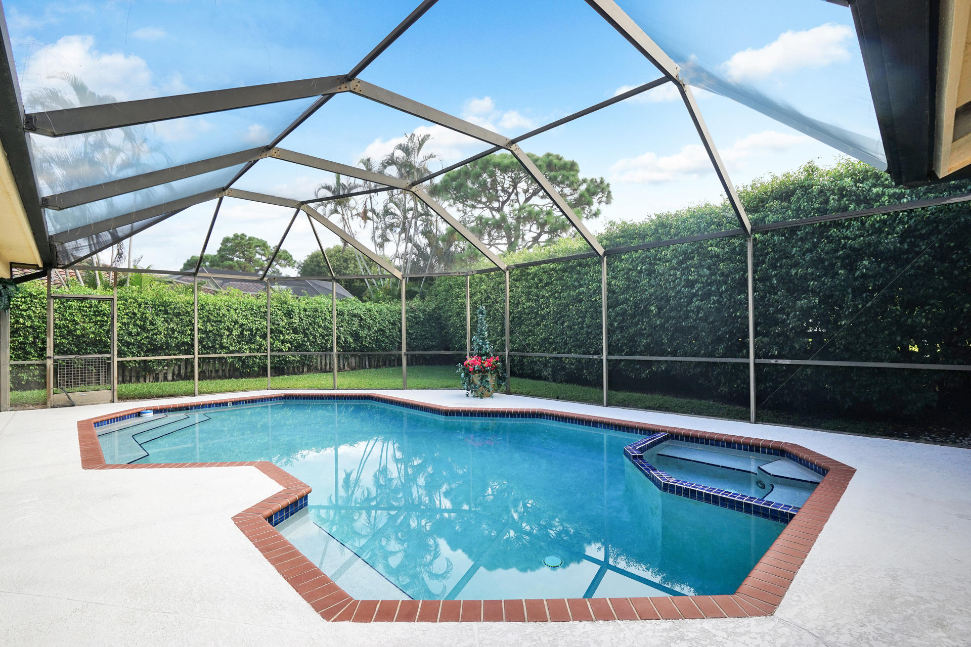 Gorgeous corner lot home at top of cul-de-sac in sought-after MILLPOND. Exquisite remodeled kitchen with granite, undermount sink, new SS appliances. New GE washer & dryer, Brazilian engineered cherry wood flooring throughout. Remodeled master bath and powder room. New screens surround the lovely outdoor screened patio entertaining area with pool, spa with pool heater. Fenced Back Yard! A/c 2010, Roof 2004. Home comes equipped with back-up power generator. Professional Landscaping. A gem that won't last in Millpond!