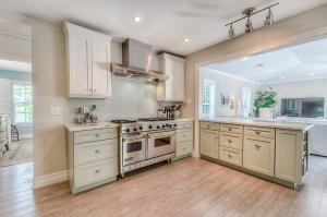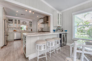 Stunning frame-up renovation designed by local designer Liliana Batista (owner of The Painted Ox). The floor plan was modified to included all bedrooms with en suite bathrooms and a large walk-in closet in the master bedroom. Some of the improvements include: new metal roof, new impact windows, new kitchen with Thomasville cabinets, a 48-inch Viking range and high-end SS appliances with a beautiful quartzite countertop and glass and marble backsplash. All new electrical, plumbing and sewer lines, new floors, walls trim and Pecky Cypress ceilings. All new lighting and fixtures. New landscaping with Chicago Brick Driveway and walk. Too much to list. Room for pool. Furniture available for sale separately.