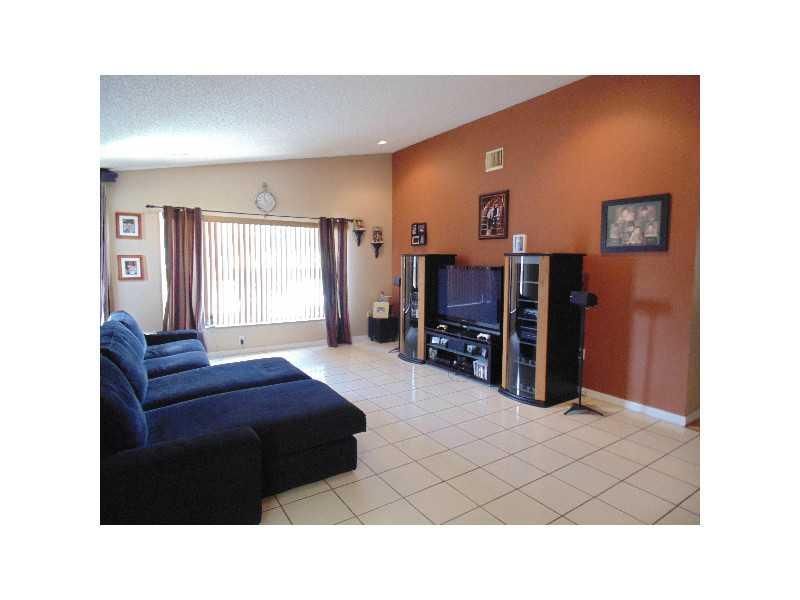 Terrific split floor plan in this 4 bedroom 2 bath pool home in Residences of Sawgrass Mills and close to everything. Entry step down into living rm. with a view of the pool. Separate dining room leads to kitchen w/island and opens up to family room. Lar ge family room w/doors to patio. 3 bedrooms off family room with cabana bathroom. Tiled foyer, kitchen & baths. Wood floors in living area and bedrooms. Vaulted ceilings. Huge lot and deck. Covered patio with bar area. Great for entertaining .