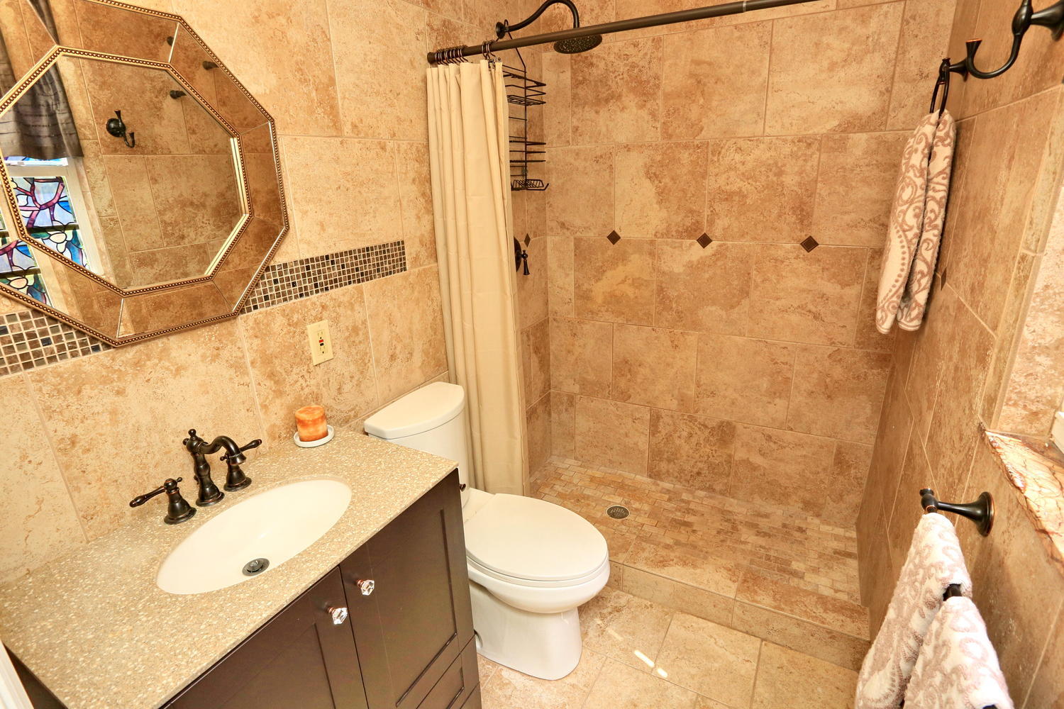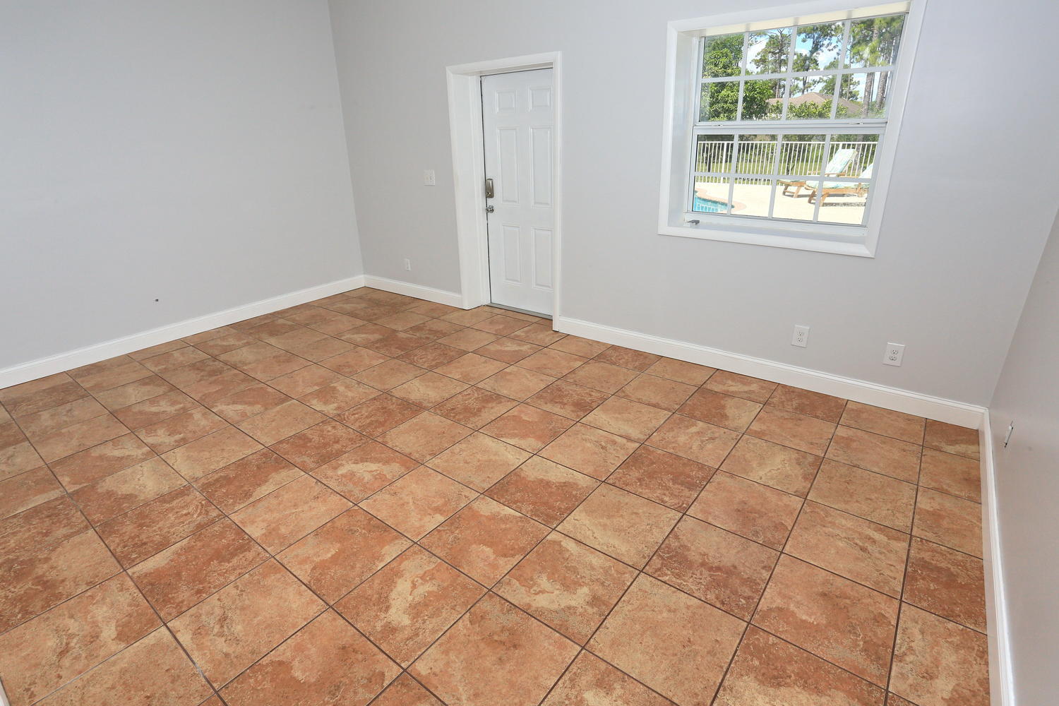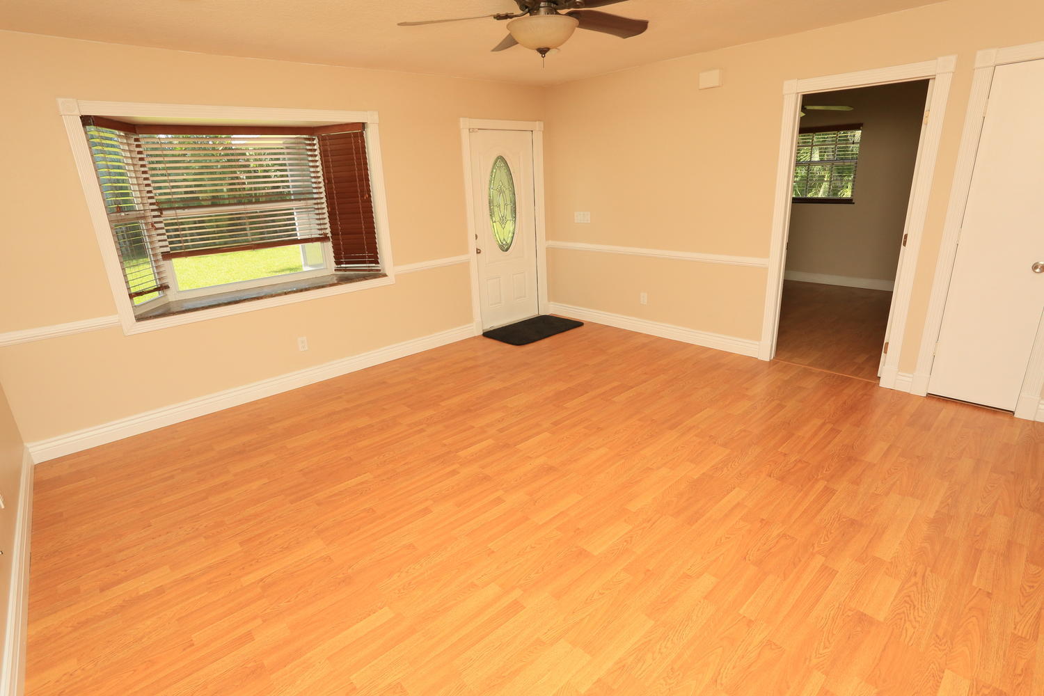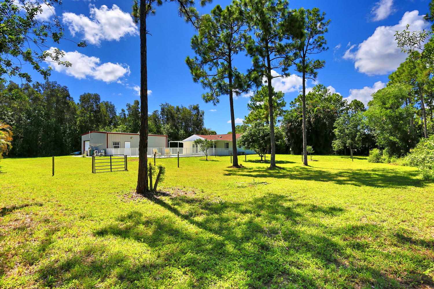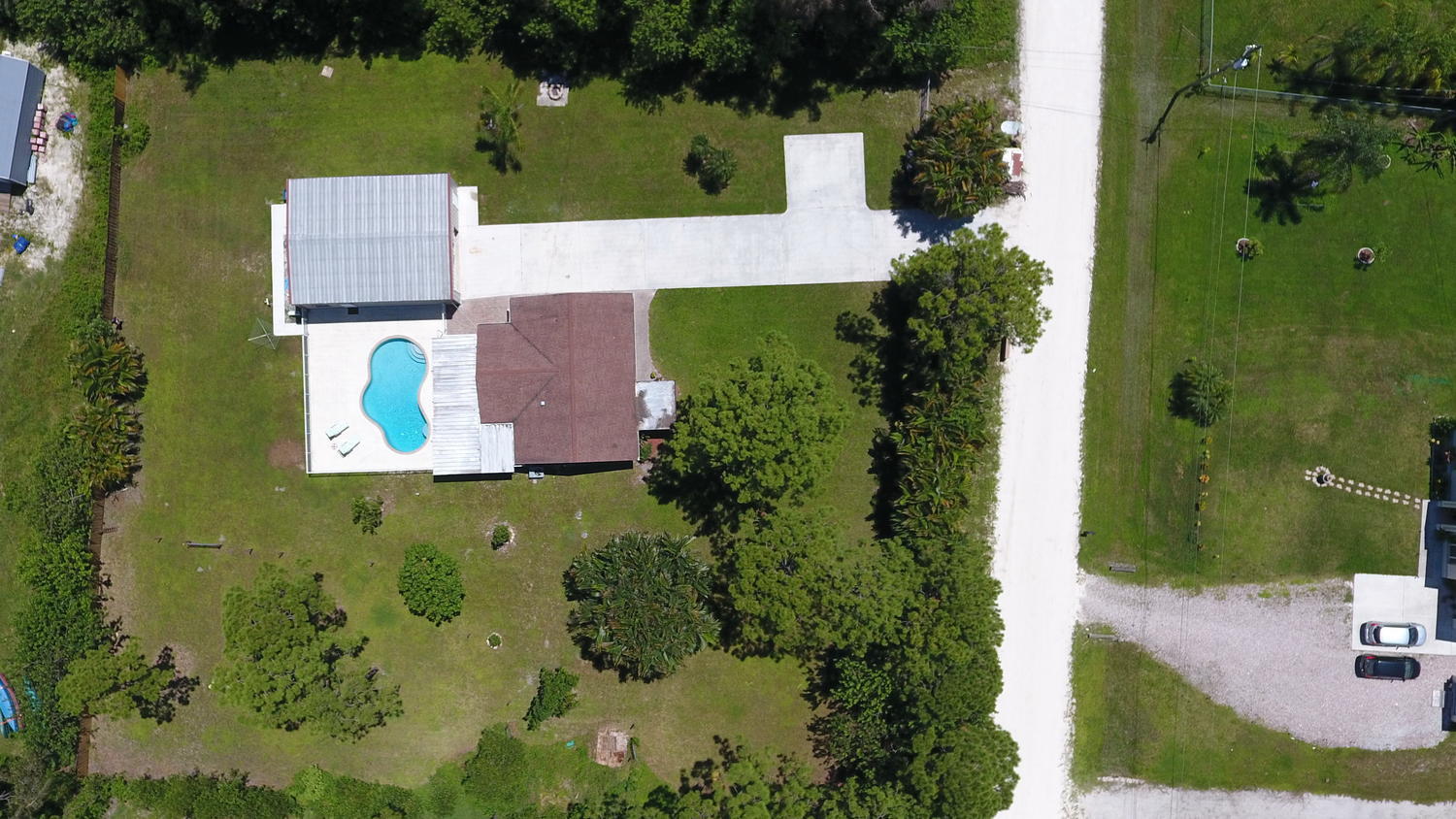 This charming home has been recently renovated, & has 3 bedrooms, 2 baths with a sparkling blue freeform pool! The kitchen has stainless steel appliances with a Chicago brick backsplash & island. There are numerous high hats, a large walk-in pantry/storage area, & there is laundry/utility room access. With wood laminate flooring throughout, the baths have ceramic tile. Exit the french doors to enjoy the relaxing covered patio & open brick paver deck. From here you can enter the detached cabana/pool room with full bath that could also be used as an office or even an art studio! The air conditioned cabana room is housed in the detached steel garage/building measuring 40' X 29', & 2 cars can park easily inside. There is industrial steel shelving, & a 3rd garage door entrance for a golf cart