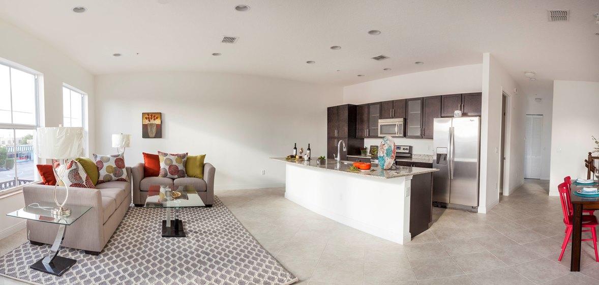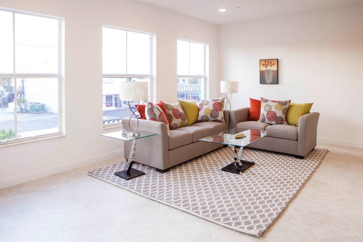 Fantastic 2 story Townhouse in the Newest & Most Exciting Townhouse Complex in West Palm Beach: The ''Villas of Antique Row''. The Best Location--Walking Distance to Everything the makes South Dixie Highway a World Wide Destination Spot! The Restaurants! The Boutiques! The Galleries! The Antiques Shops! The Unit is Just 2 Years old! The Convenience of having a First Floor Tile Entry Foyer, Right off of South Dixie is Just the Beginning! It leads to a First Floor Den or Office plus the Built-in 2 Car Garage! There is A Gracious Wood & Wrought Iron Staircase that leads to the Enormous Great Room/Living/Dining Complex! With 10 ft. Ceilings, it is almost 22 x 24 with a Great Living Space, a Balcony Style Dining Space & A Fantastic Galley Kitchen with Granite Counter Tops, Custom Wood Cabinets,