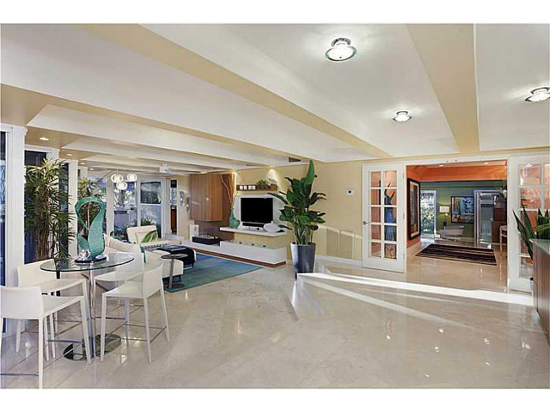 Perfect Tropical Point. Open the door to style & luxury. Professionally remodeled w/ impact windows, designer finishes, high ceilings, bright rooms. Intracoastal water views & garden views from every room. Open flowing floor plan perfect for entertaining & the ultimate boat parade party home. Deep water dockage for up to 80' yacht. Gourmet kitchen & summer kitchen overlooks pool, spa & Intracoastal. Grassed yard for pets or kids. Meticulous condition ready to move in. Walk to shops, restaurants & beach.