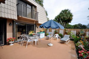 Beautiful, very well maintained 2 bedroom, 2.5 bath townhome in Sandalwood! This home features a very spacious living room, separate dining room which is open to the kitchen making it ideal for entertaining! The spacious kitchen has granite counter top and is open, light and bright with slider leading to the large, private patio! This home offers two master bedrooms - both are spacious and each bedroom has a sliding door leading to a private balcony overlooking the patio. The large private fenced in patio is perfect for a bar-b-que! Home features a new a/c unit replaced in 2015, new washer, dryer and dishwasher, as well as a newer fence, accordion shutters, exterior storage, central vac and alarm system. Entertainment centers in living room and master stay, drapes do not convey.
