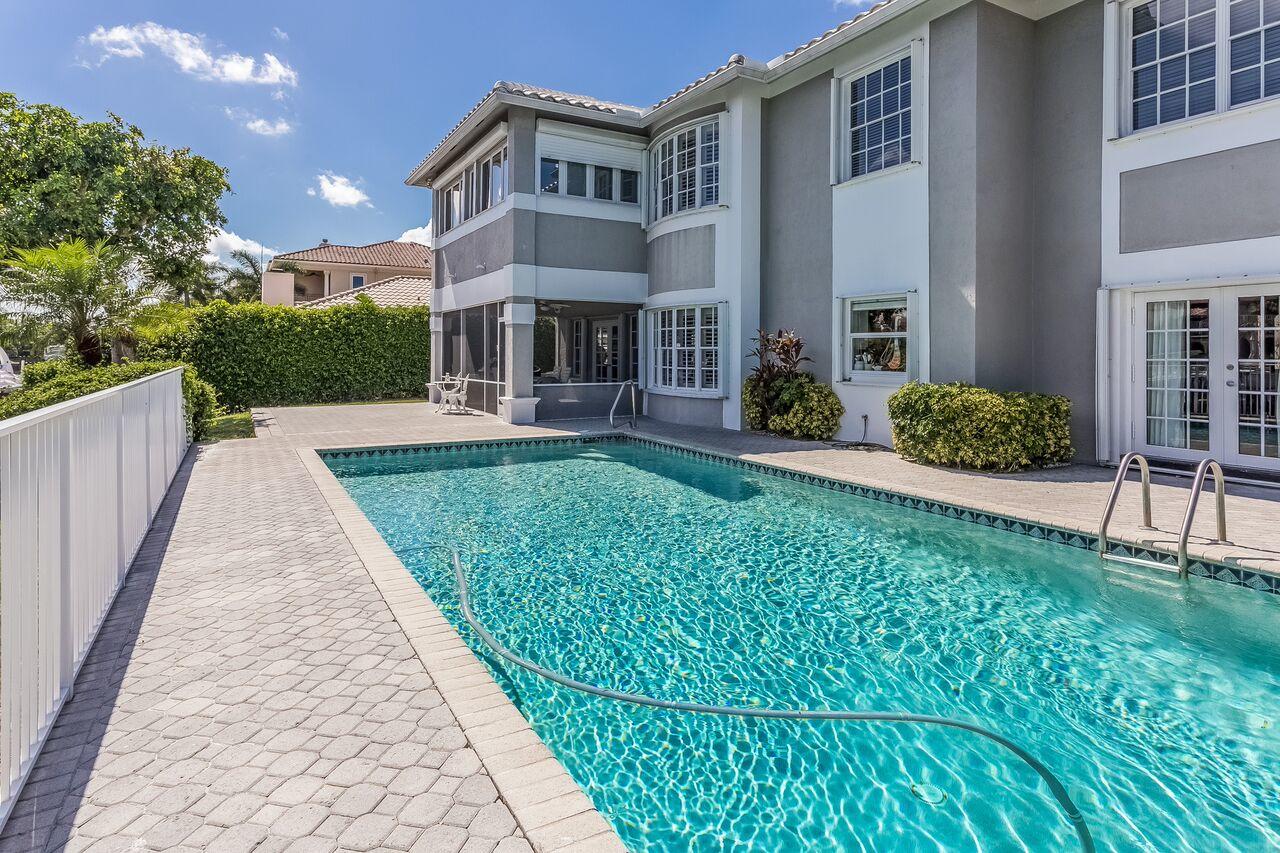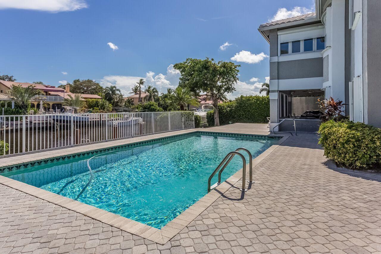 This beautiful East Boca home offers intracoastal/ocean access and a newly refurbished dock. Located in a prestigious area of Boca Raton, this home is spread over 5,000 sq ft on a quiet cul-de-sac street, and has wonderful waterfront/canal views. The home, itself, has been nicely upgraded, and includes marble and wood flooring, 2-story volume ceilings, spacious living areas, an updated kitchen with stainless steal appliances and custom breakfast area, an oversized master suite, large upstairs bedrooms with walk-in closets, 2 balcony enclosures measuring 200 sq ft each, and much more. The exterior features a screened in patio area, and an expansive open-air lanai with pool and beautiful views of the canal and dock which measures 20x5. This home is a must see in this exceptional location!
