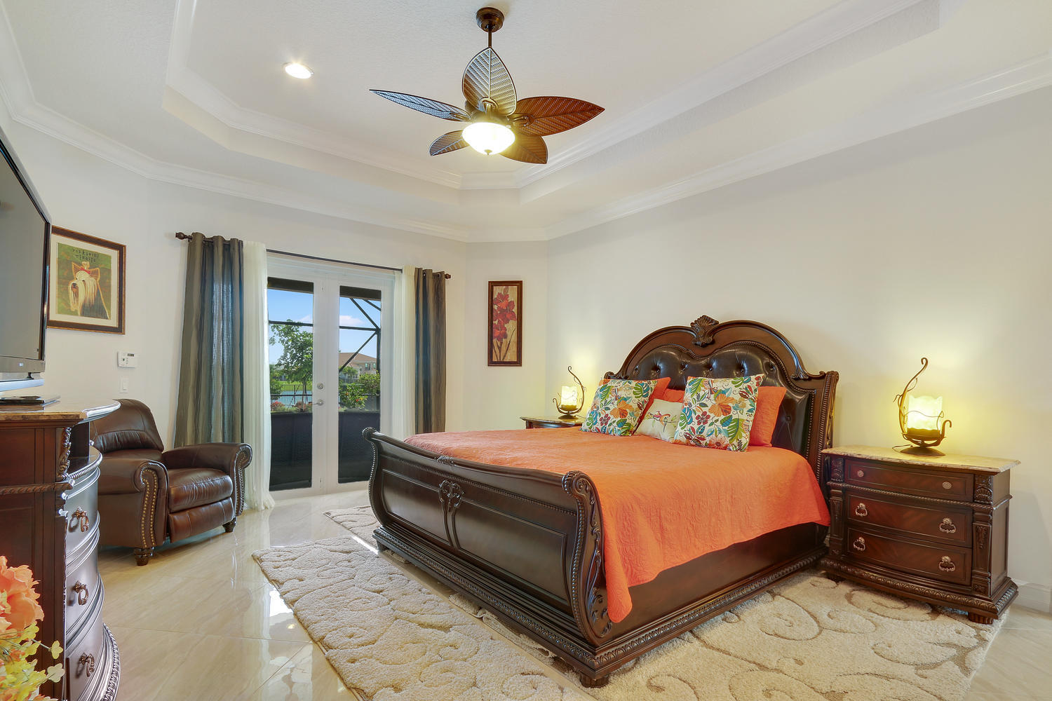 Gorgeous single story home in The Preserve at Bay Hill Estates built in 2016. 4 bedrooms, 4 1/2 baths, den, game room/5th bedroom + 4 car garage. Formal living & dining room w/ butlers pantry incl wine chiller. Gourmet kitchen offers granite counters, stainless steel appliances w/ GE Monogram fridge, double oven, 42'' raised countertop plus casual dining. Polished porcelain flooring, crown molding, coffered ceilings & Plantation Shutters thru out. Family room leads to covered, screened lanai that welcomes you to the custom heated pool & spa overlooking the serene lake with expansive fenced back yard. Impact windows and doors provide peace of mind and energy efficiency. Over $300K in upgrades. This home is barely lived in. Job relocation for seller = good fortune for future buyer.
