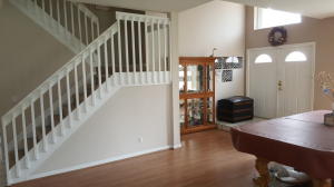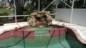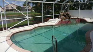 Beautiful 4 bed, 2.5 bath waterfront home with 2 car garage on cul-de-sac. Spacious open floor plan. Kitchen is upgraded with lots of cabinet space. Prime property with view of lake from family room, kitchen, and over-sized master suite. In ground propane tank to heat Jacuzzi and run BBQ. Accordion style hurricane shutters. In ground sprinkler system fed by lake water. Screened in back patio has pool with waterfall Jacuzzi.