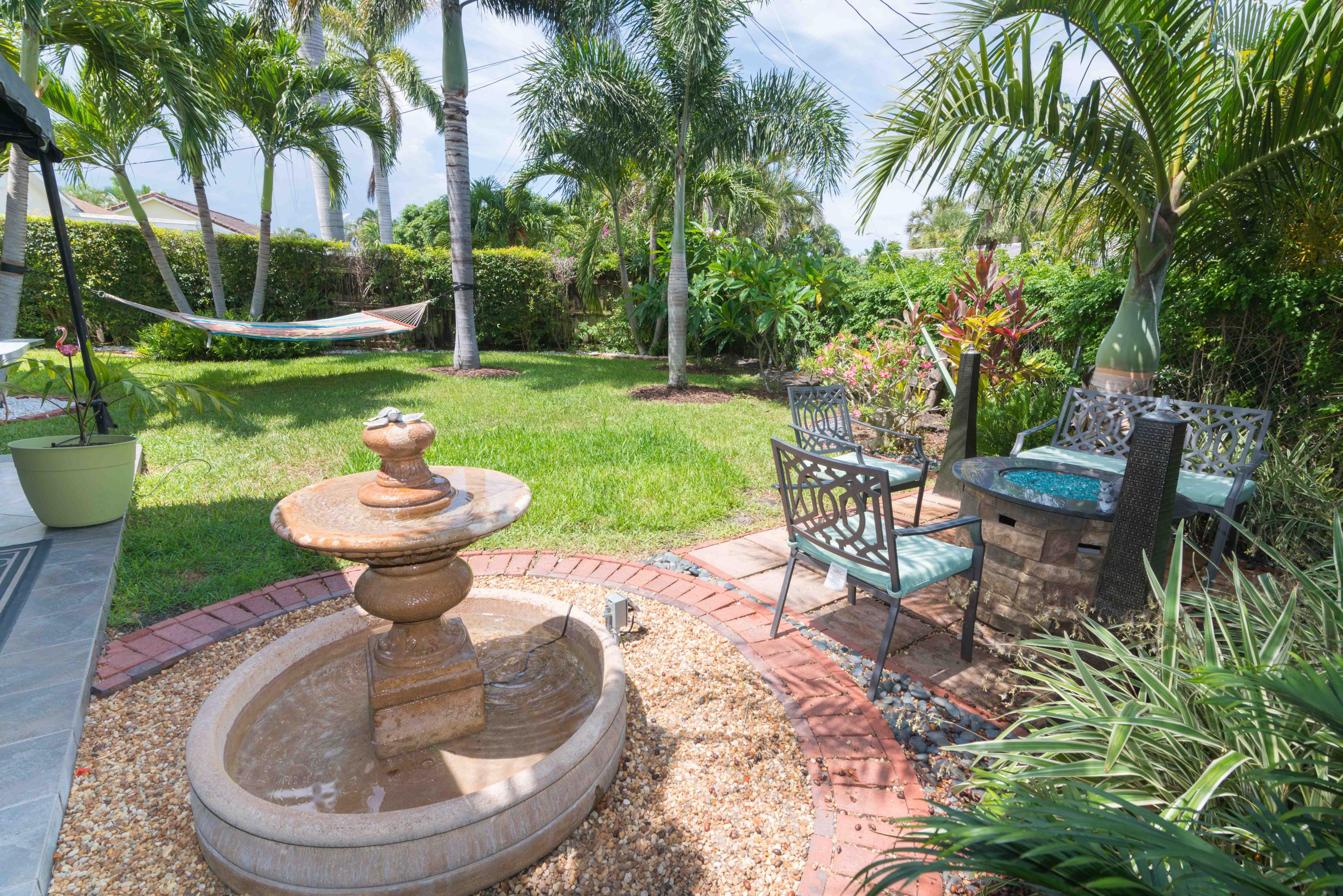 Beautiful corner lot home surrounded by lush tropical landscaping in quiet neighborhood in East Boca.Brand new wood textured porcelain tile in bedrooms.Brand new bathroom with marble countertops & double vanity.Upgraded kitchen w/ high end appliances with custom cabinetry,Custom hood over stovetop,granite countertops,wine cooler,beverage cooler.Split floorplan & large open living/dining/family room area w/ custom crown molding leads out to french doors with private fenced in backyard that can be extended.Hurricane proof windows & doors.Covered tiled patio.Laundry room w/ storage.Custom garage storage cabinets.Alarm system,coded door entry,enlarged double driveway.New W/D.Newer A/C.Extremely convenient location minutes to beach,shopping,dining & easy access to highway. A+RATED SCHOOLS!!