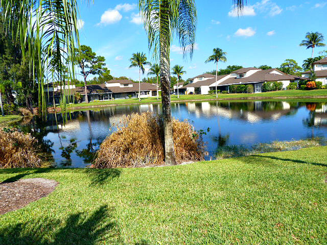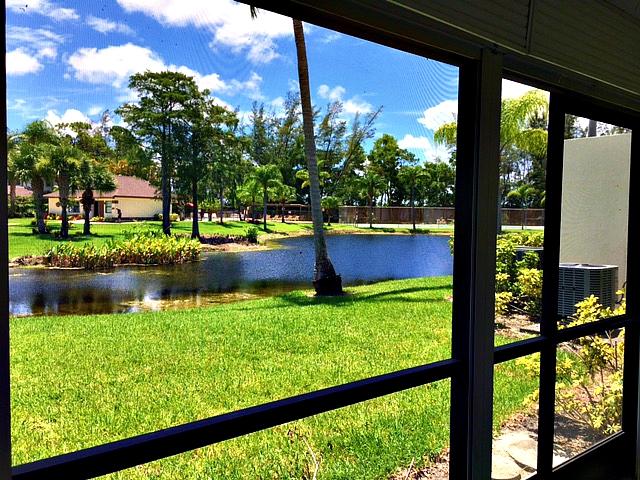 Desirable townhouse overlooking serene lake in gated community. This townhome has a very special location on the lake. Enjoy your morning coffee or evening sunsets from your oversized screened-in patio. The master bedroom is on the ground floor. Light and bright and airy, this home is looking for your finishing touches. Brand new air conditioner just installed. And don't forget your furry kids because Boca Ridge is pet friendly. Near places of worship. Don't miss this one!