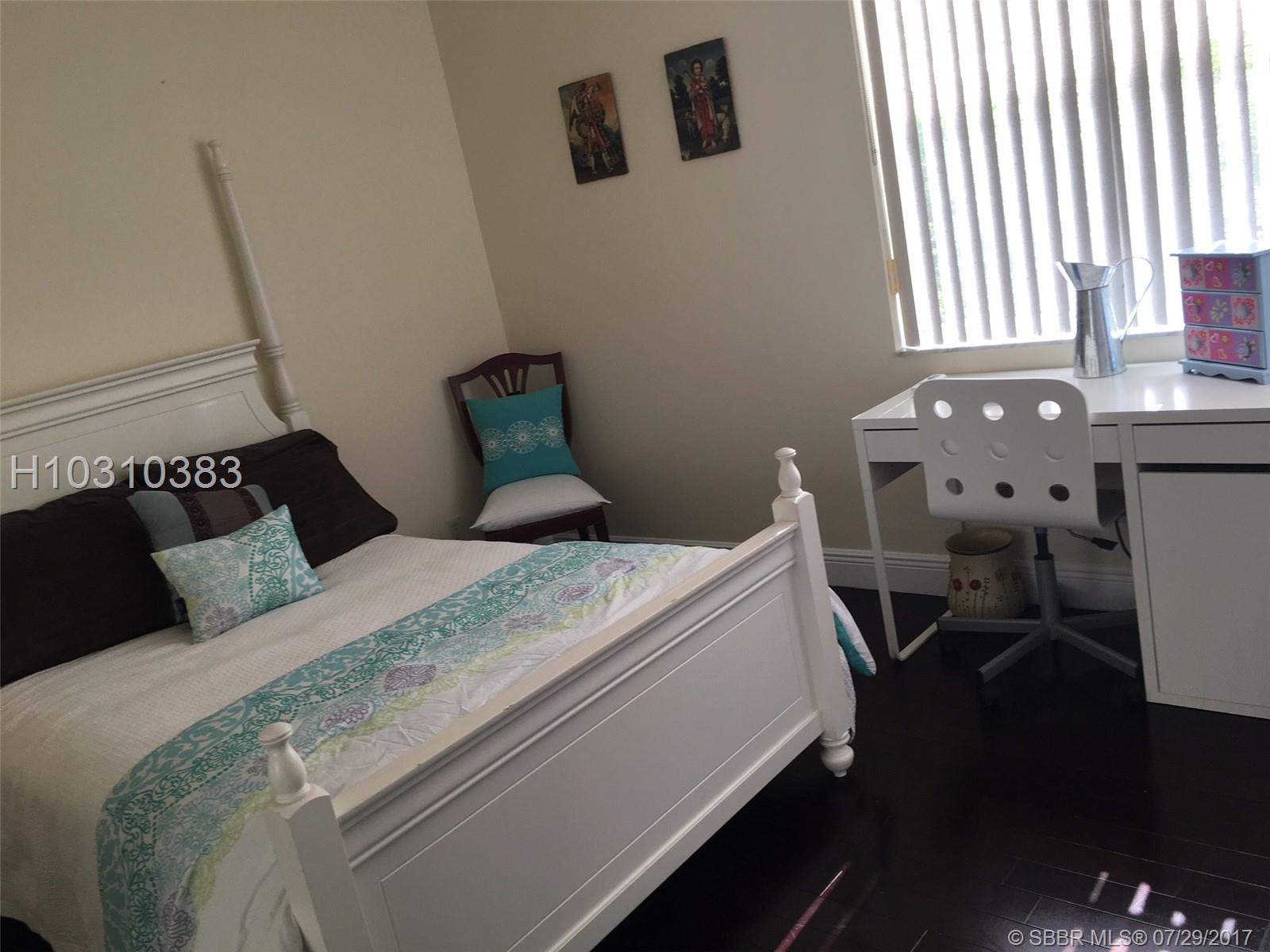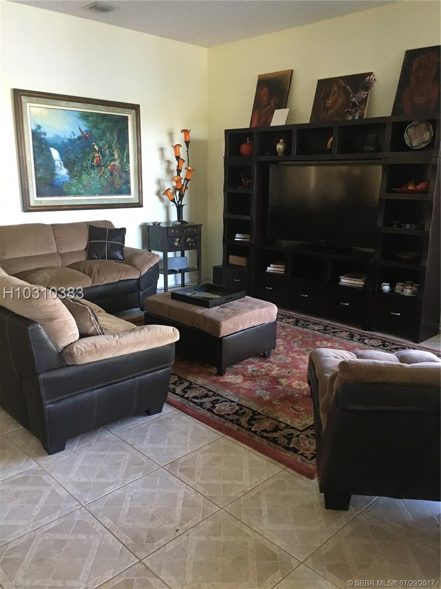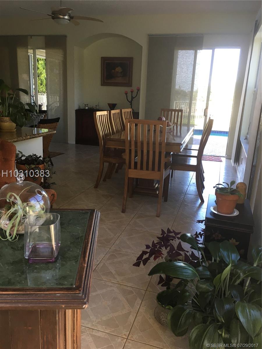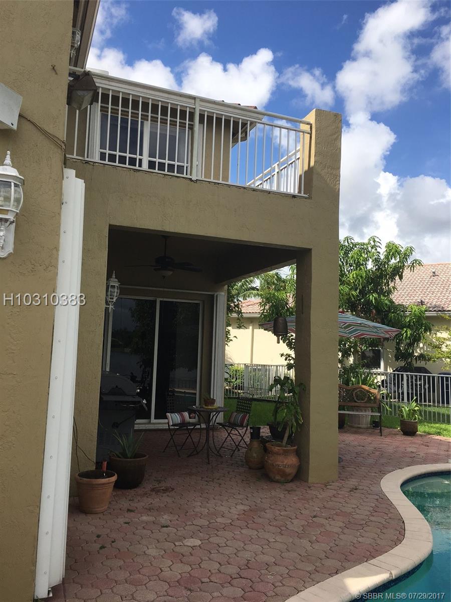 This Elegancia model Will NOT last!. Cul-de-sac, wide wraparound lake view, pool, covered patio PLUS additional patio with retractable awning. Large updated kitchen is the heart of this home and open spaces makes it perfect for entertaining or just relaxing; guest or in-laws bedroom and bathroom downstairs. Large and inviting master bedroom with sitting area and balcony with the view of the lake. Good size bedrooms. Accordion shutters, fruit trees. Close to restaurants, shopping, hospitals and major highways. Dogs may have a breed restriction as per Broward County. HOA includes common areas, community pool and gate security.