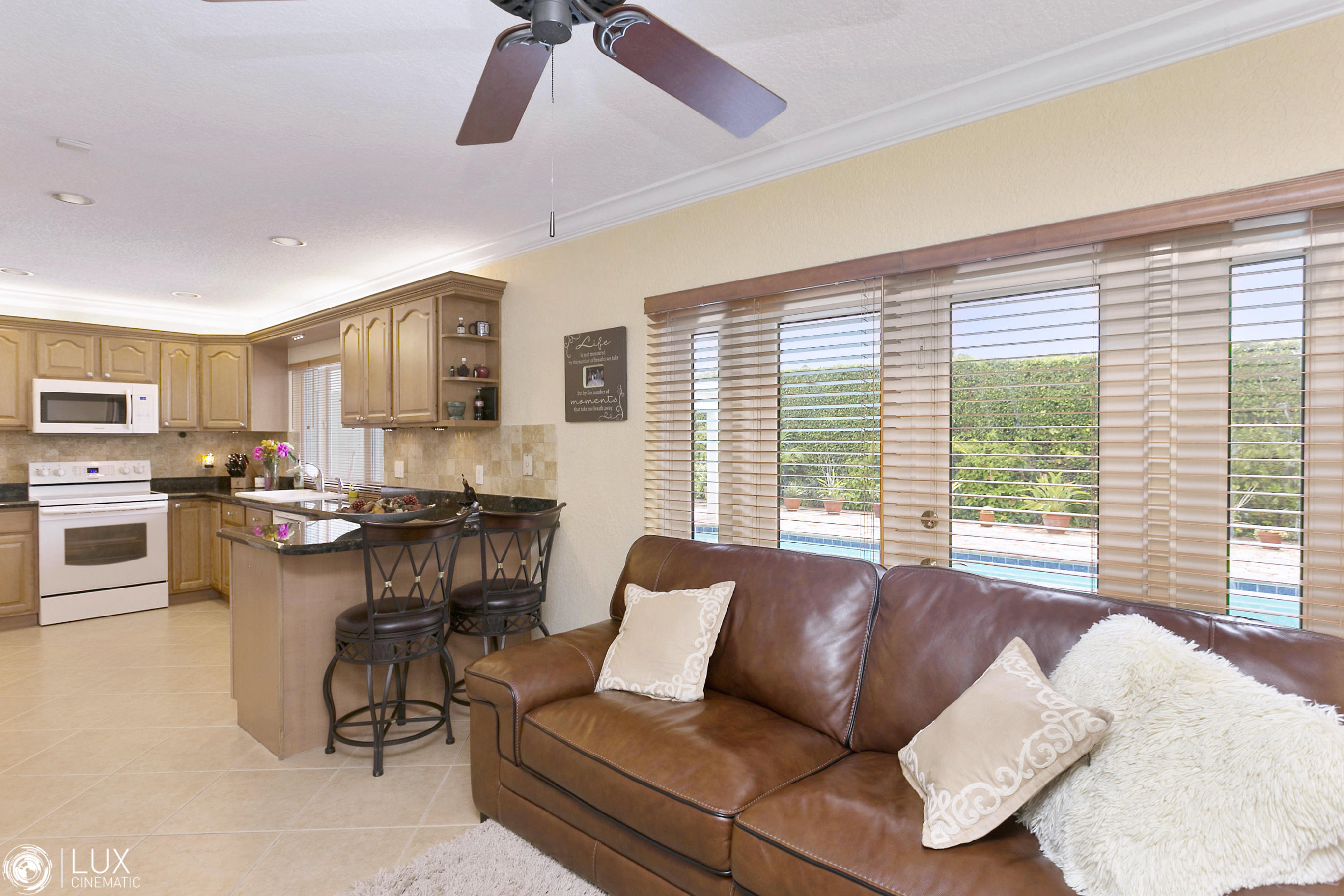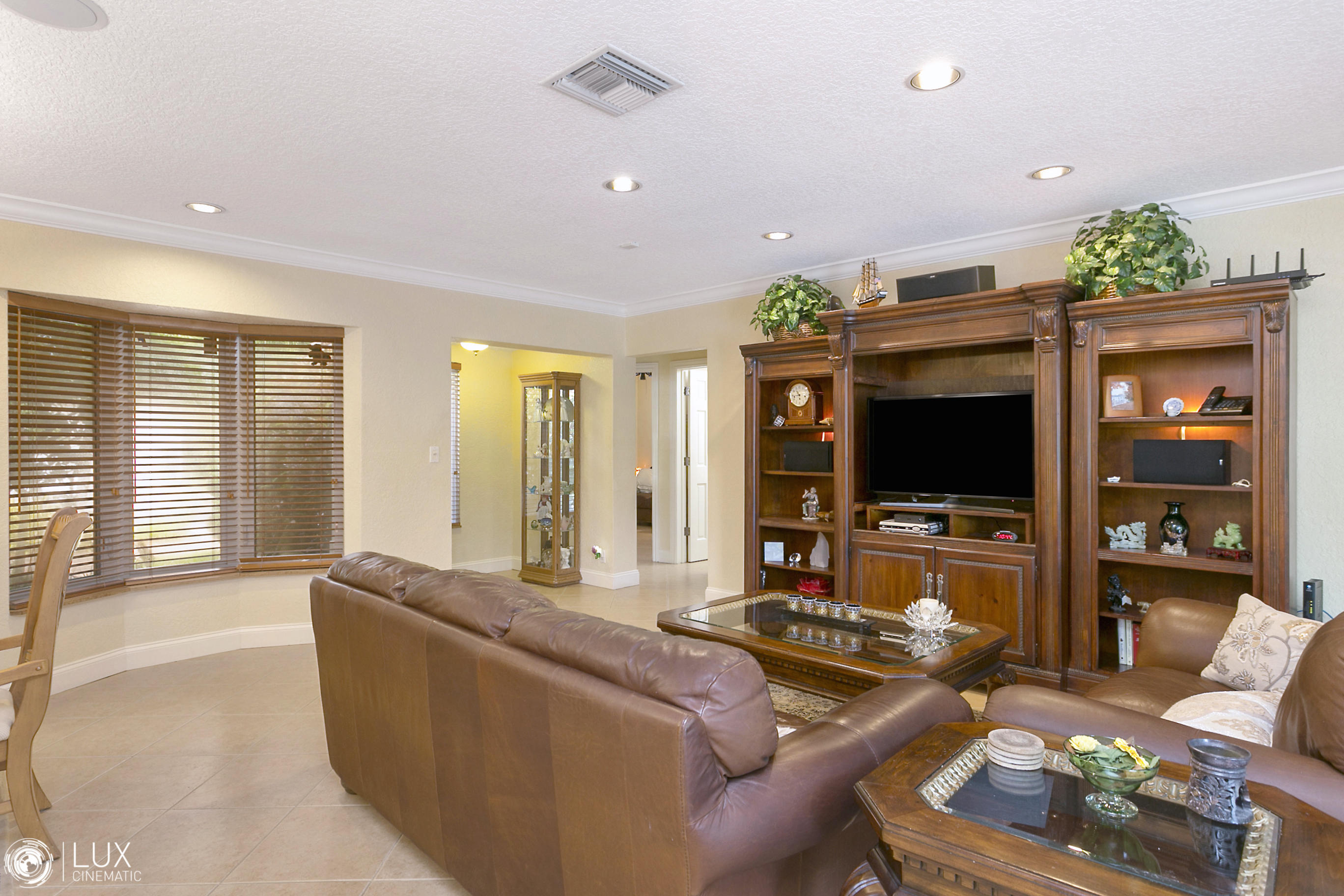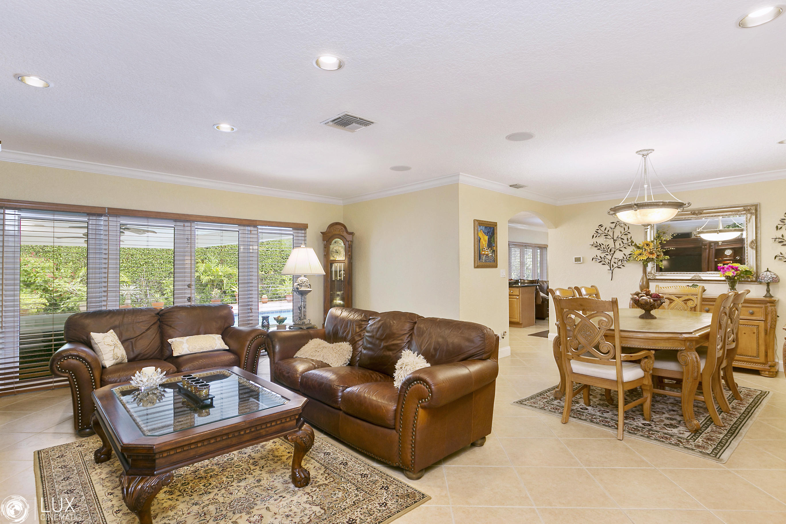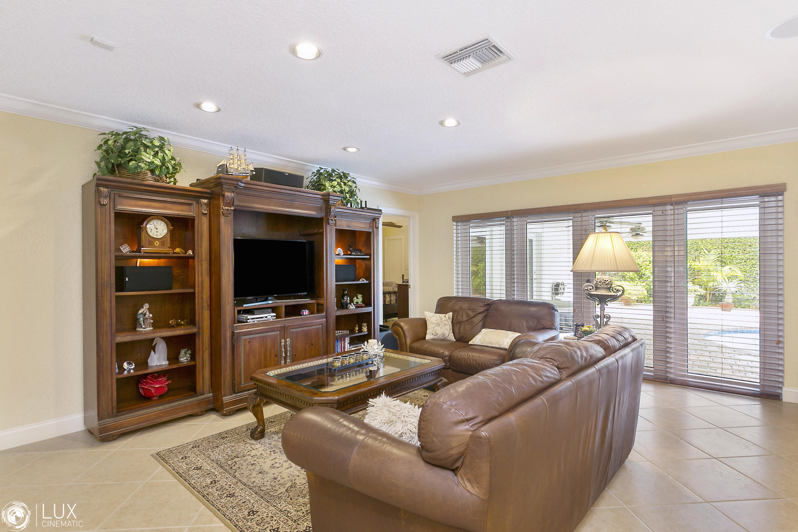 Immaculate Home. Tastefully updated with impact windows & impact french doors.Hurricane impact garage door. Ceramic tile thru out the entire house. Crown molding, high hats, knock down ceilings, updated kitchen with granite counter tops, breakfast bar, wood cabinets, newer appliances and pass thru window to pool snack bar, newer A/C and washer & dryer. Wired for surround sound inside & outside. Newer updated bath rooms. Roof was replaced in 2000. Over sized pool 32x16 w/ huge open patio and a covered patio 25x15. Private back yard with LED lighting. Great for entertaining. Circular drive and large driveway to accommodate 6-8 cars. Wood blinds. Extra room off of master bath. 13,500 surge generator w/ electrical adapter. This home has been well kept and maintained. It will be joy to show.