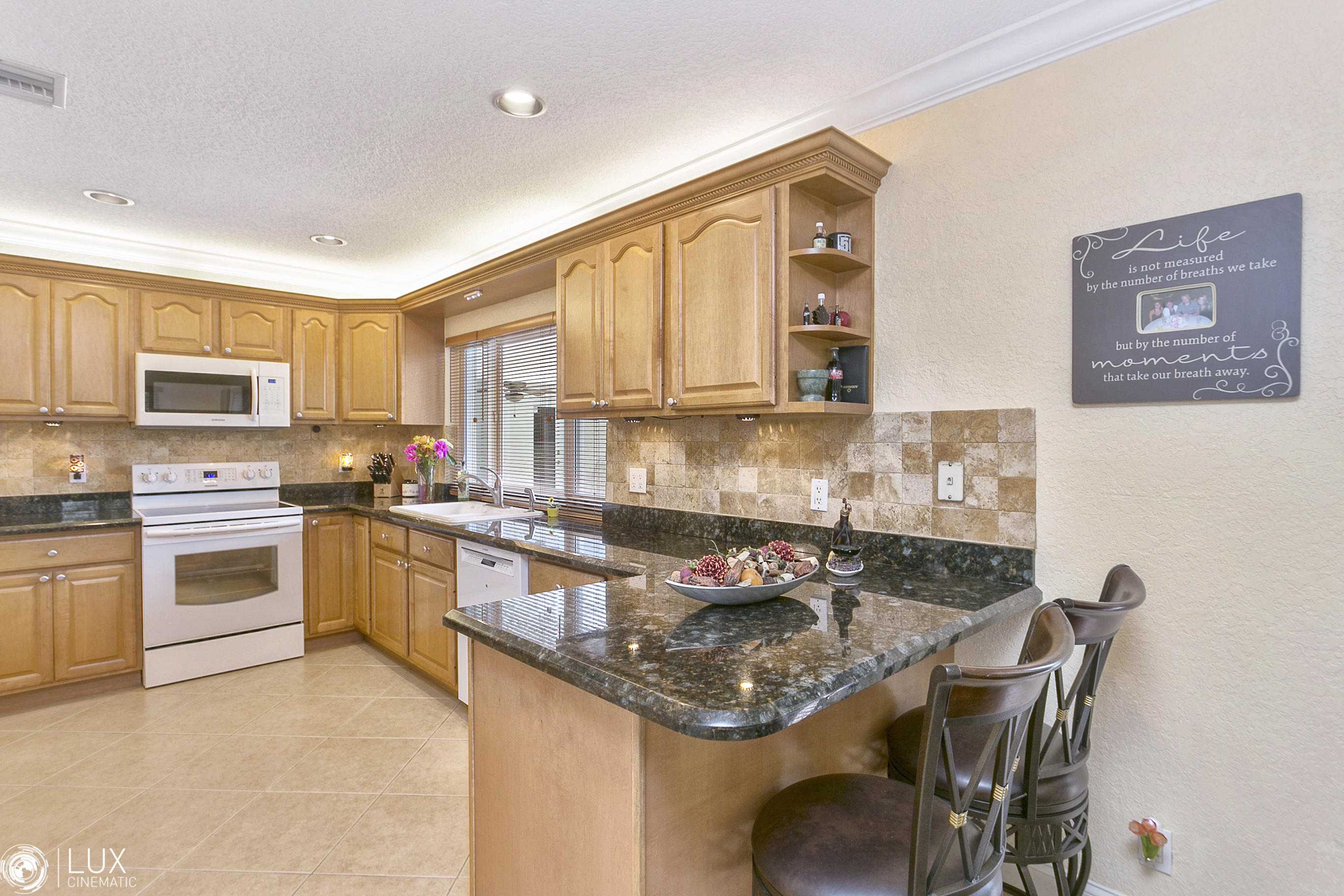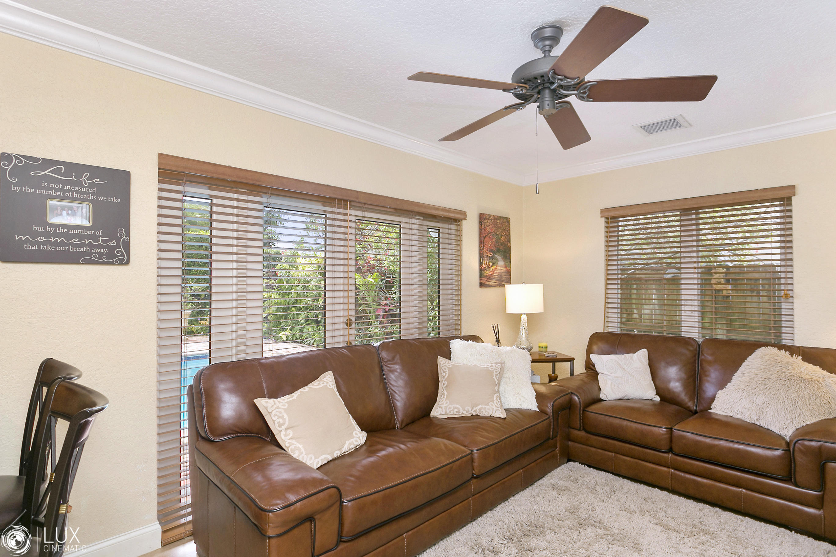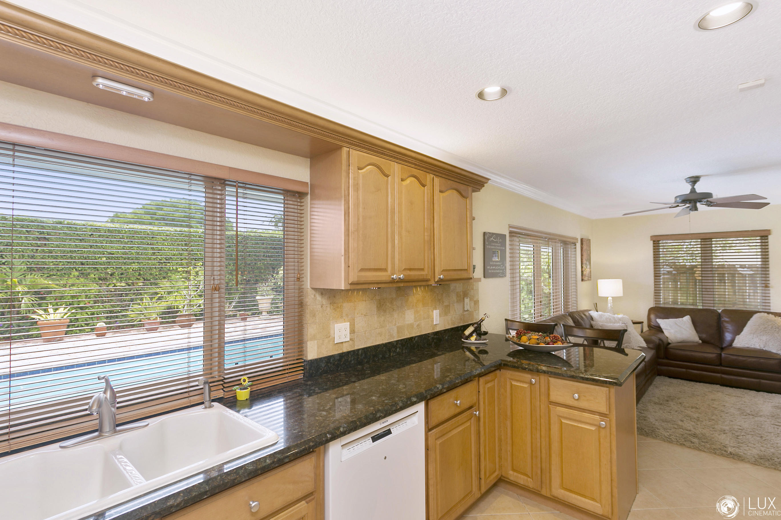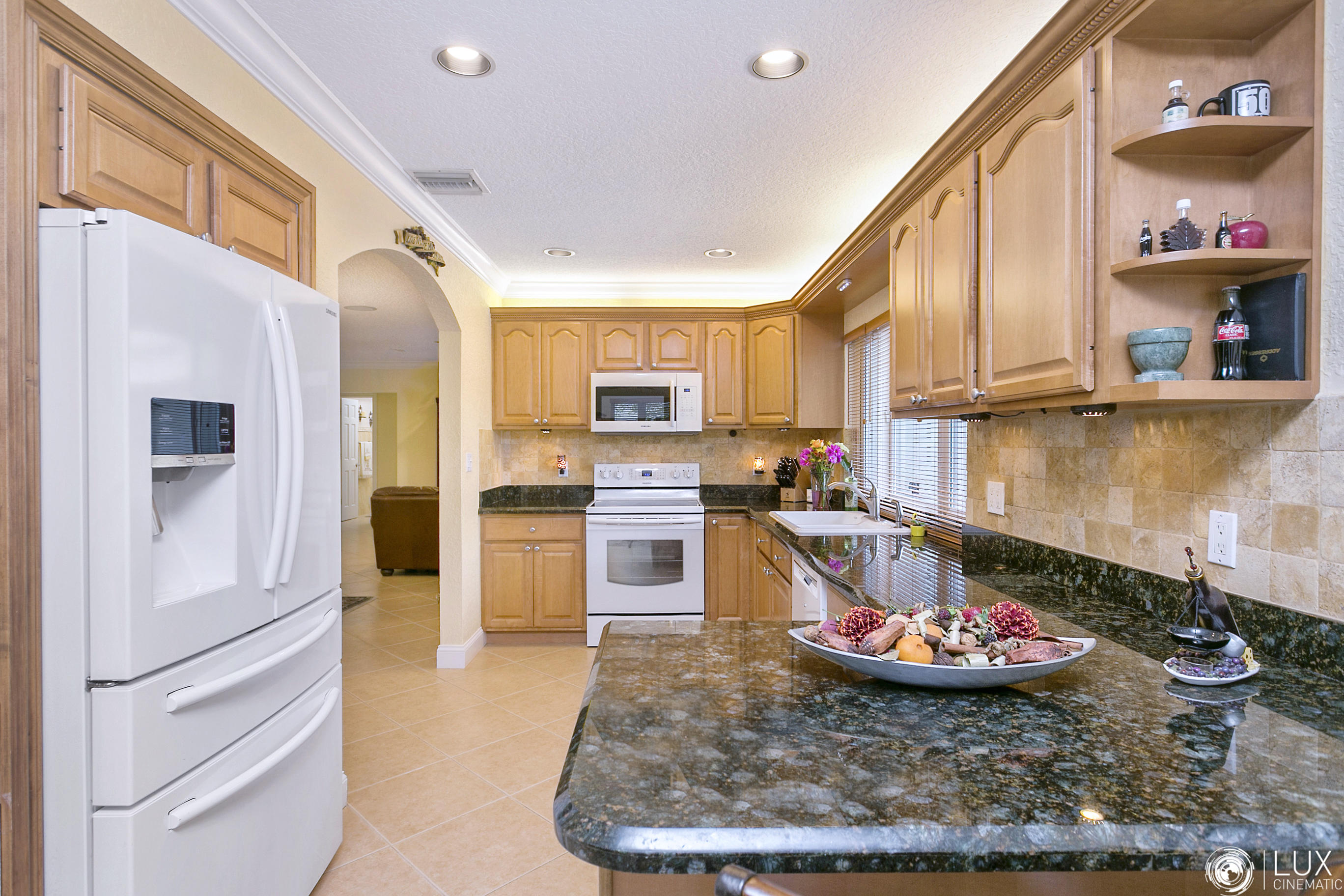 Immaculate Home. Tastefully updated with impact windows & impact french doors.Hurricane impact garage door. Ceramic tile thru out the entire house. Crown molding, high hats, knock down ceilings, updated kitchen with granite counter tops, breakfast bar, wood cabinets, newer appliances and pass thru window to pool snack bar, newer A/C and washer & dryer. Wired for surround sound inside & outside. Newer updated bath rooms. Roof was replaced in 2000. Over sized pool 32x16 w/ huge open patio and a covered patio 25x15. Private back yard with LED lighting. Great for entertaining. Circular drive and large driveway to accommodate 6-8 cars. Wood blinds. Extra room off of master bath. 13,500 surge generator w/ electrical adapter. This home has been well kept and maintained. It will be joy to show.