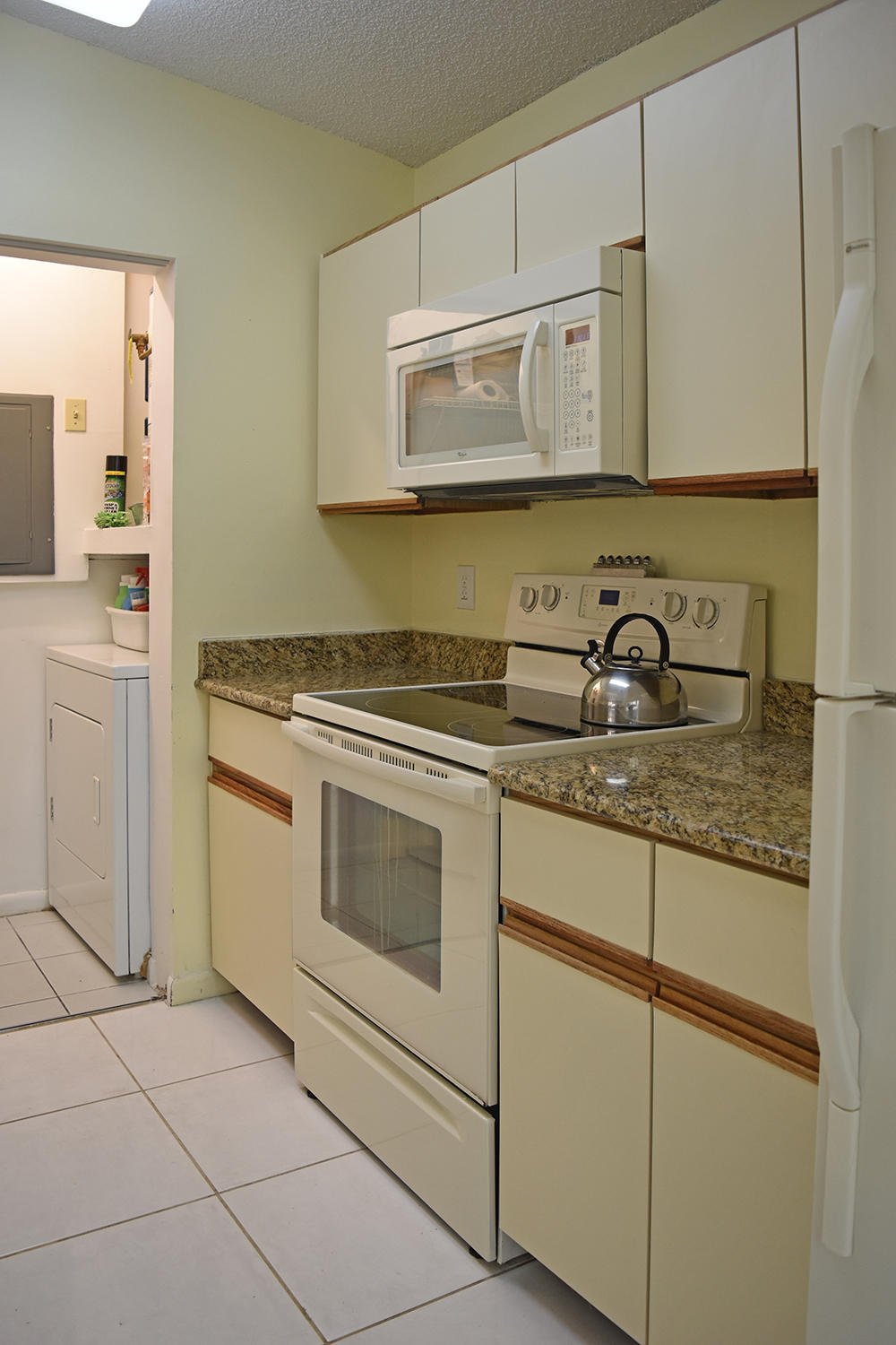 Lovely dual-master suite town home in a boutique, all-age, dog friendly community. Newer tile on 1st fl, freshly carpeted stairs & upper BR. Freshly painted. Refinished cabinets, granite counters newly installed 7/14/17 in kitch., newer A/C (2014). Private, fenced patio and enclosed courtyard. GREAT central Boca Raton location, walking to houses of worship, shopping, services and amenities, easy access to FLA TPK & I-95. Move right in and relax in the community pool. Being sold AS-IS. Furnishings in the property will be removed before closing. Home Warranty for A/C, water heater, plus more included. BRING OFFERS!