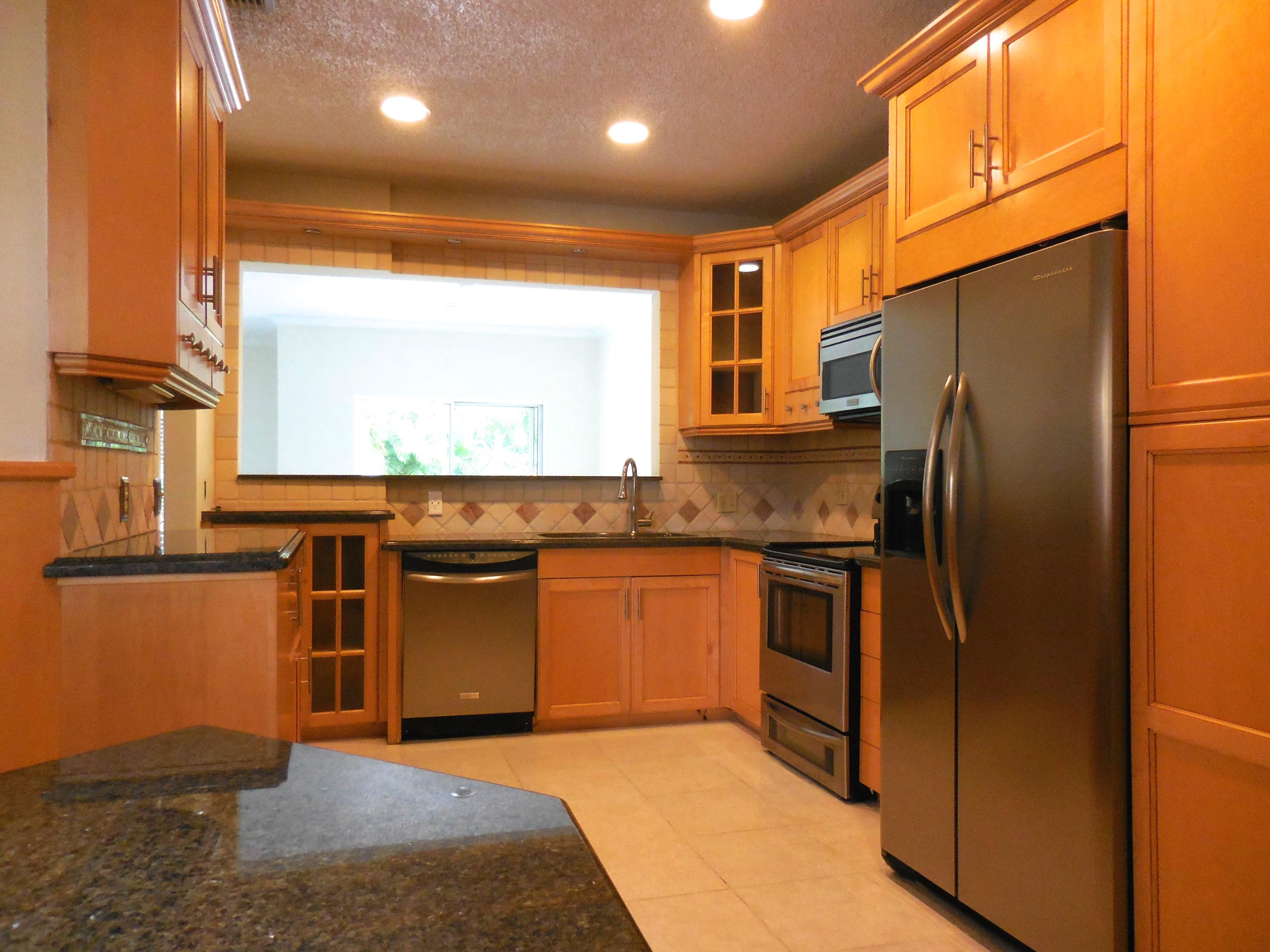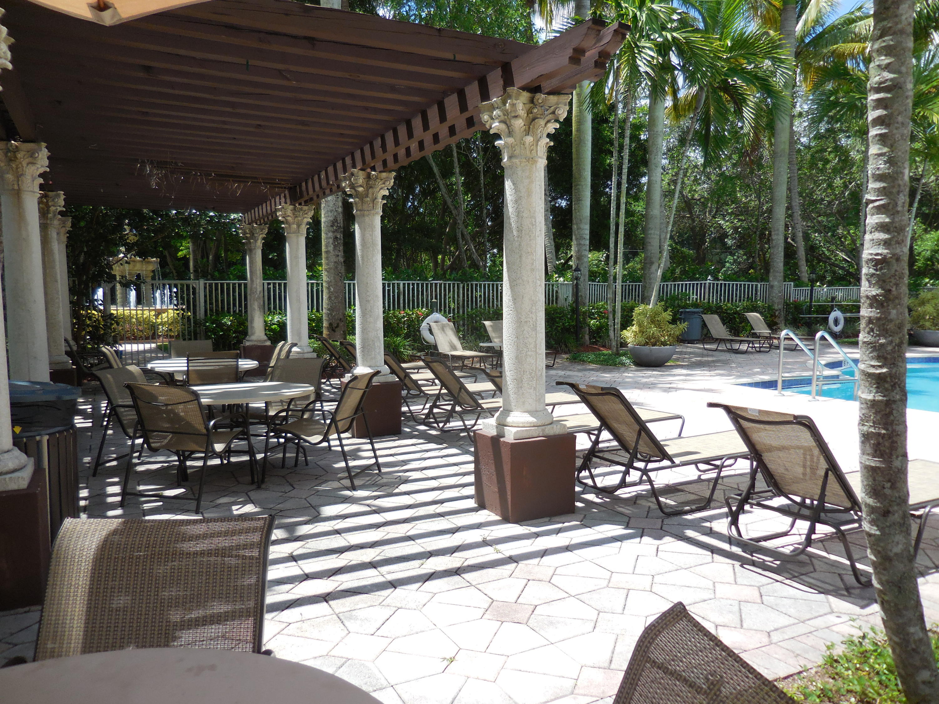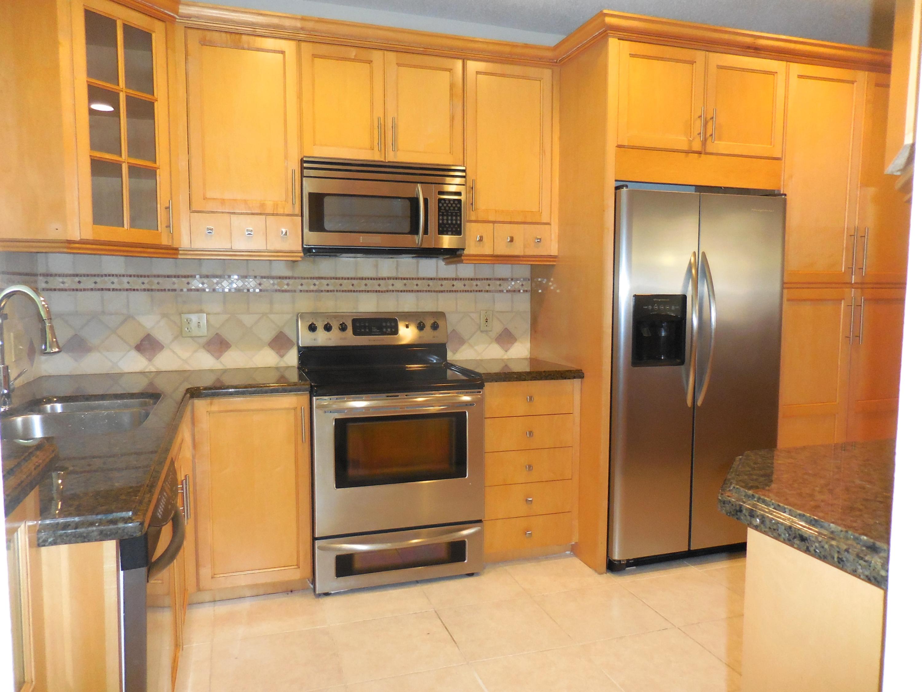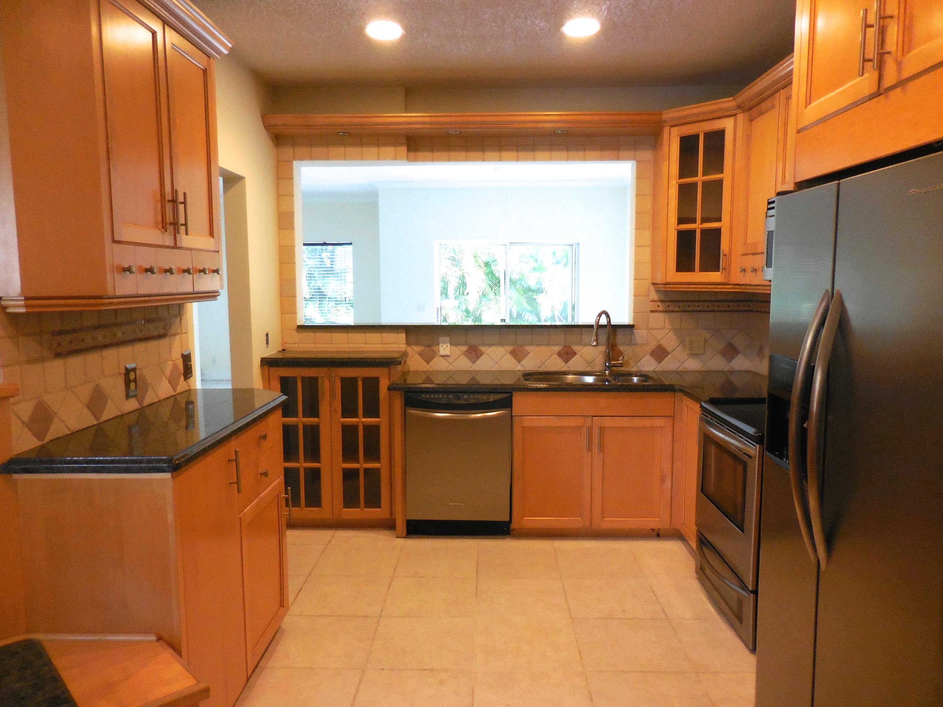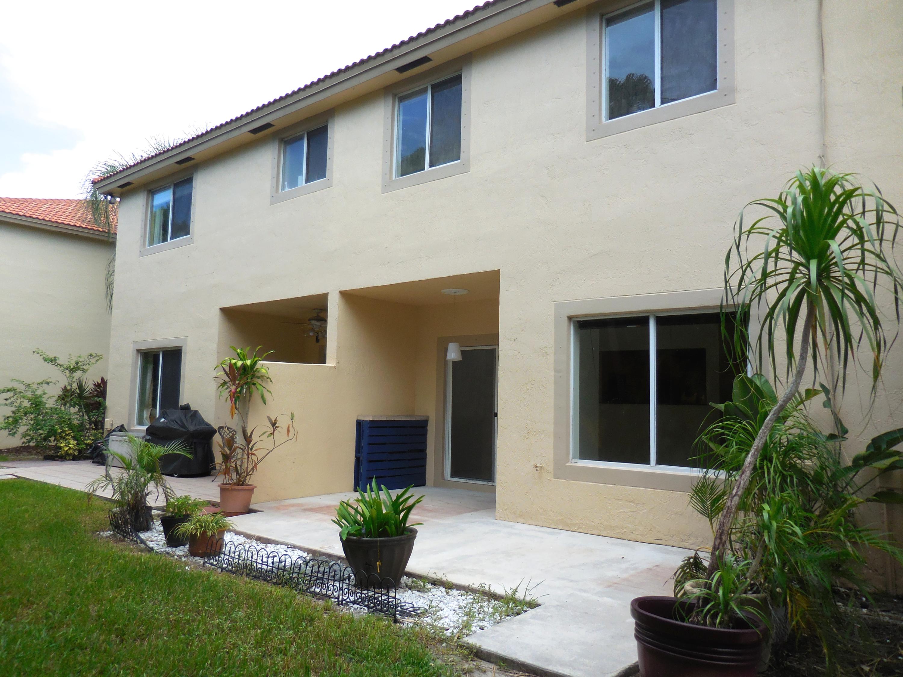 Updated, 2 story town home with private hedge view in manned gated complex of Mizner Pointe in west Boca Raton. Granite kitchen with updated cabinets, stainless steel appliances and large eat in area perfect for casual dining. Large tile on diagonal with inlays at foyer entry. SHUTTERS! Private hedge view in the backyard. Wood stairs, landing and master bedroom. Closet systems in all bedrooms. Master has large counter space, luxury soaking tub, separate and updated shower, walk in closet. High ceilings throughout. Amazing clubhouse with pool, tot lot, tennis, fitness room, clubhouse kitchen, card room. PET OK but no pit bulls or aggressive breeds. Association fee includes cable, lawn care, security system monitoring, manned entry, clubhouse facilities.