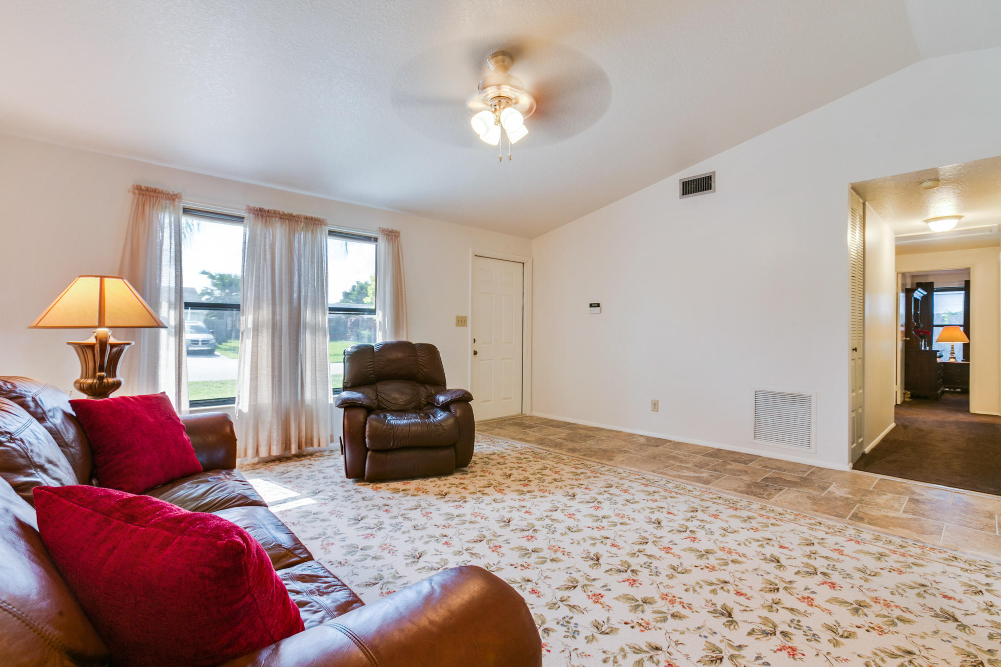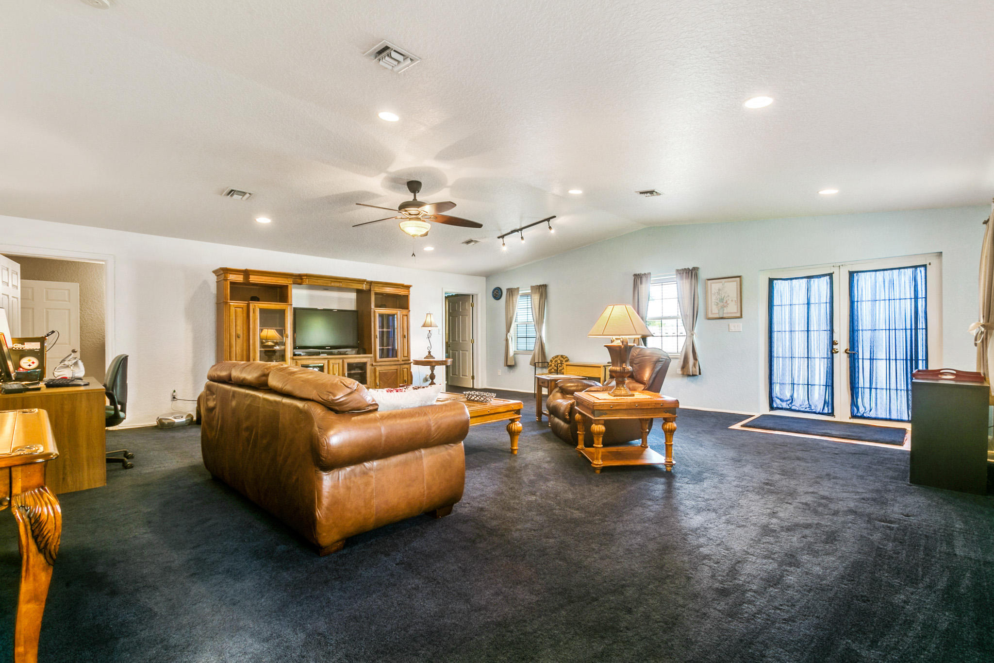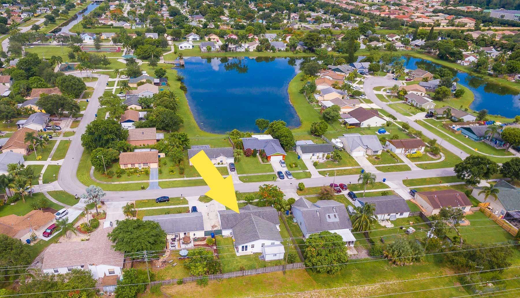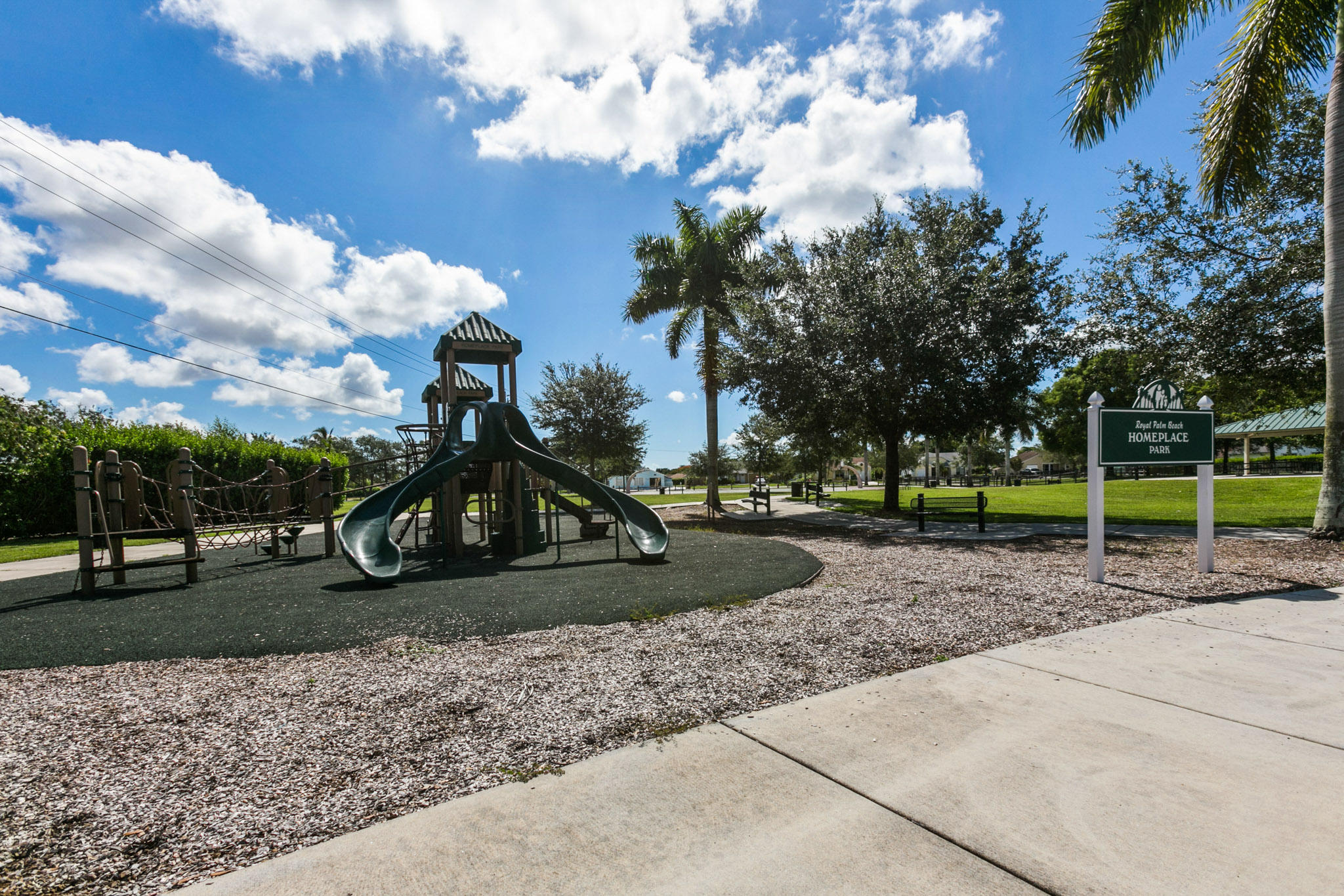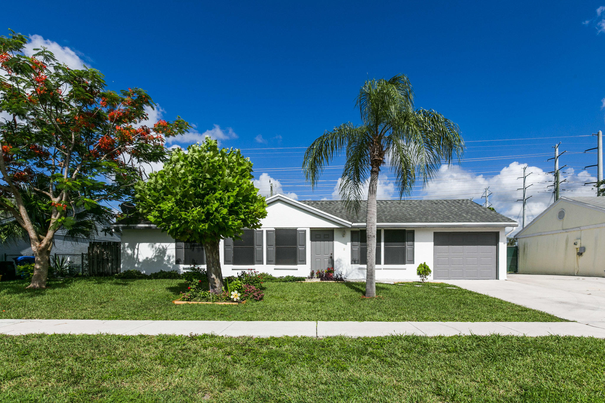 You'll love this charming ranch home with a spectacular Great Room with vaulted knockdown ceilings, recessed lighting, tons of windows, french doors that lead out to a fenced yard with new sod. For tinkering around in the yard, it also has a large 10' x 16' workshop shed. This 3 bedroom, 2 bathroom home with 1 car garage will give you 2,328 sq ft of generous space to move about. New garage door with hurricane brace installed. Just painted exterior and added new window shutters. Inside just painted and knockdown ceilings. Situated in a quiet and friendly neighborhood with no through traffic. Two blocks away is a recreational park that includes playground, basketball, dock for fishing and dog park. Two miles from from Village of Royal Palm Beach Commons Park & public golf.