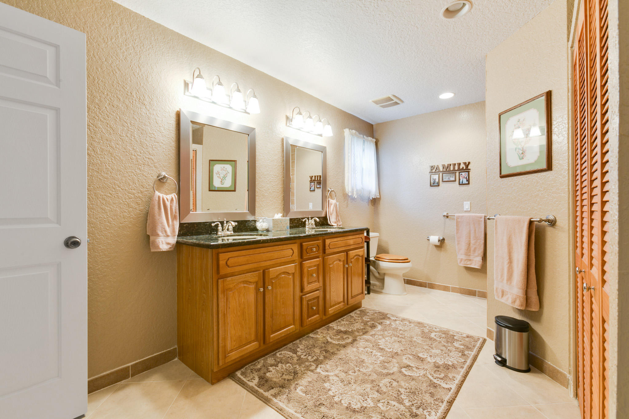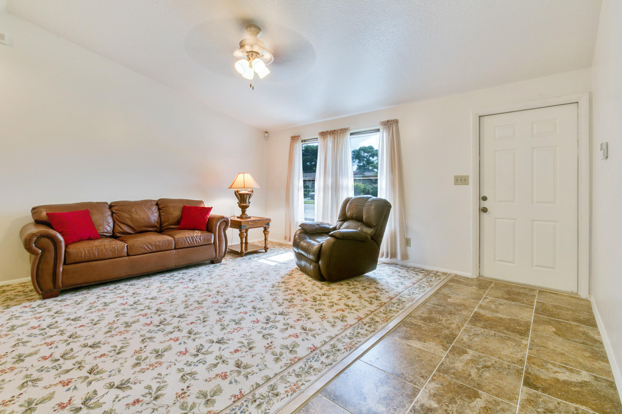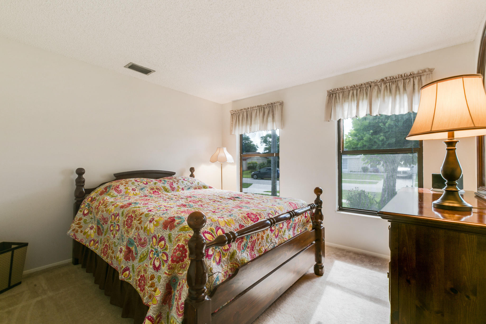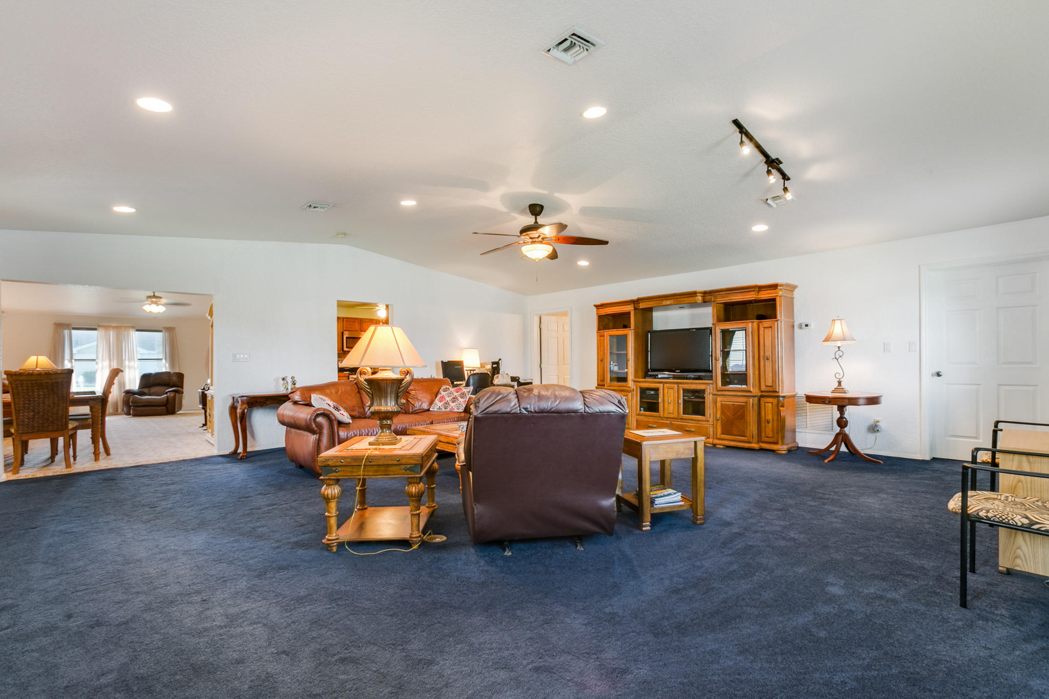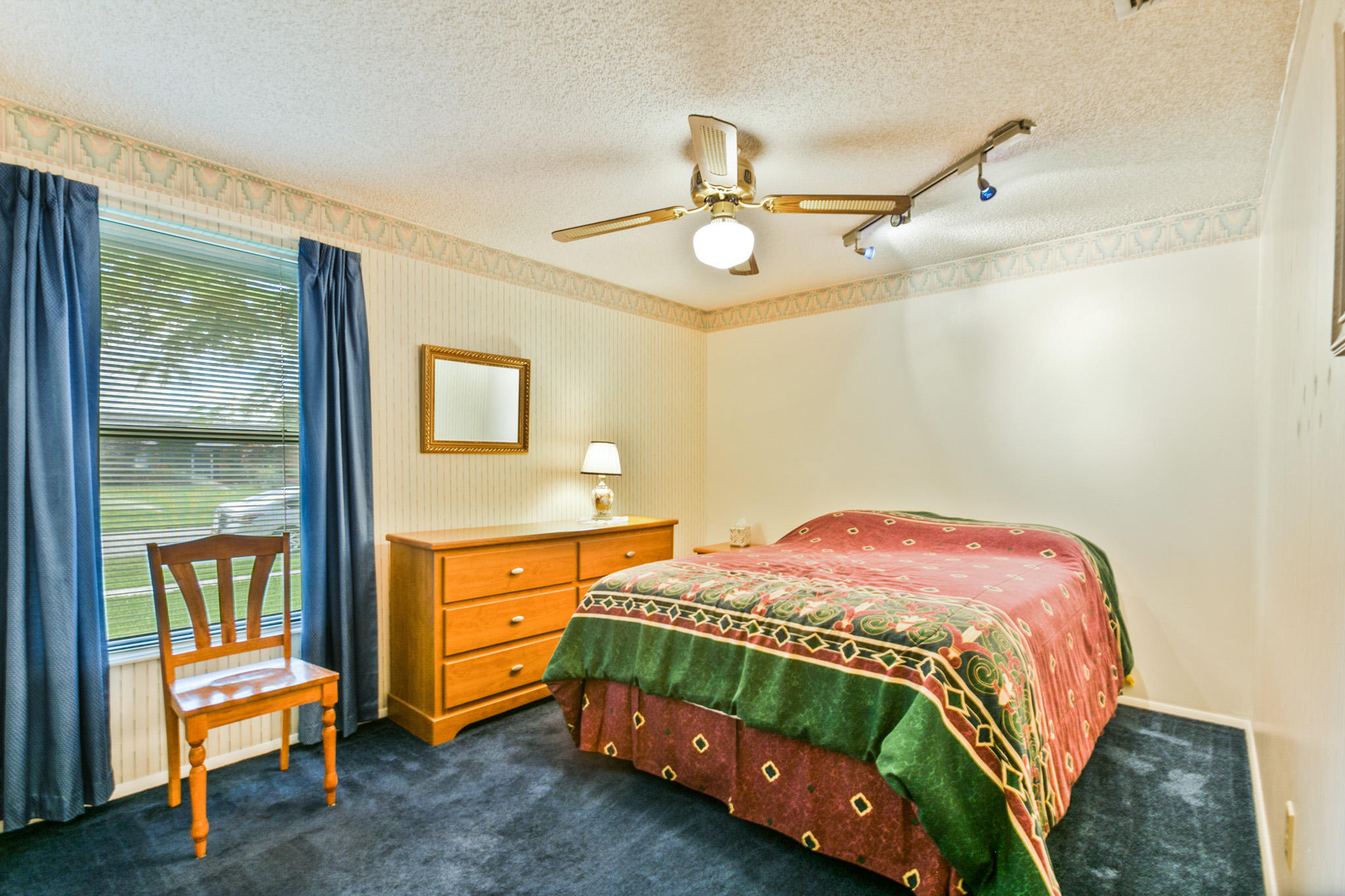 You'll love this charming ranch home with a spectacular Great Room with vaulted knockdown ceilings, recessed lighting, tons of windows, french doors that lead out to a fenced yard with new sod. For tinkering around in the yard, it also has a large 10' x 16' workshop shed. This 3 bedroom, 2 bathroom home with 1 car garage will give you 2,328 sq ft of generous space to move about. New garage door with hurricane brace installed. Just painted exterior and added new window shutters. Inside just painted and knockdown ceilings. Situated in a quiet and friendly neighborhood with no through traffic. Two blocks away is a recreational park that includes playground, basketball, dock for fishing and dog park. Two miles from from Village of Royal Palm Beach Commons Park & public golf.