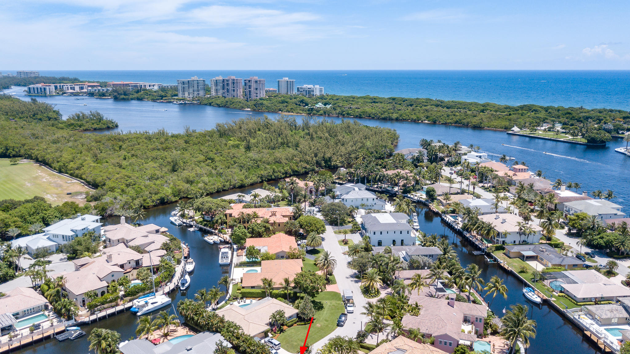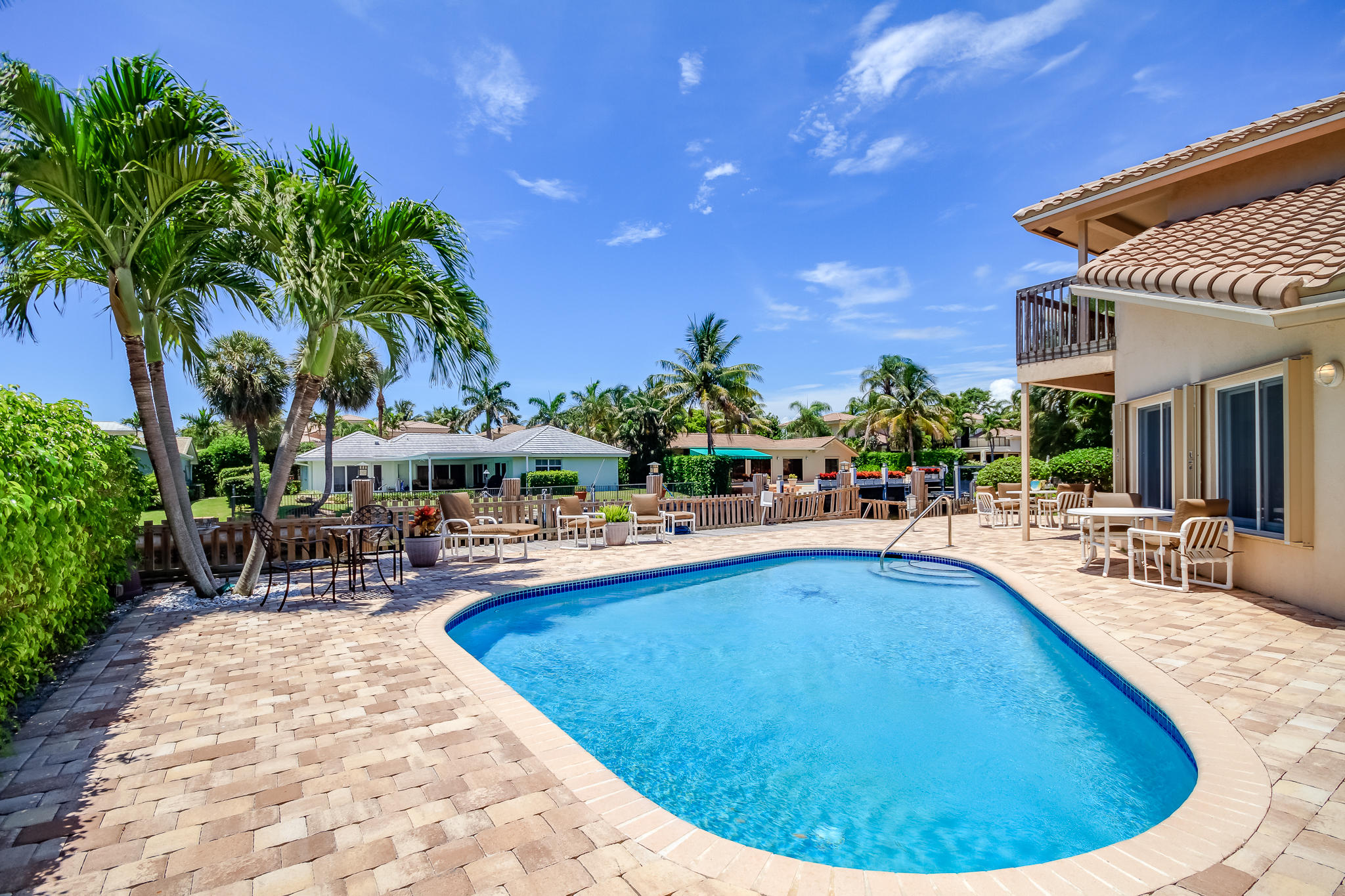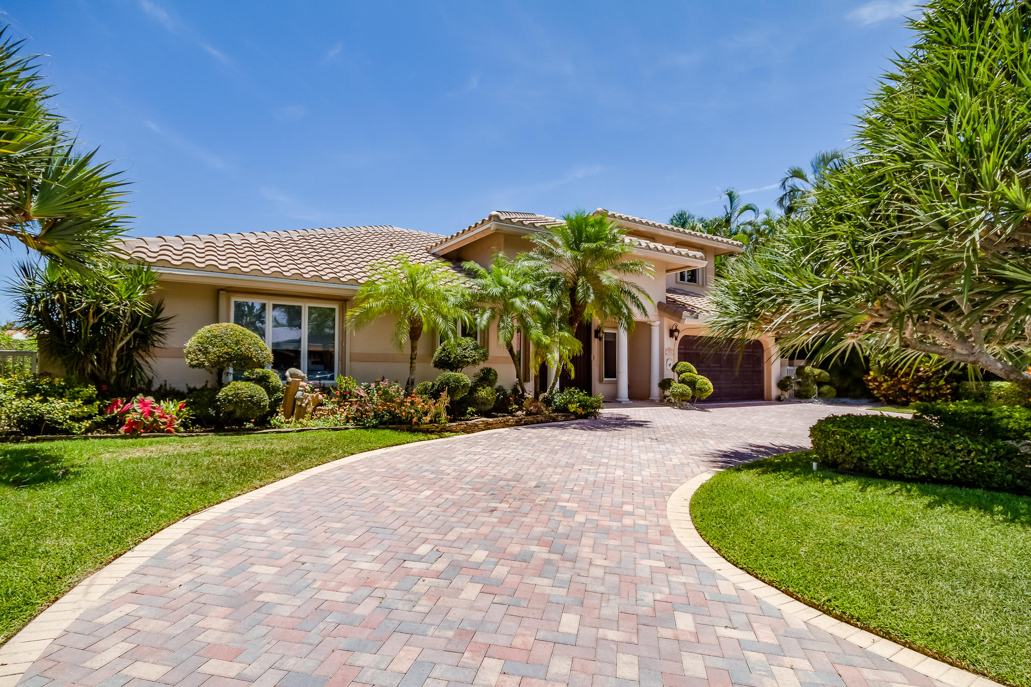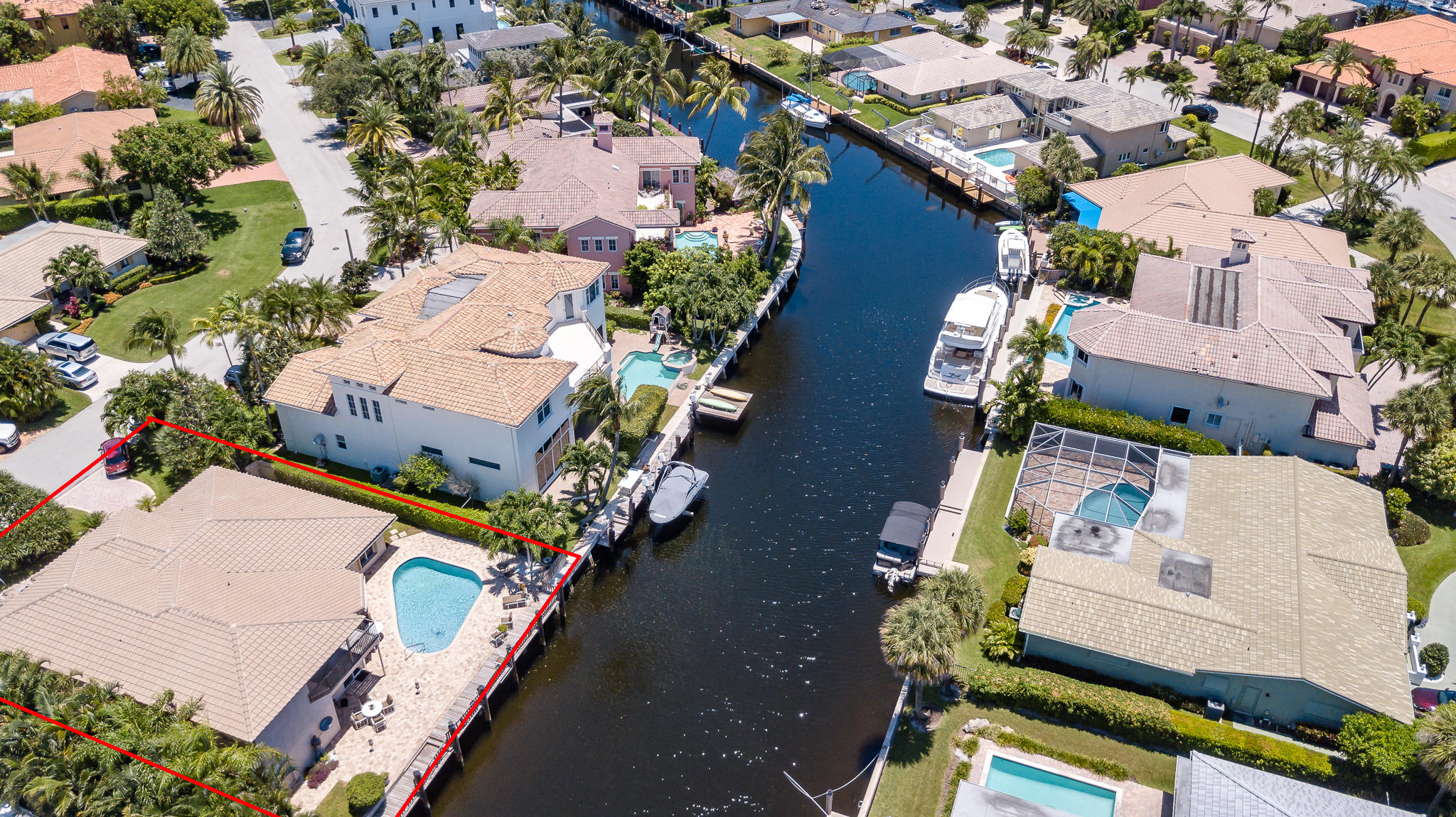 85' of waterfront in Golden Harbour in east Boca Raton. Just under 4000 liv sqft under air, this 4 bedroom, 3.5 bath home has a circular pavered driveway, 2 car garage and 2017 roof. Pavered backyard pool area, 3 ZONE AC units, Accordion Shutters. 2 split bedrooms downstairs including the master bedroom with sitting area, and 2 huge bedrooms in the upstairs addition. Plus separate office area with full bath. Easy walk to Mizner Park for shopping, iPIC movies, restaurants. Lake Wyman park 2 blocks away.
