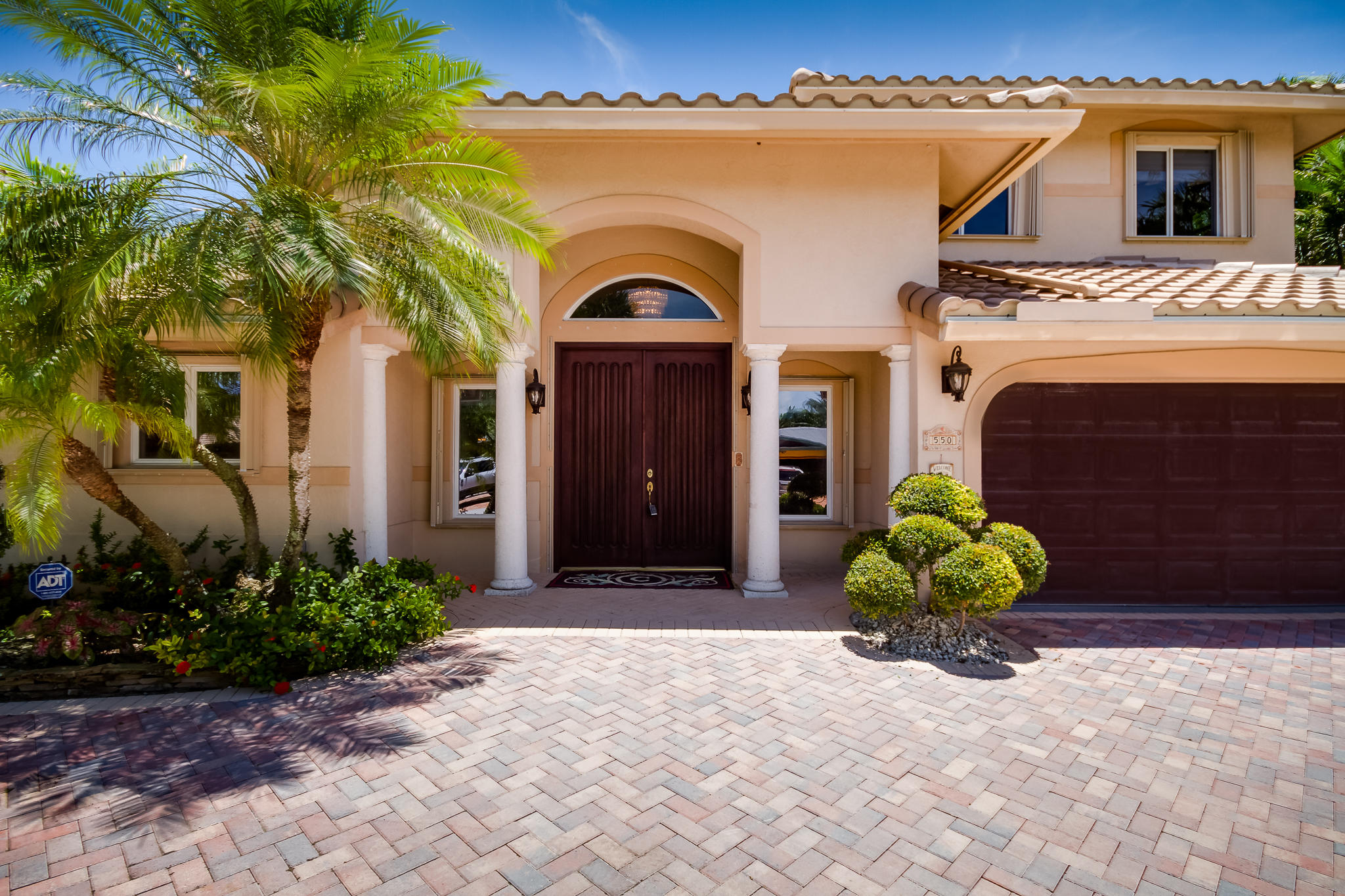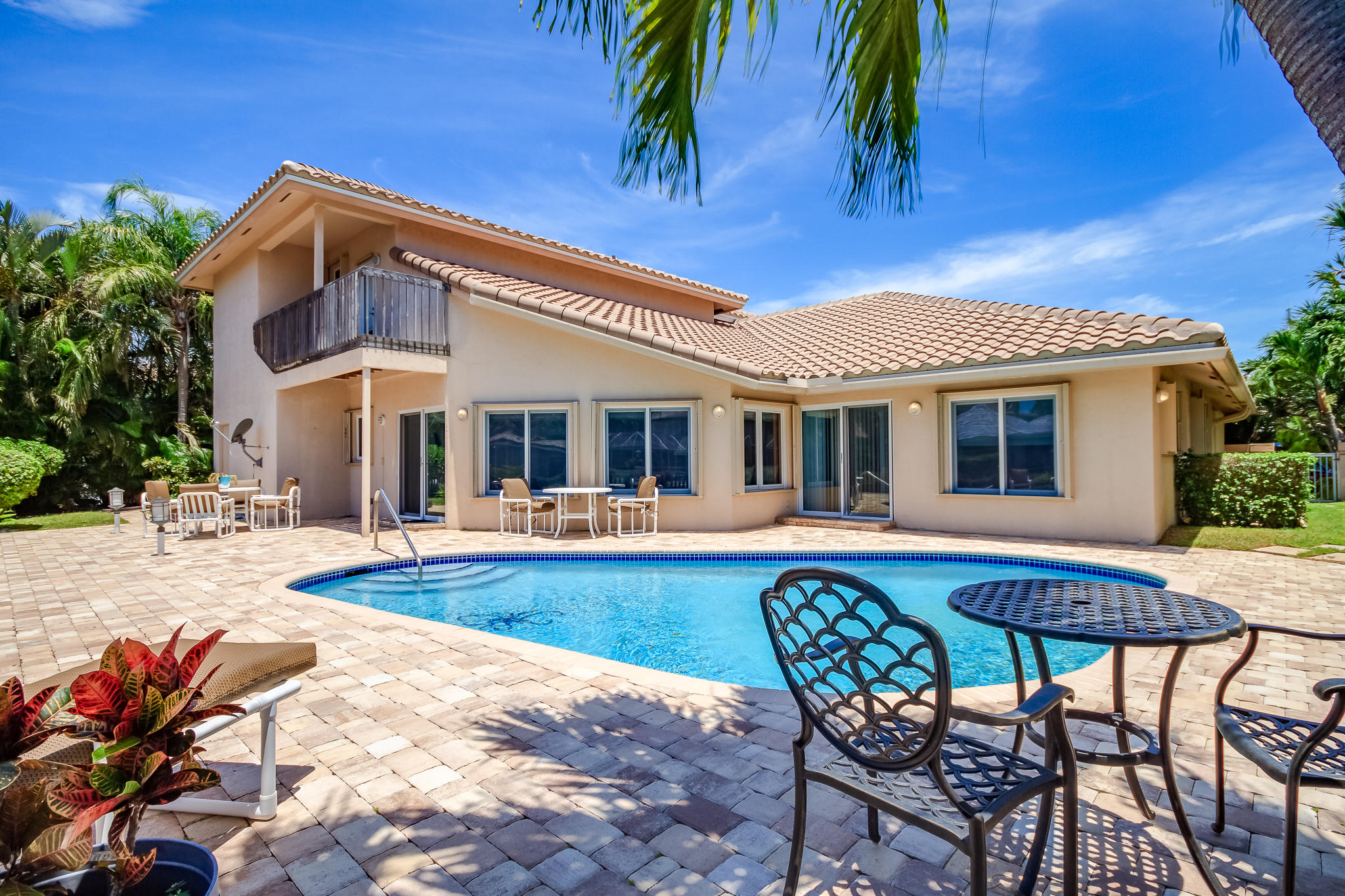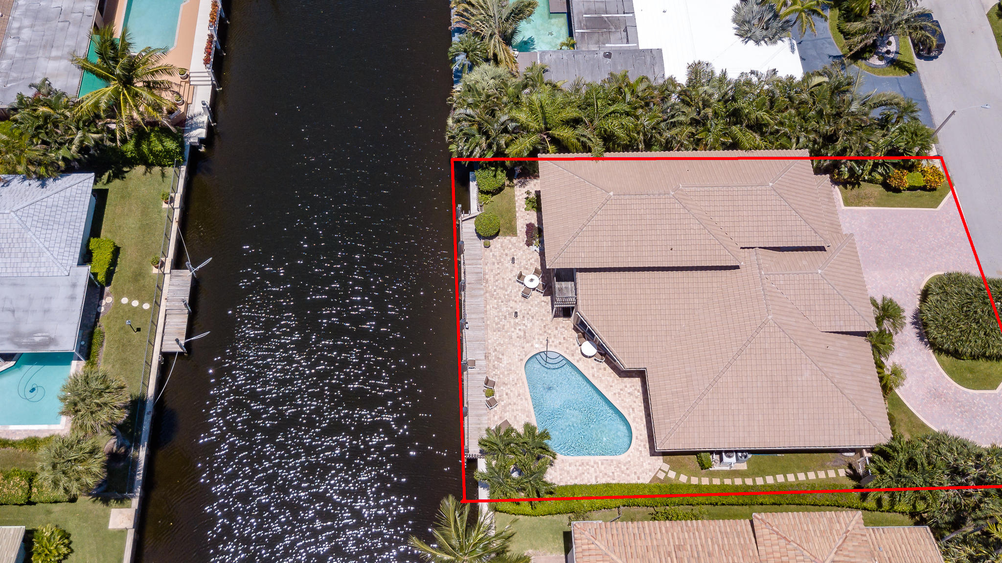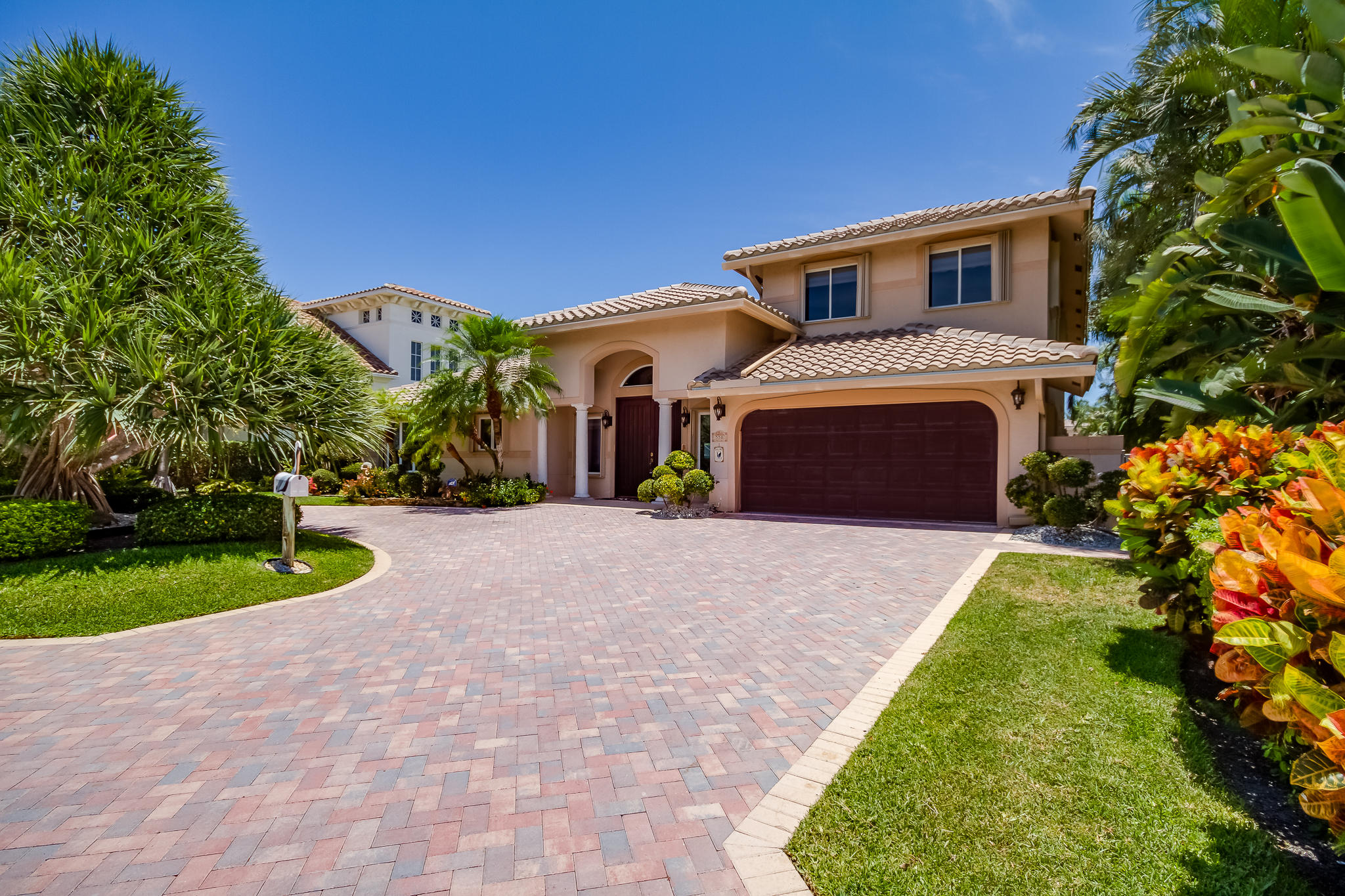 85' of waterfront in Golden Harbour in east Boca Raton. Just under 4000 liv sqft under air, this 4 bedroom, 3.5 bath home has a circular pavered driveway, 2 car garage and 2017 roof. Pavered backyard pool area, 3 ZONE AC units, Accordion Shutters. 2 split bedrooms downstairs including the master bedroom with sitting area, and 2 huge bedrooms in the upstairs addition. Plus separate office area with full bath. Easy walk to Mizner Park for shopping, iPIC movies, restaurants. Lake Wyman park 2 blocks away.