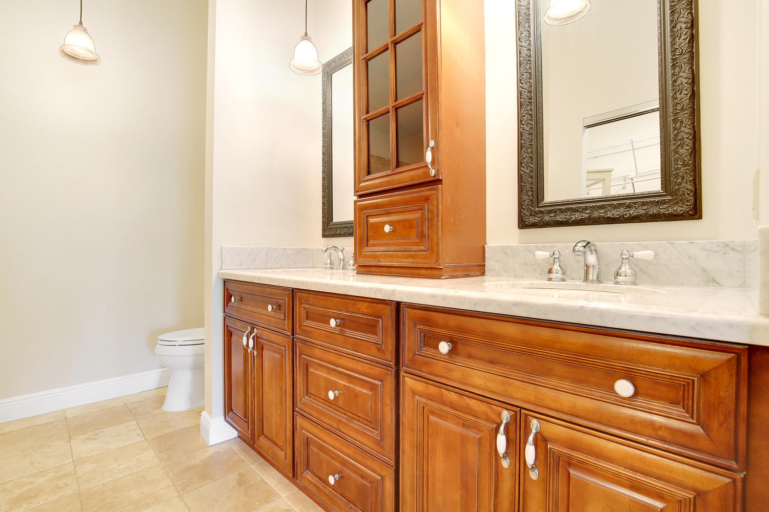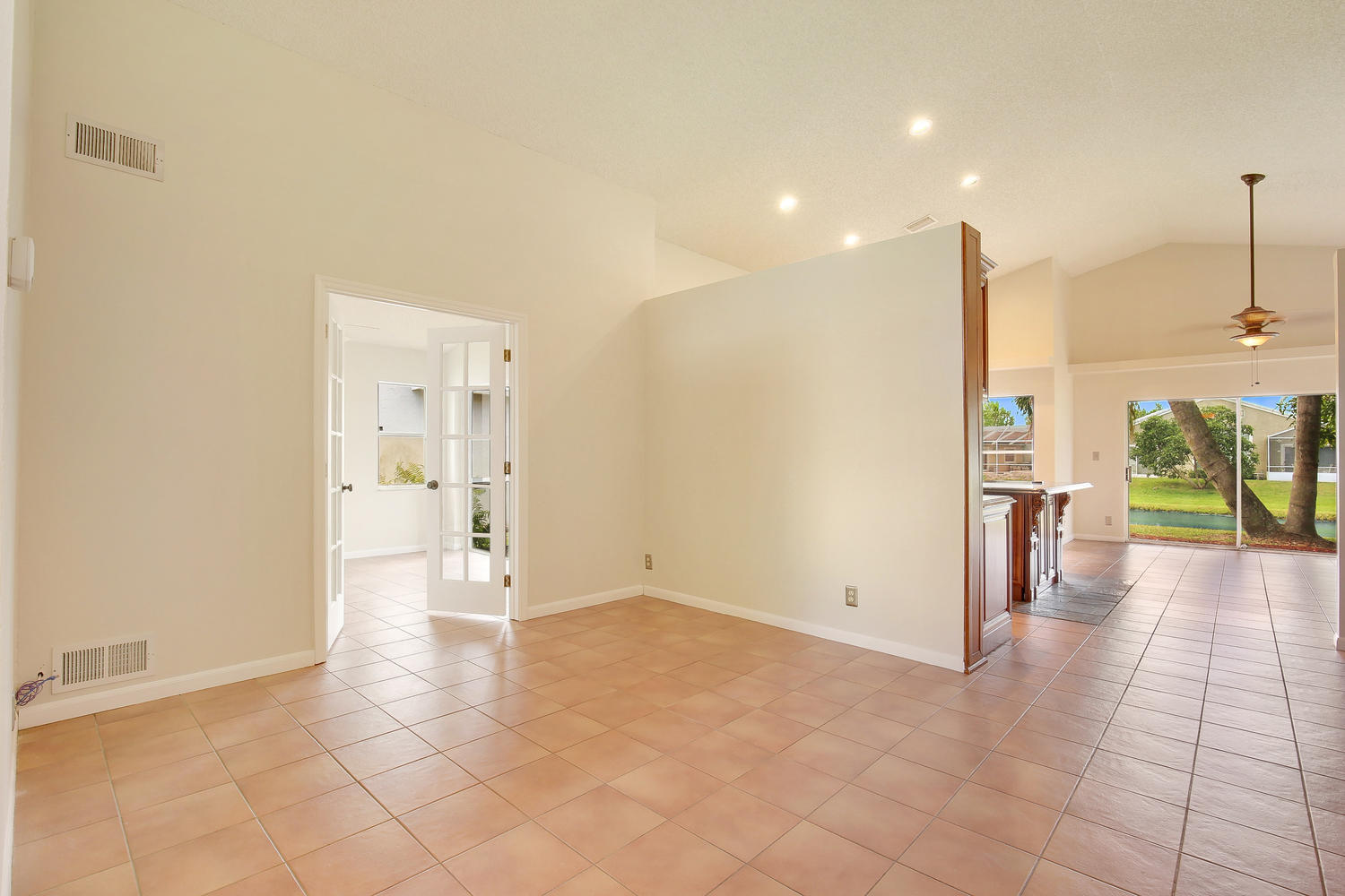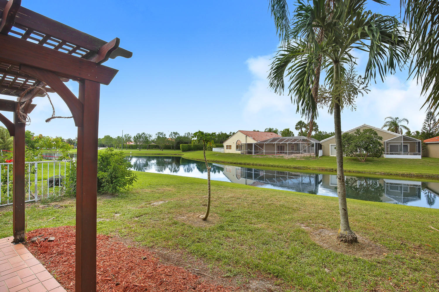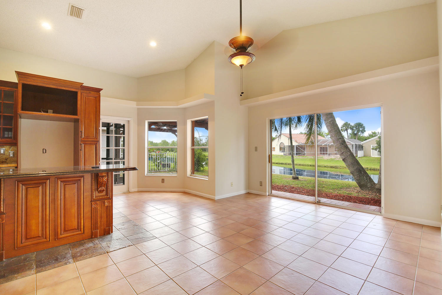 Lakefront home in desirable Boca Landings offers sparkling water views,3 bedrooms + DEN. Designer kitchen w/wood cabinets, granite counters & full backsplash, center island, wine rack,wine cooler,stainless steel appliances, spice drawer, pantry w/pullouts & more! Adjacent dining room has matching butler pantry/hutch. Tile floors in all living areas. Master suite w/vaulted ceiling, walk-in closet, updated bathroom w/marble floor & shower, wood vanity w/dual sinks & peaceful lake view. Updated 2nd bath w/wood vanity, granite top, travertine marble shower & floor. Split bedroom plan. Interior laundry room. Screened porch & open patio for enjoying the lake views.Hurricane shutters.LOW HOA fee includes community pool, tennis, play area, basic cable. Close to shopping, schools & parks.
