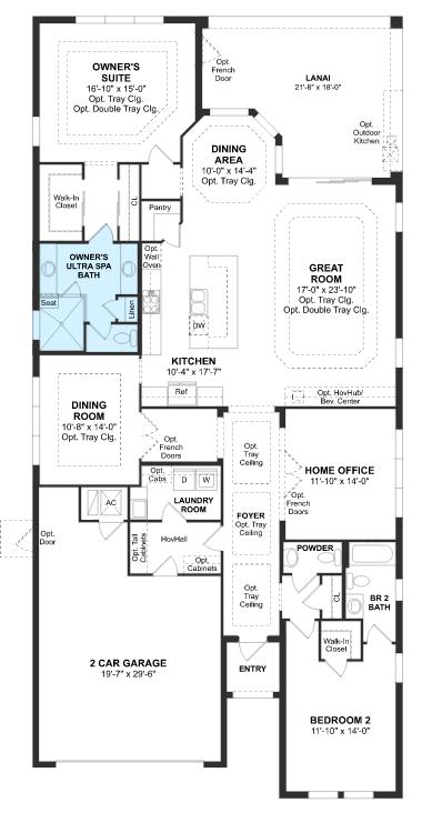 Come Visit K Hovnanian's Four Seasons at Parkland for the Ultimate Active Lifestyle Community. WATERFRONT!! Quick Move in!! This Everett. Open and airy floorplan with home office. HovHall ideal for storage and staying organized. Formal dining room for holiday dinners and entertaining guests. Open great room with triple slider to large lanai to enjoy outdoors. Functional kitchen with large center island and pantryElegant owner's suite with tray ceiling, dual closets and spa bath. Builder's Upgrade: Porcelain Wood Look Tile, Quartz Counters in Kitchen