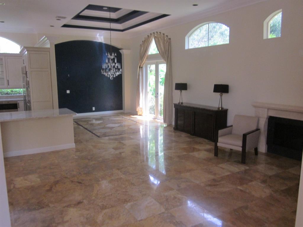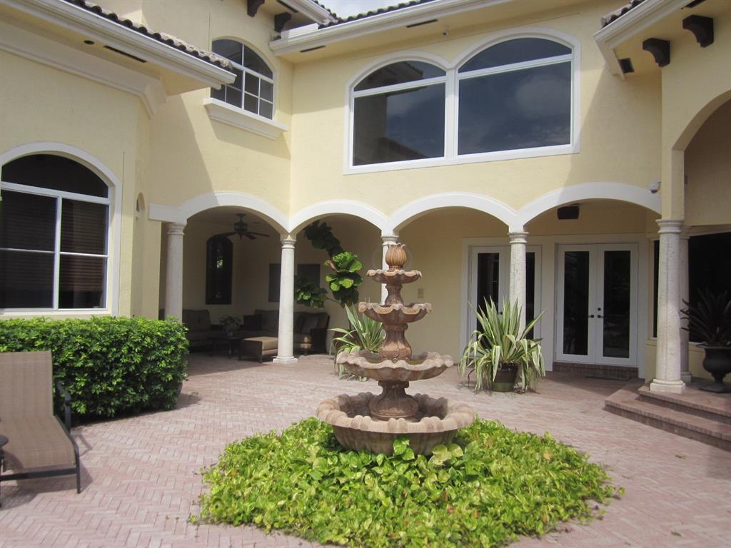 Elegant two story courtyard lakefront home with separate guest house. Situated on an over-sized lot, the main house features four bedrooms plus a loft and guest house. The guest house is configured with one bedroom and a home office. Extensive upgrades throughout include marble floors, impact windows, newer kitchen with top-of-the-line stainless steel appliances, including a Wolf gas range, granite counter tops and a four zone AC unit. The residence is flooded with natural light as well as stunning views