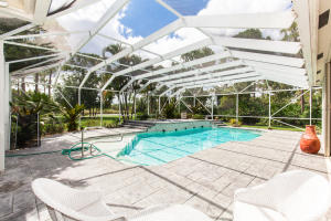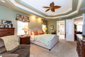 A 4br 3 bth pool home with a 3 car garage for under $600,000 in this gated community with 24 hour guard and low HOA fees. Very private 1.2 acre lot with golf & water views. Screened & heated pool large covered porch and summer kitchen , perfect for entertaining. Master bedroom with tray ceilings and crown moldings. Master bathroom has double vanities, glass enclosed shower. Skylights bring in lots of natural light. Office or 4th bedroom has vaulted ceilings and chair rail moldings. Circular stamped concrete driveway leading to a large 3 car garage.