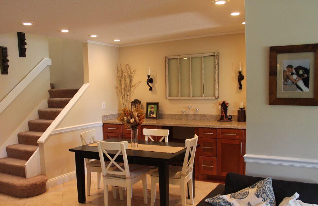 Beautifullly updated 2 story townhome on the lake. Spacious and comfortable. Sit in the screened patio and watch the sunsets over this Lakeview home. High ceilings in all bedrooms gives a bright an airy feeling all through this home. Walk to pool, playground and tennis. Extra long driveway that fits 2 cars. Plenty of guest parking. No through traffic and close to side gate so you can walk to shops. Waher and dryer does not convey.Lease OK first year. Pet Friendly.