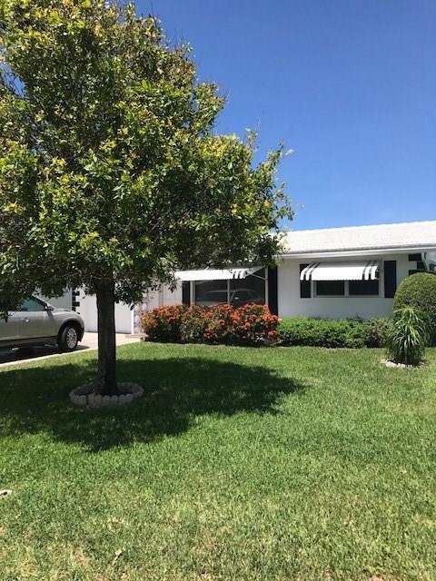 SWEET HOME!Updates throughout include newer kitchen cabinets, counters & 3 door fridge-crown molding & ceramic tile throughout-wood beams in Fla room ceiling. tiled shower w/ glass seamless shower doors. 2 full bathrooms, newer windows & storm shutters. Flat roof & main flat-tiled roof are approx 5 yrs old. Paver patios plus paver driveway will hold 4 cars. Leisureville maintenance covers water, all lawn service, FREE GOLF, free bus to shops, 2 Clubhouses w/ HTD pools & activities.