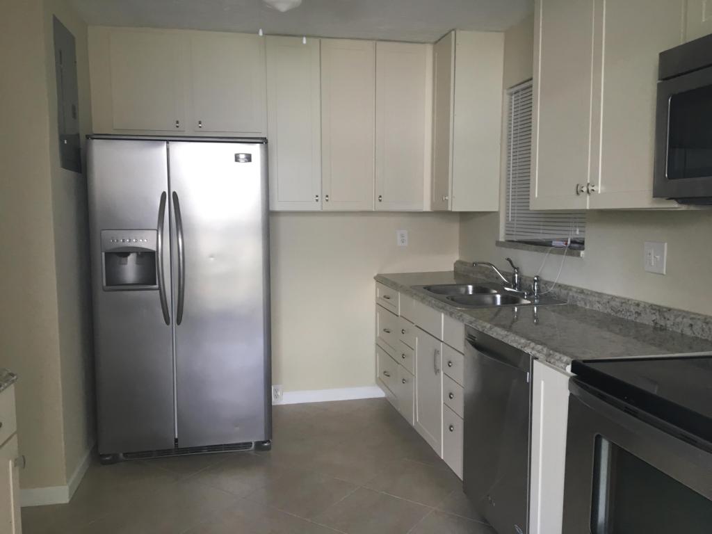 Freshly remodeled - light and bright Tile throughout, White cabinetry with silver accents, stainless steal appliances including microwave and side by side frig with water/ice dispenser and breakfast bar. Great up scale interior feel with original characteristics of the home for it's unique style. Carport with additional driveway parking - Nice size fenced yard GREAT for entertaining or an future add on.