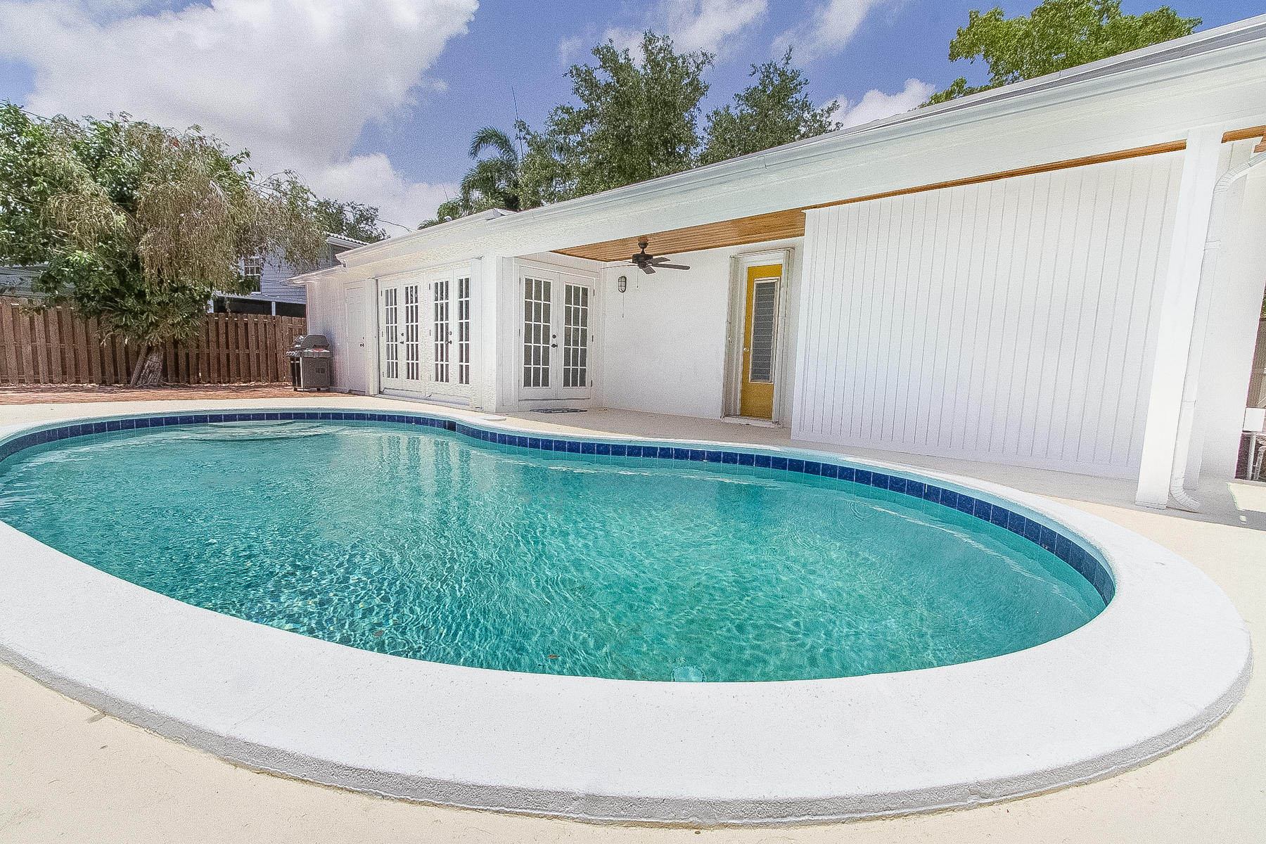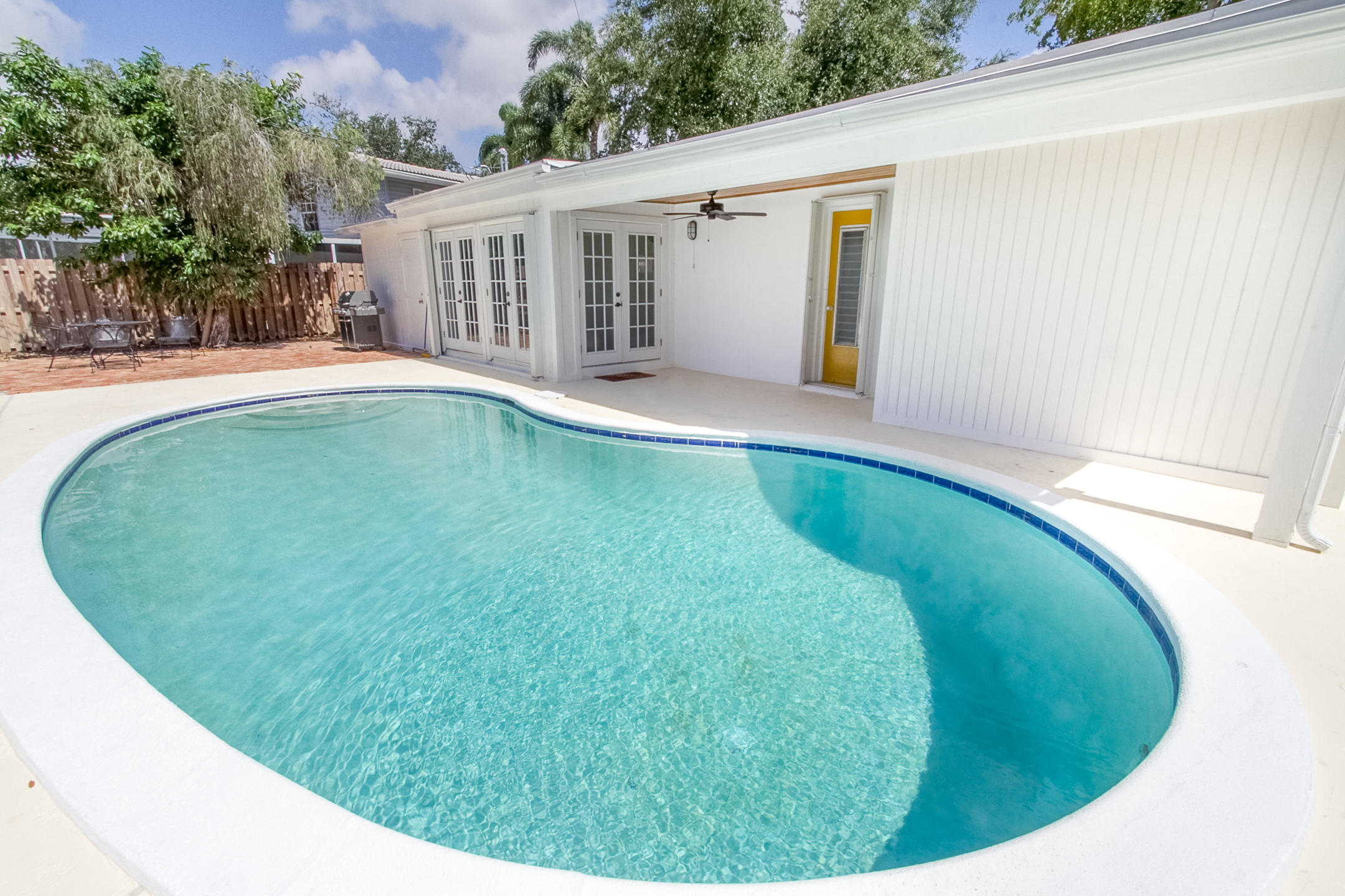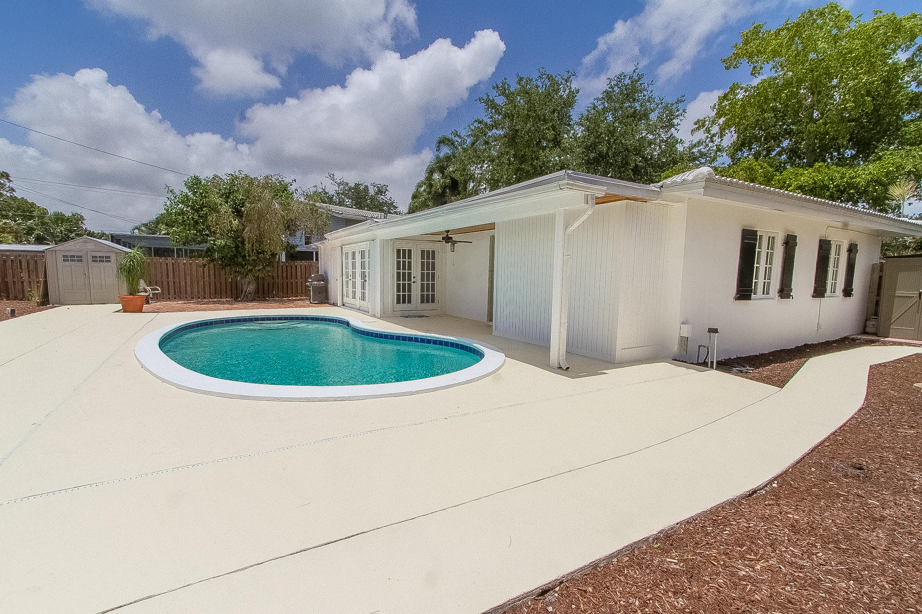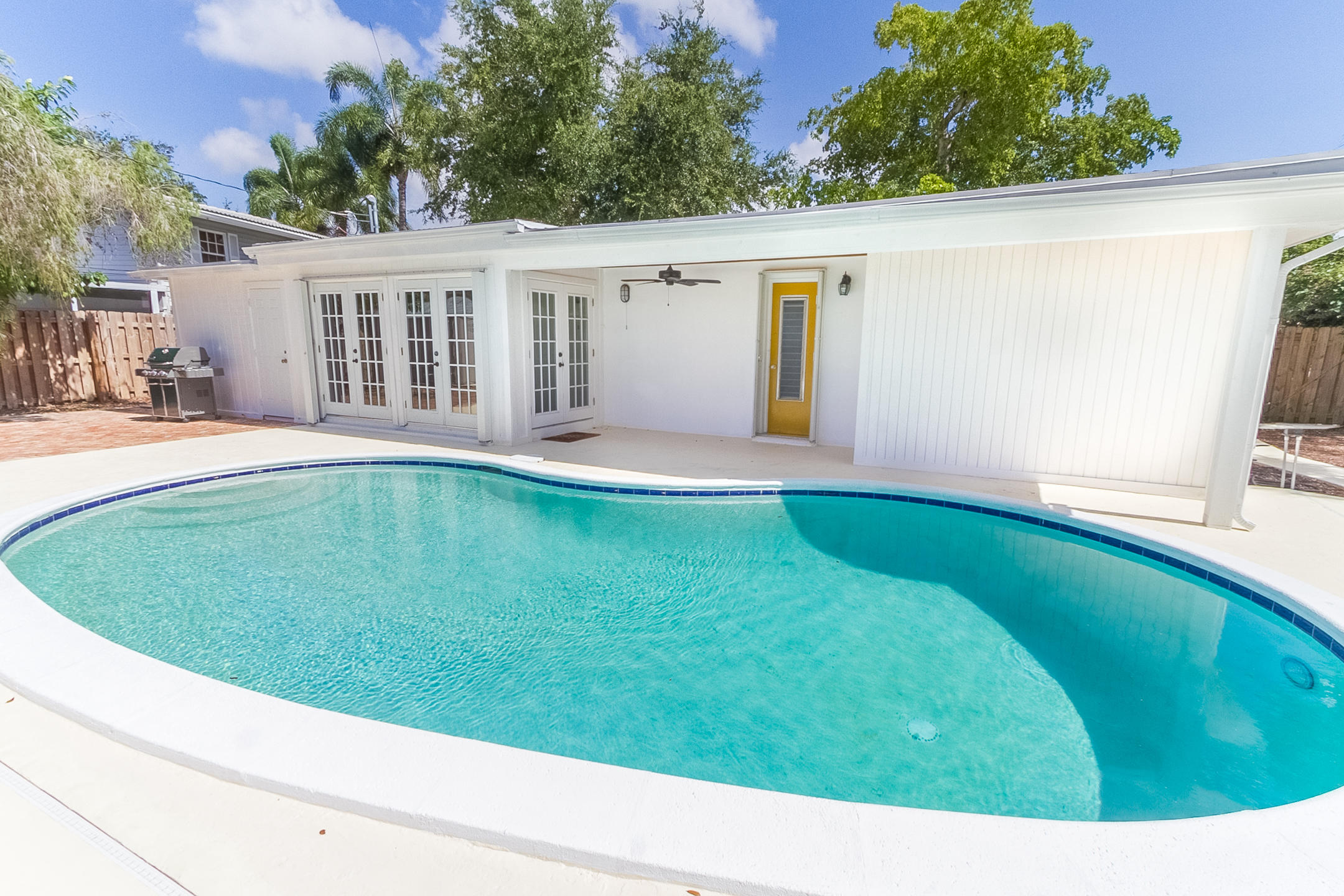 Charming Boca Raton pool home in high demand Boca Raton Square with highly rated schools with great features including and a completely redesigned open kitchen in with gas range and stainless appliances, new beautiful neutral porcelain flooring THROUGHOUT the home, bathrooms remodeled all in 2013, gutters installed in 2011, newer A/C condenser (2014) and newer S-style roof installed in 2011, storm protection with use of impact windows, accordion shutters, and wood shutters, cabana Bath directly off the pool, gas from city for the range and hot water heater, new electric panel and house rewired 2012, brick driveway 2013 and large brick patio adjacent to pool, fence doors and wood beamed ceiling in dining area off pool, and sought after SE exposure.